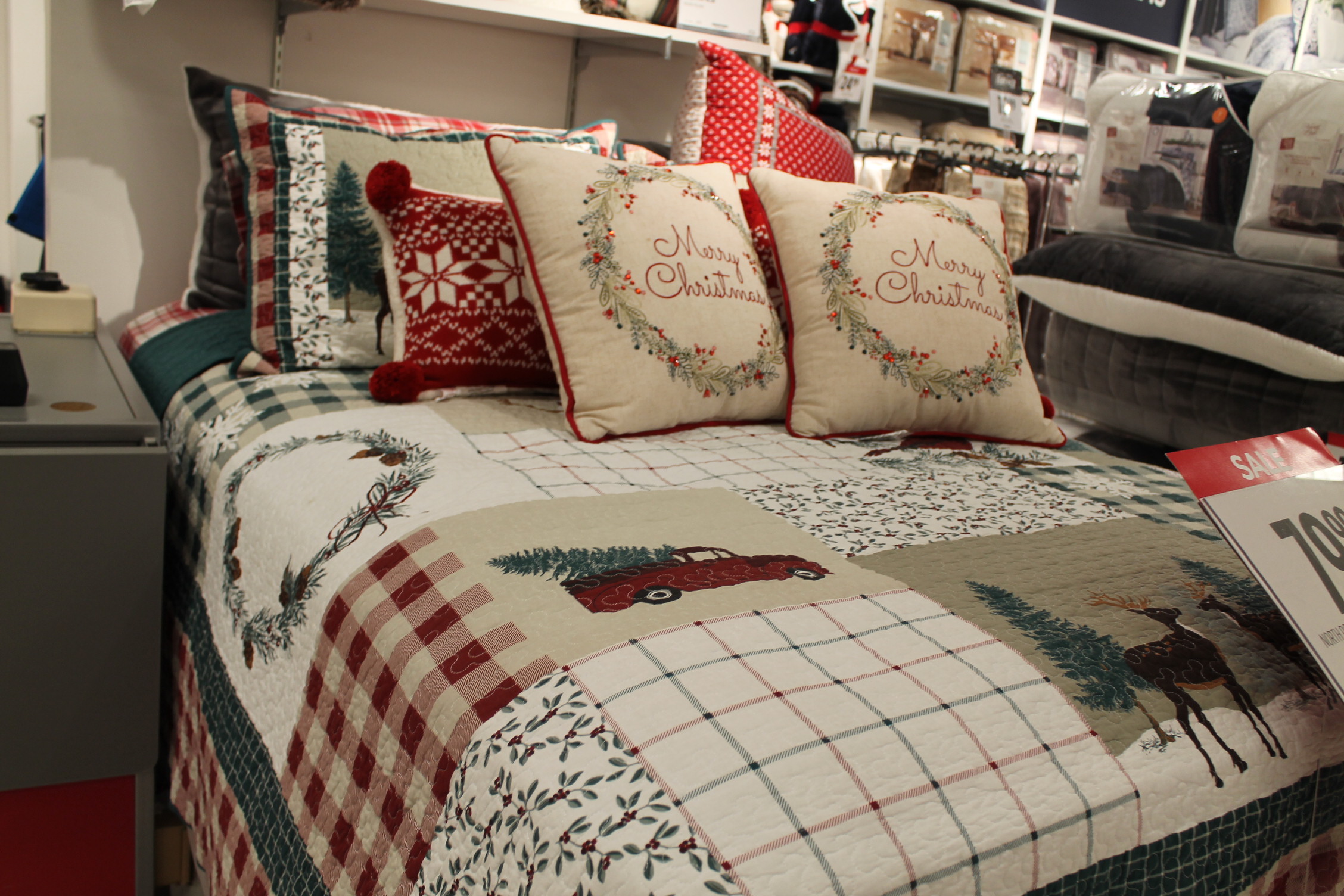 백화점에 침대 시트와 담요들을 판매하는 곳이다.