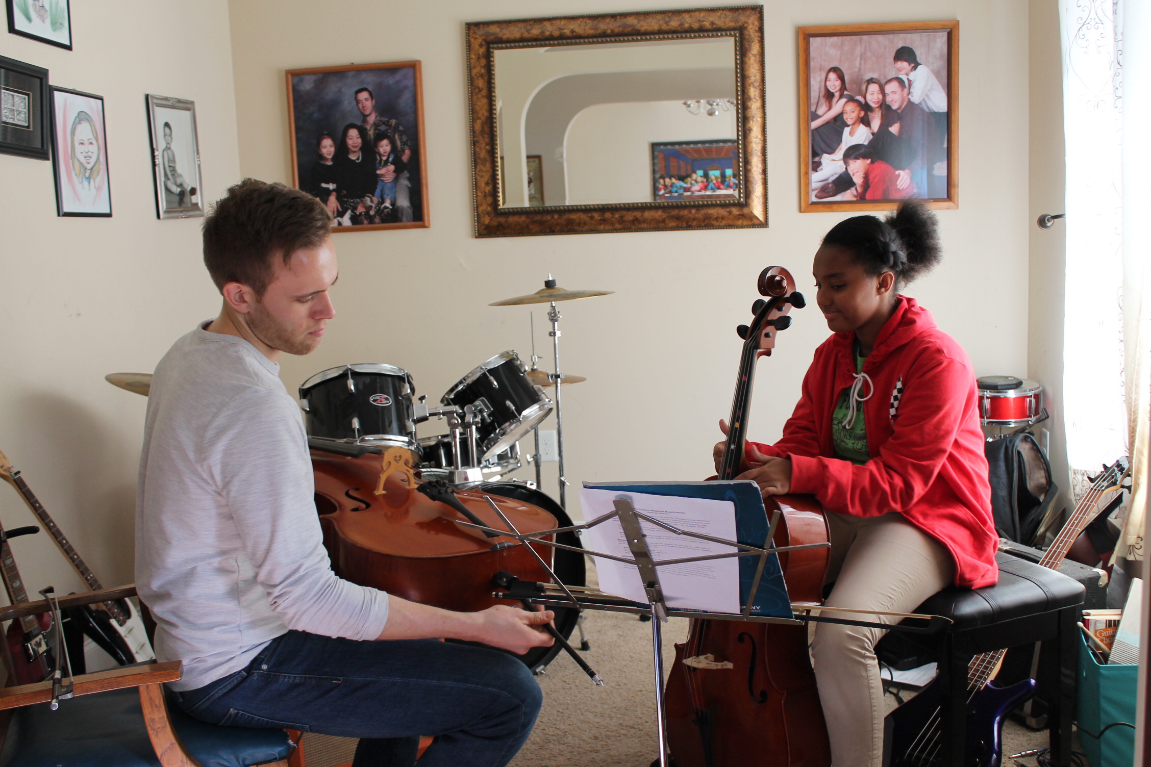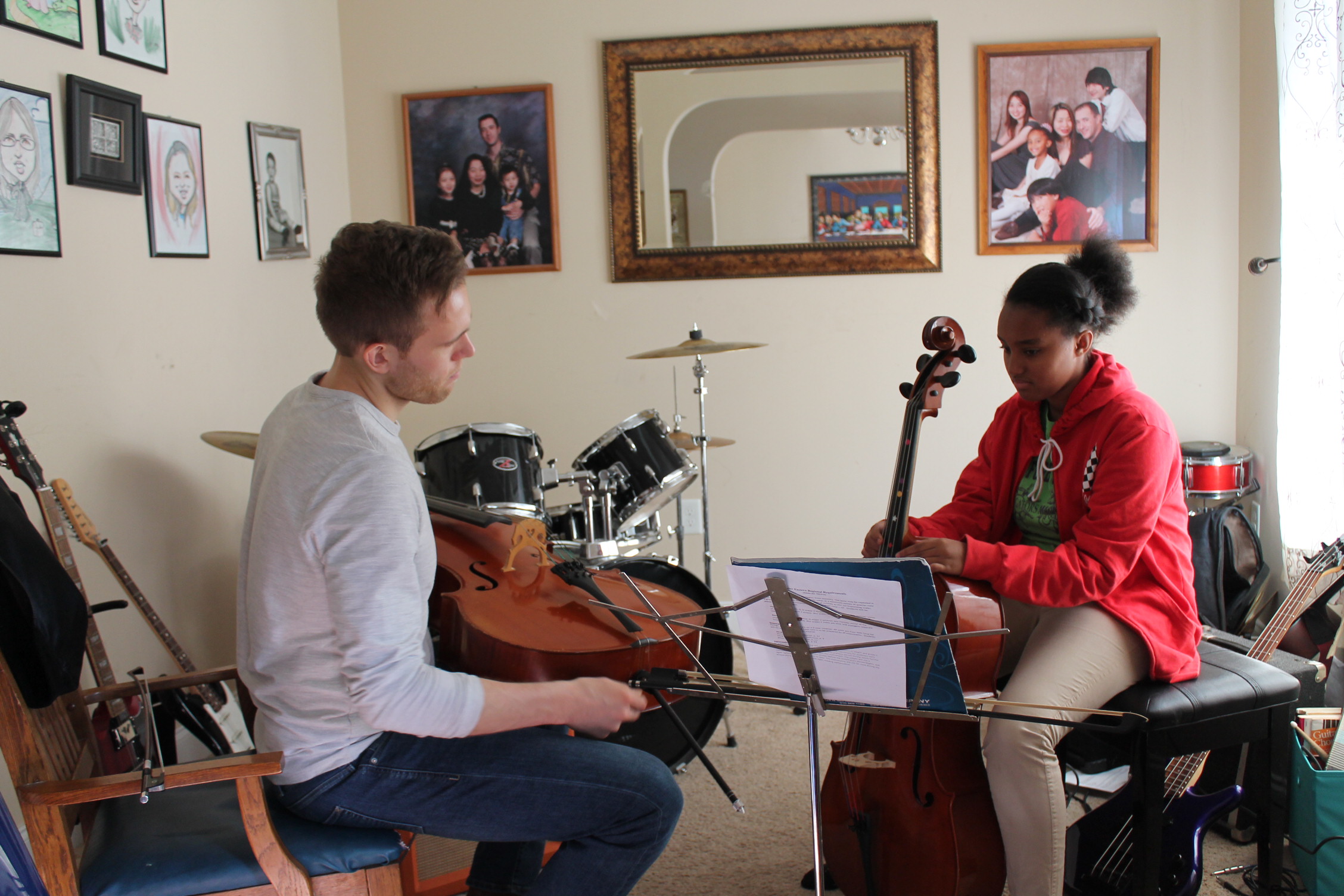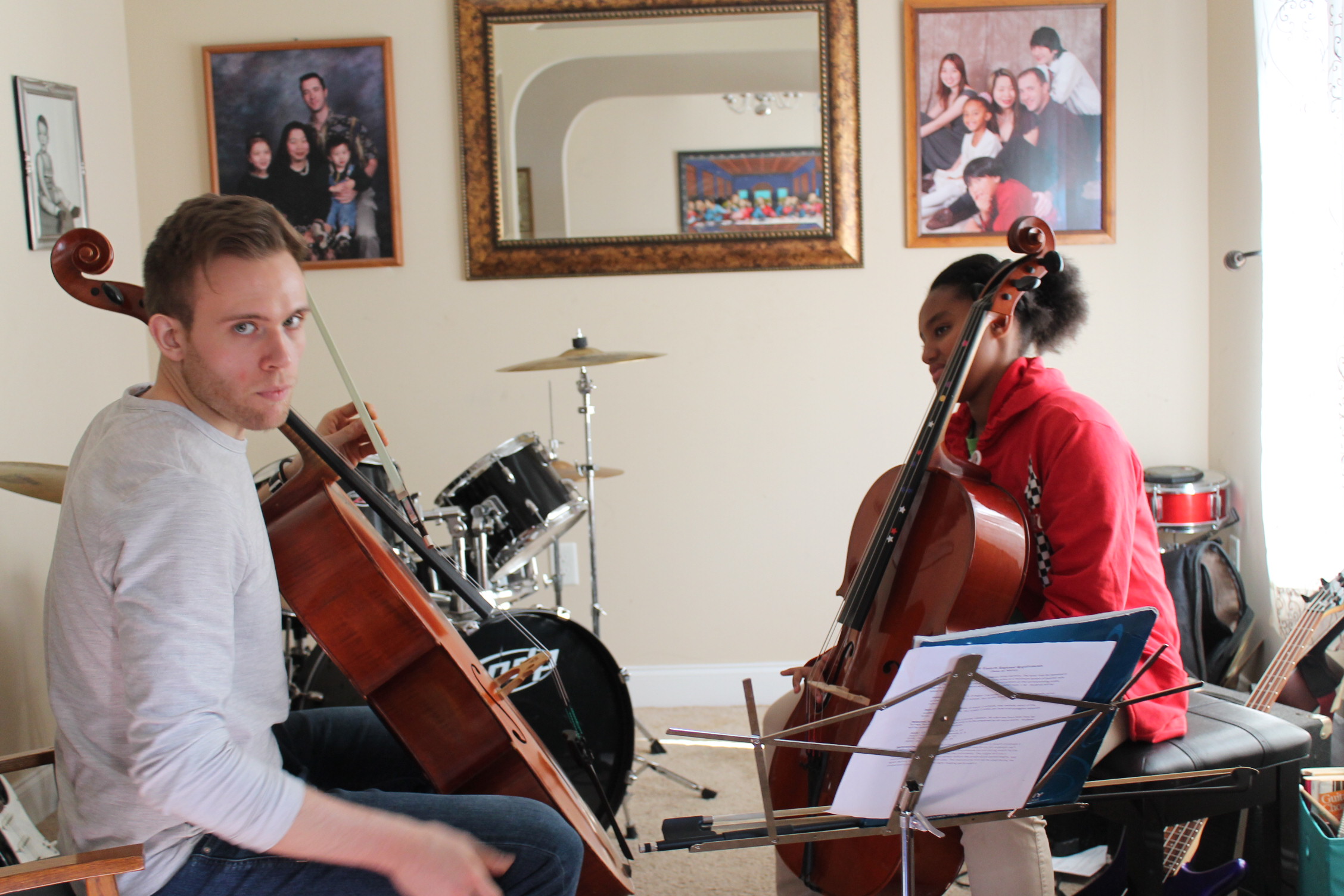나린과 첼로 선생님이 함께 연주하는 모습이다.