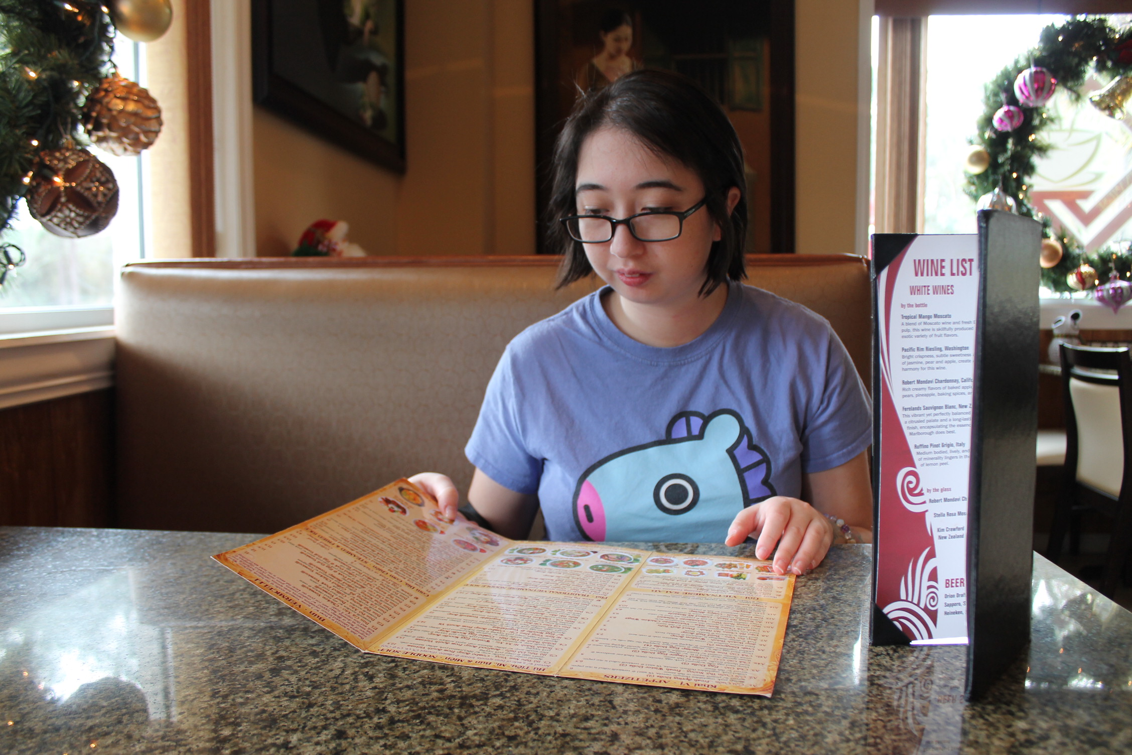 메뉴를 보고 있다.