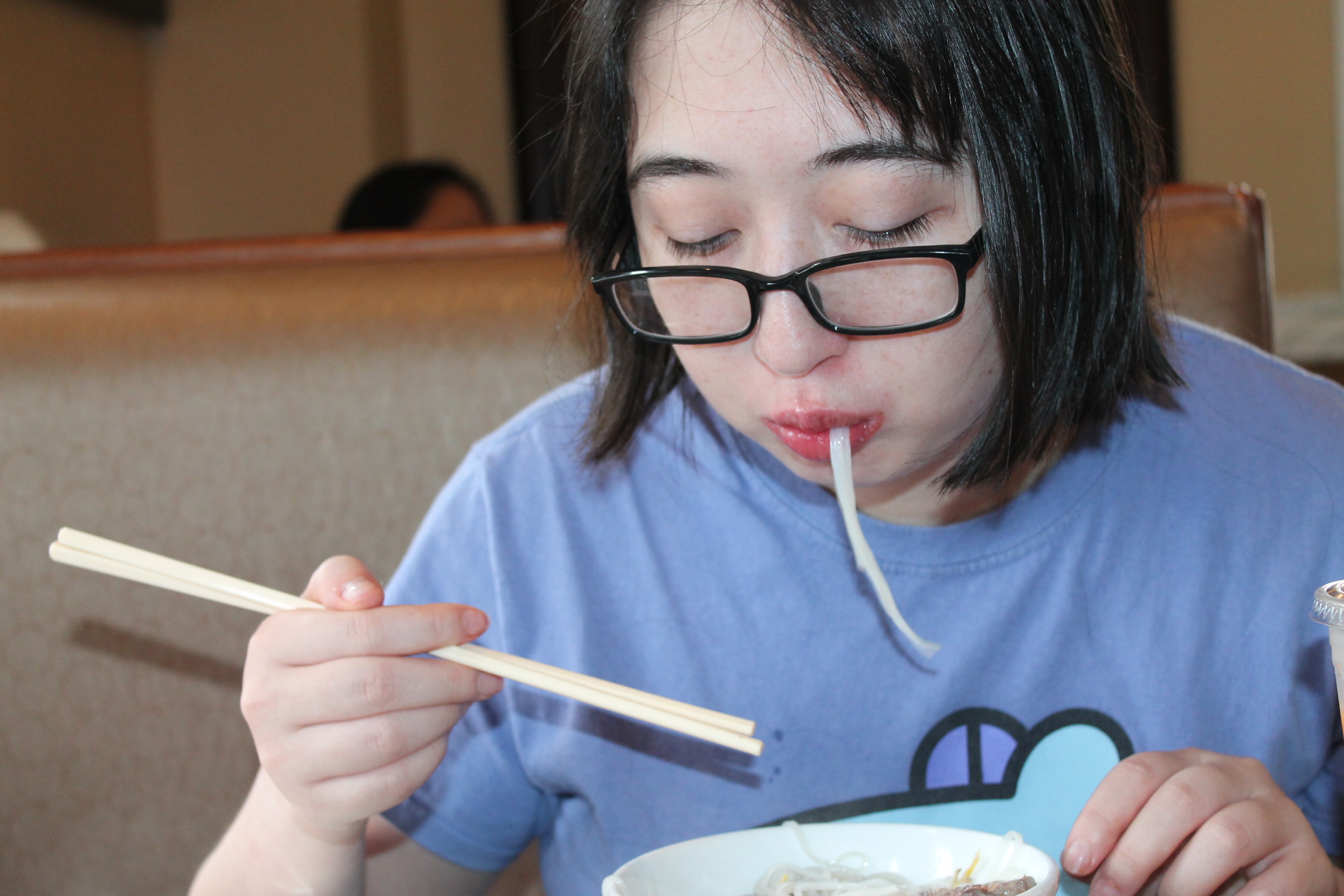 전화를 받으면서 열심히 먹는다.