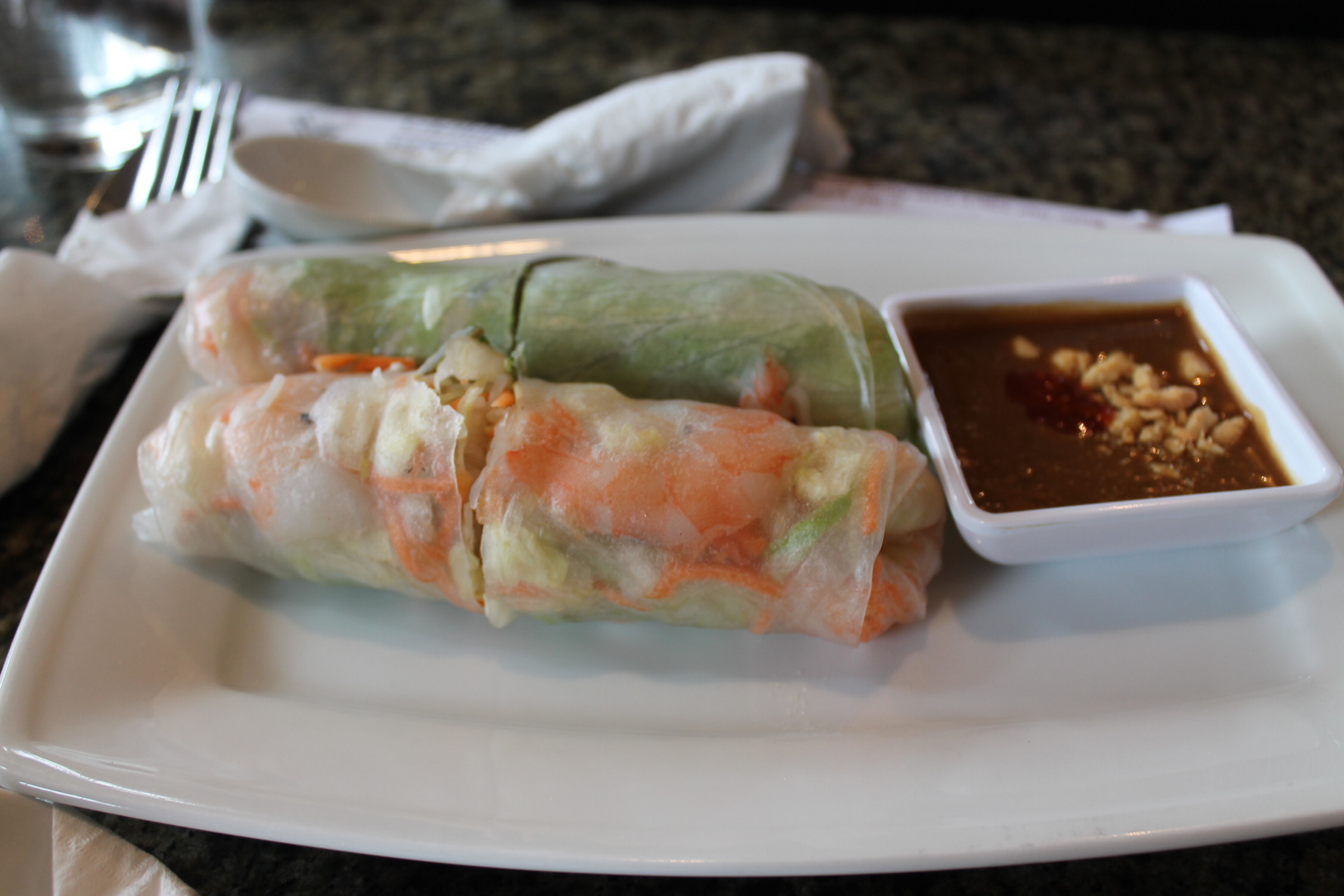 새우와 돼지고기가 들어 있었던 라이스 스프링롤이다.