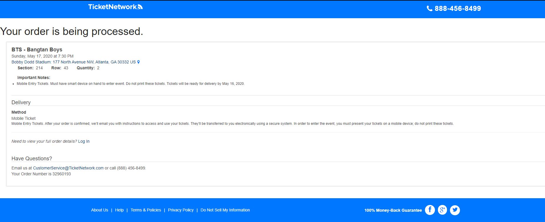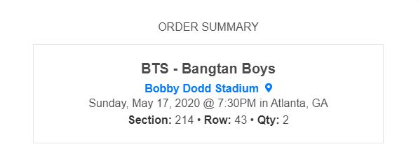 BTS - Bangtan Boys Atlanta Tickets -05/17/2020