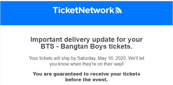 티켓을 5월 16일 날까지 보내준다고 한다.