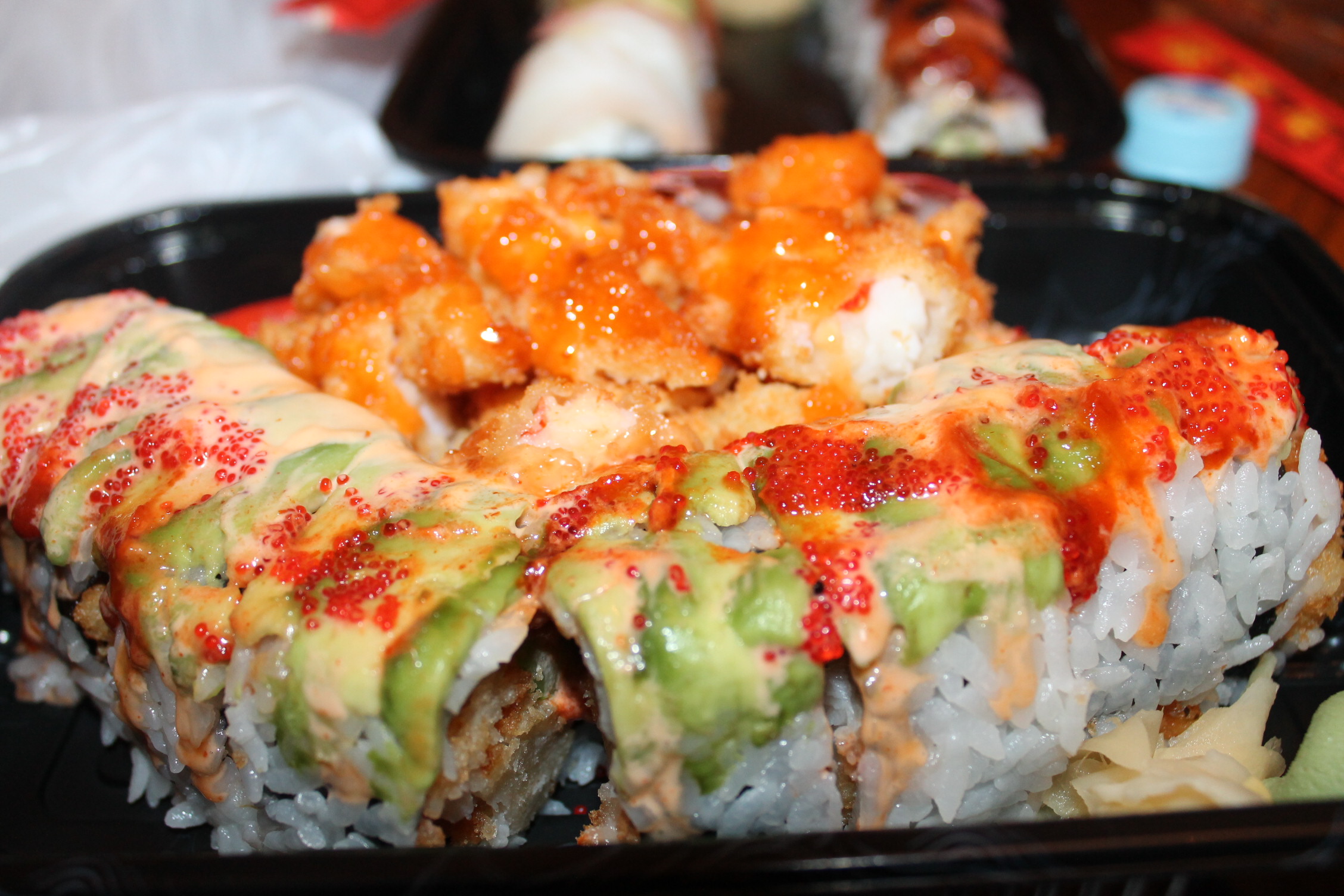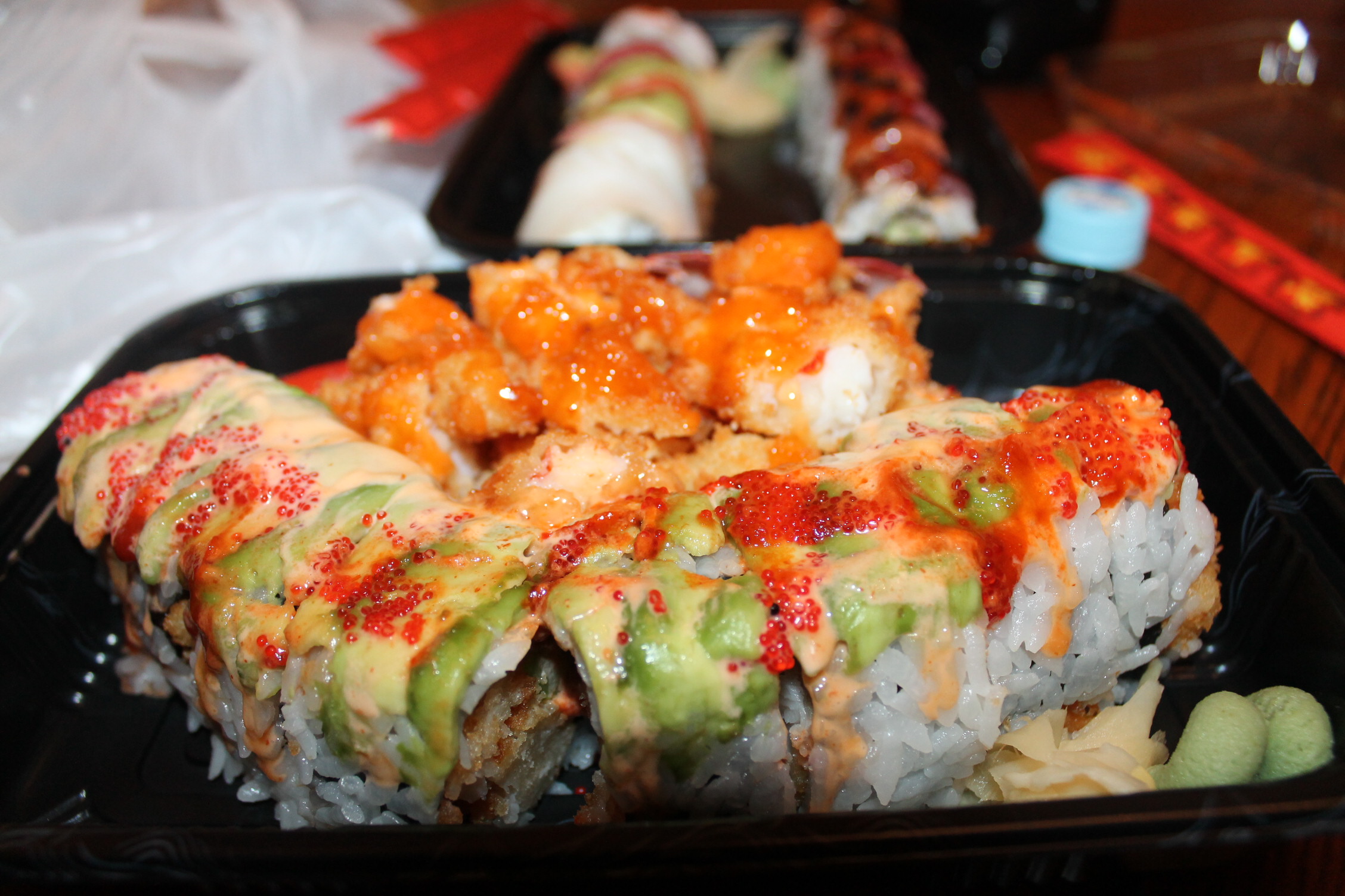 일반적으로 생각하는 초밥의 비주얼과 좀 다르지 않나요? 미국은 이런 스타일로 초밥이 나옵니다. 이것도 미국인 입맛에 맞게 개발된 초밥입니다. 일본식 초밥의 퓨전 스타일로 보입니다. 초밥을 주로 배달해서 먹는 분은 우리 집의 갑부이신 아라 밖에 없습니다. 남편은 초밥을 별로 좋아하지 않습니다.