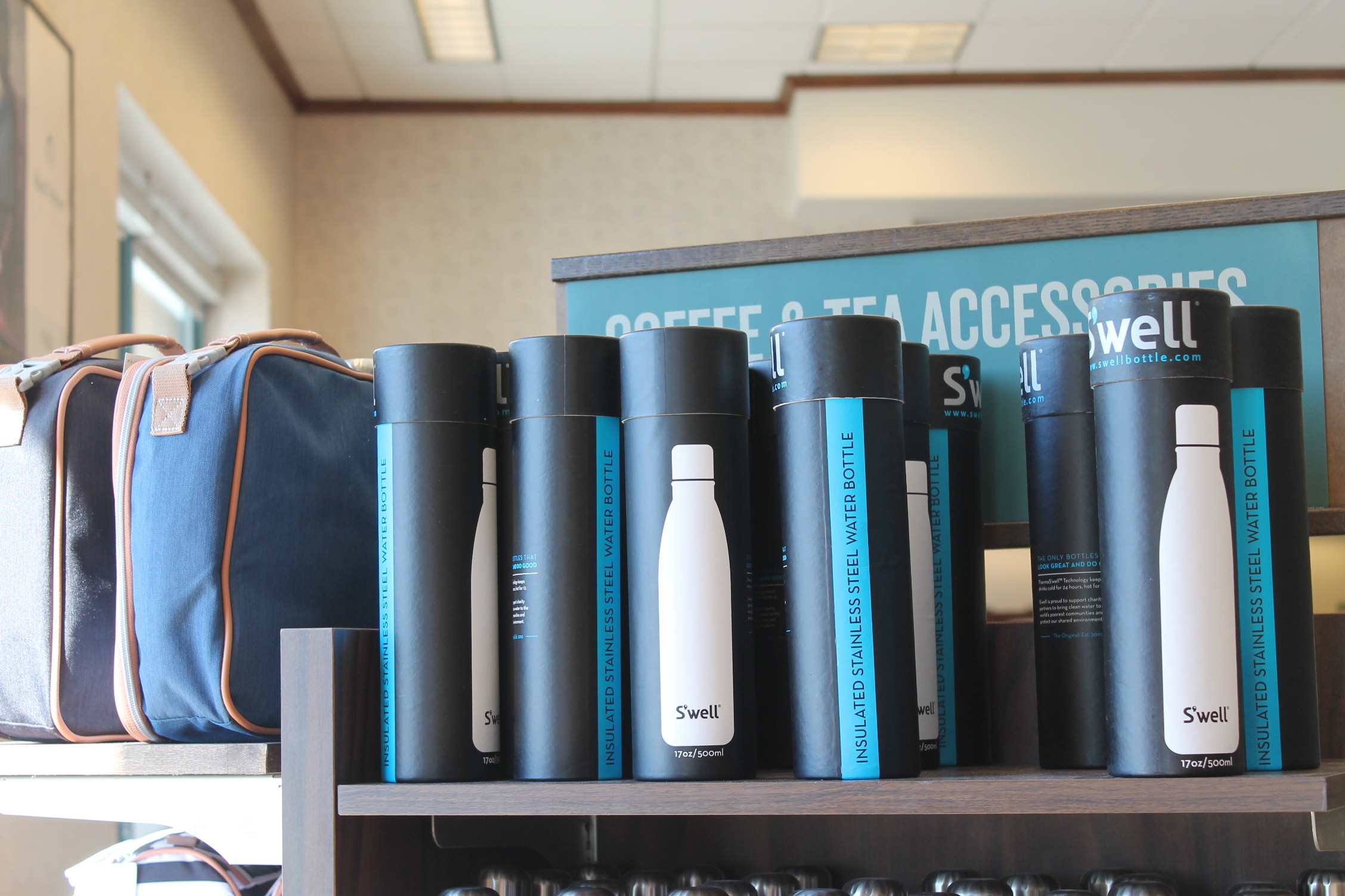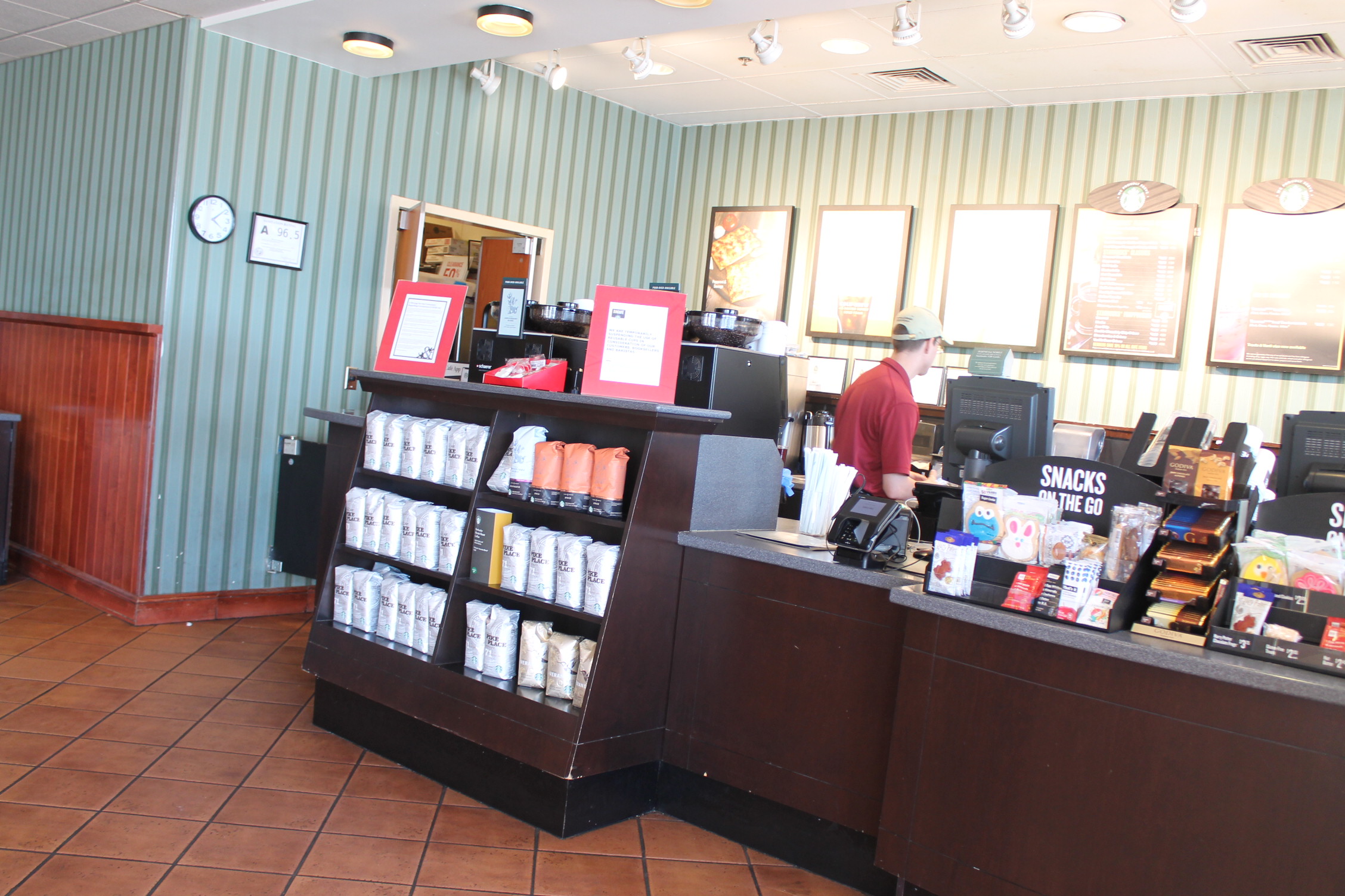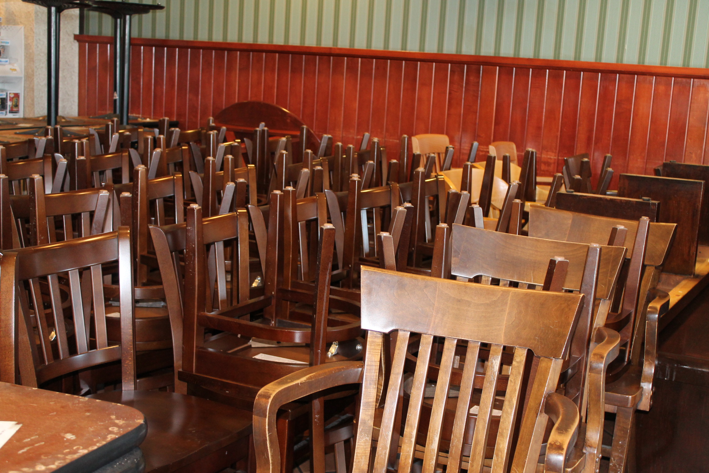 스타벅스 카페의 의자를 치워 두고 있었다.