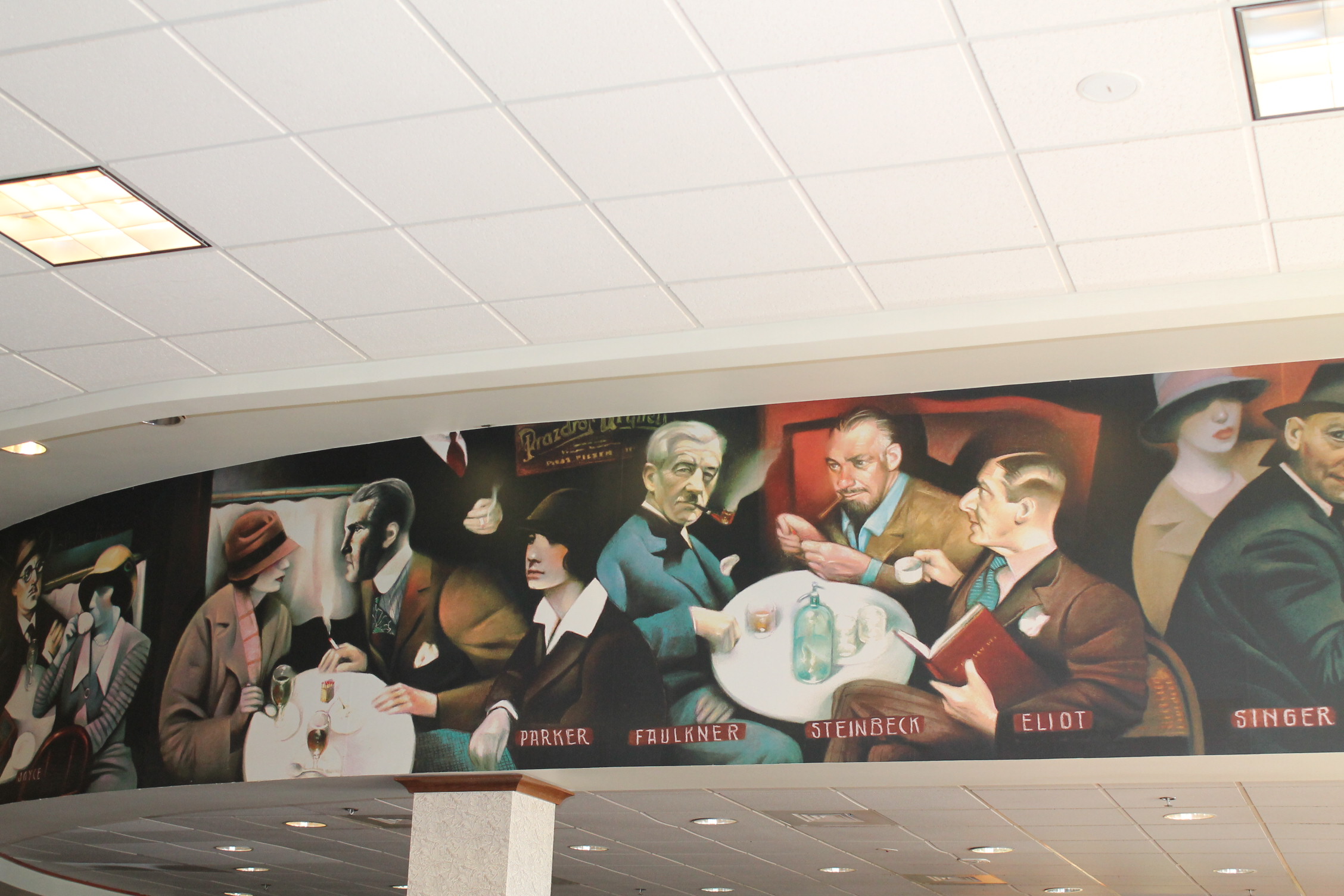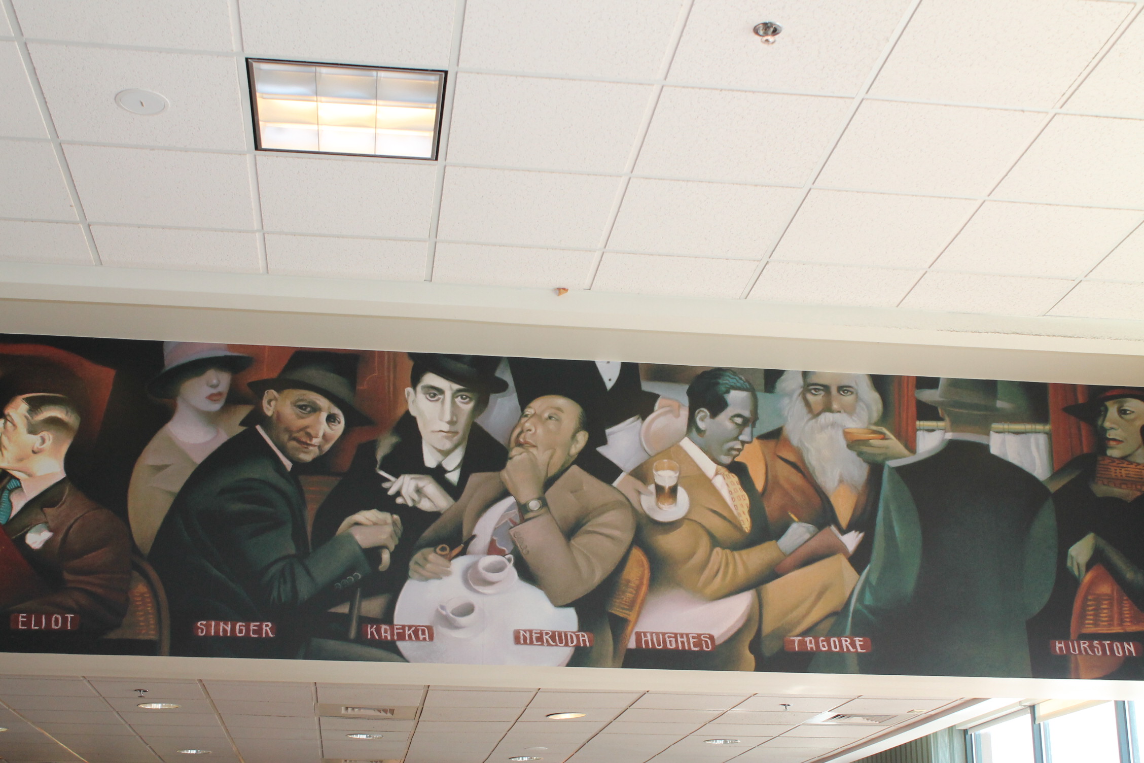 고개를 들어 카페 천장을 쳐다보는데.. 오 벽화가 보인다.