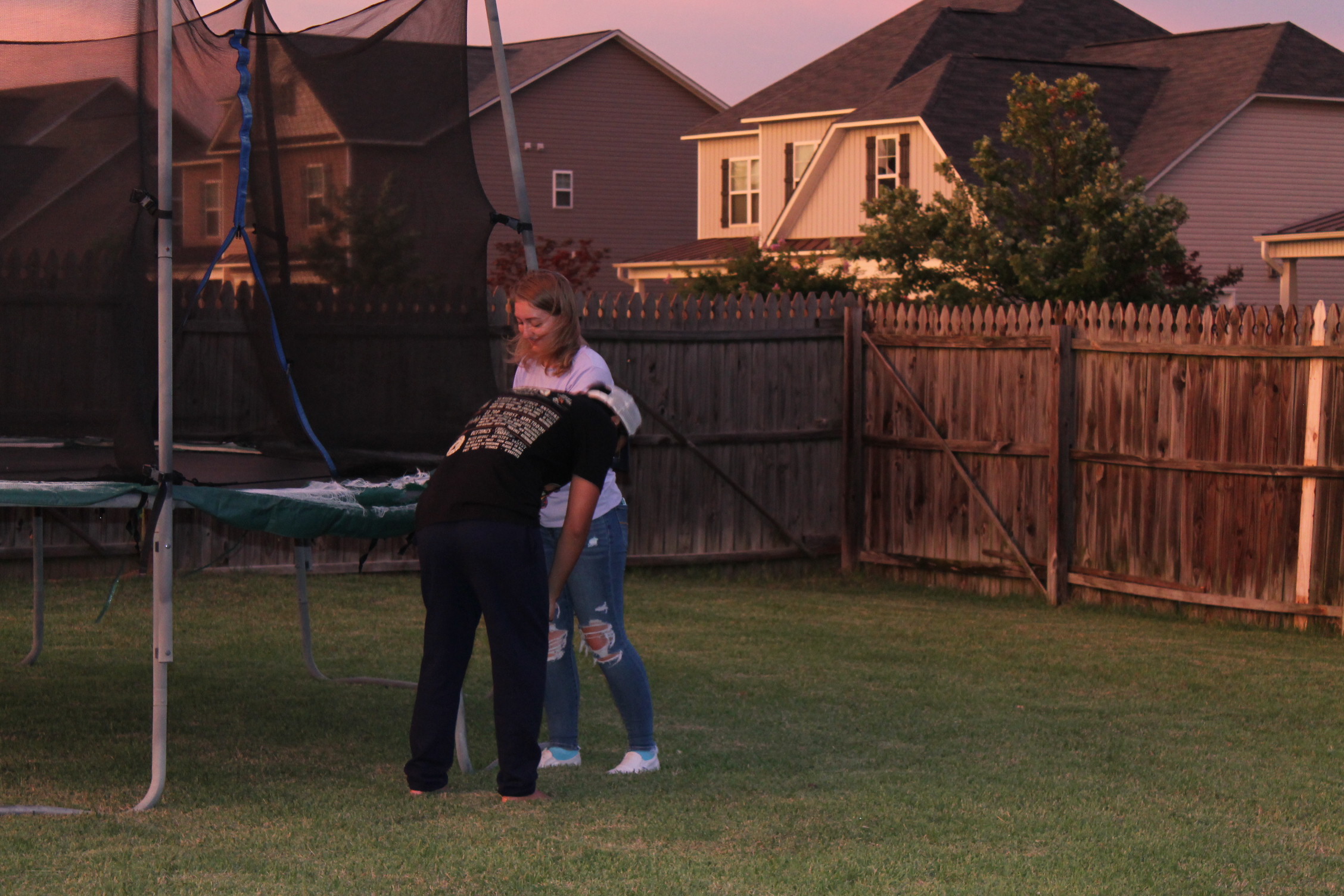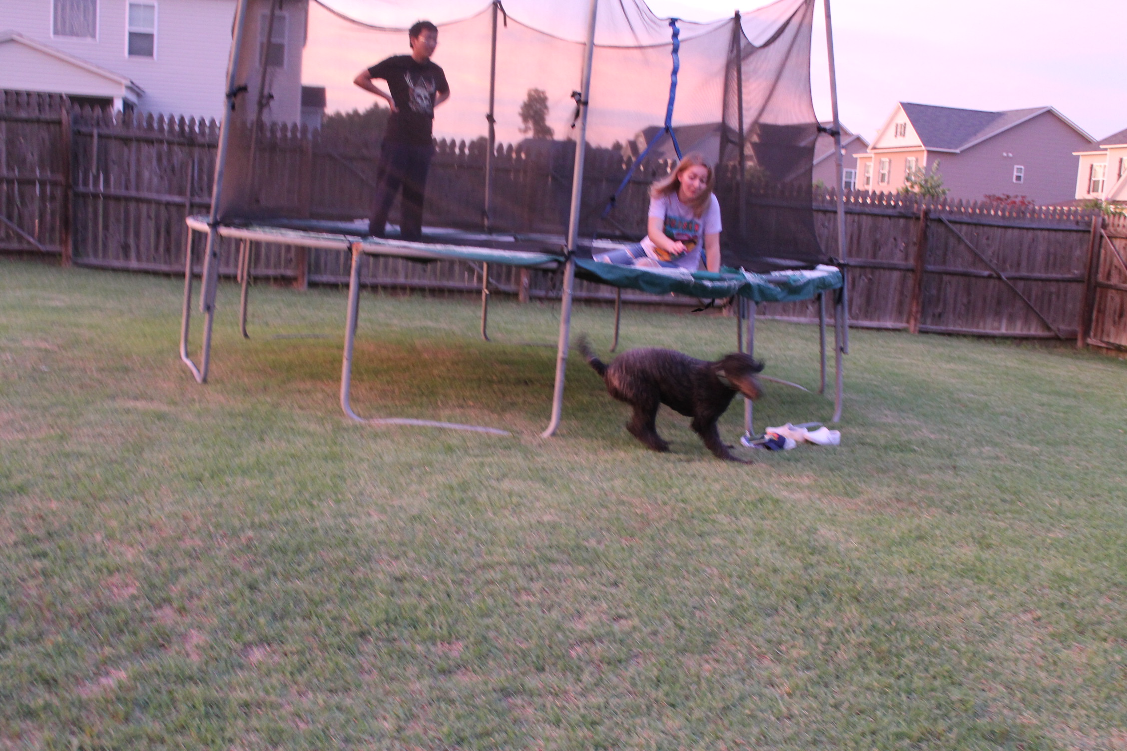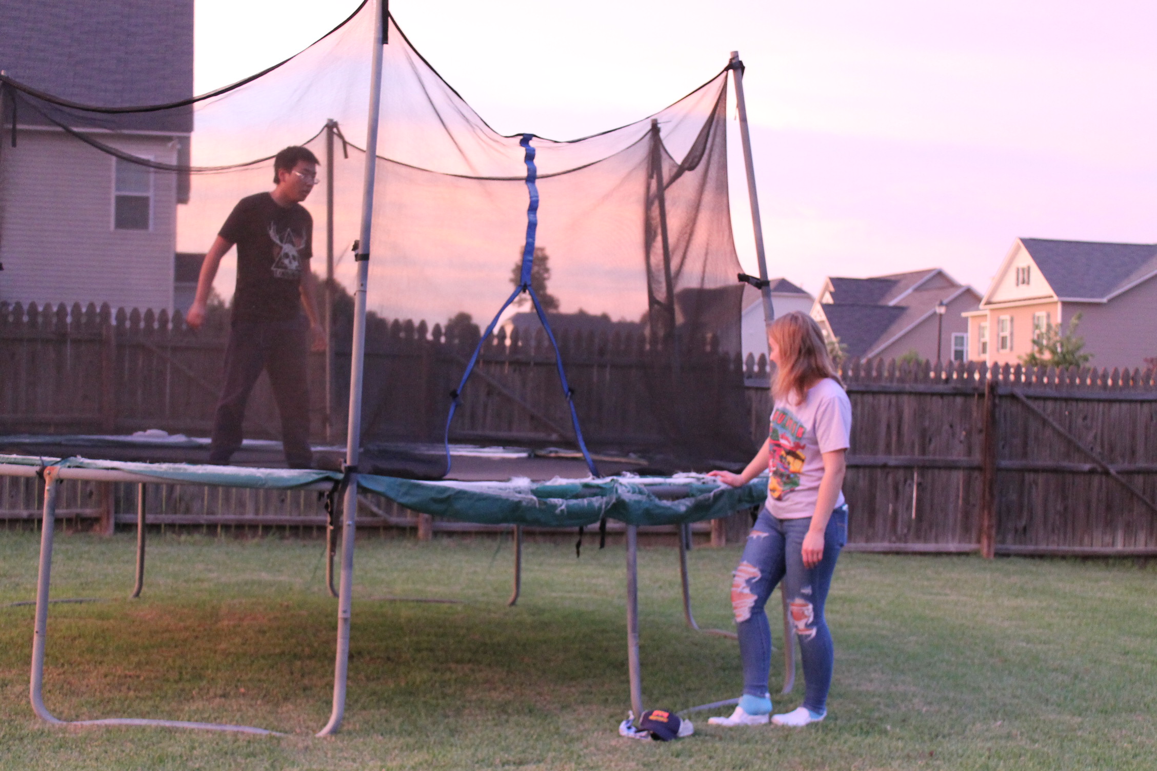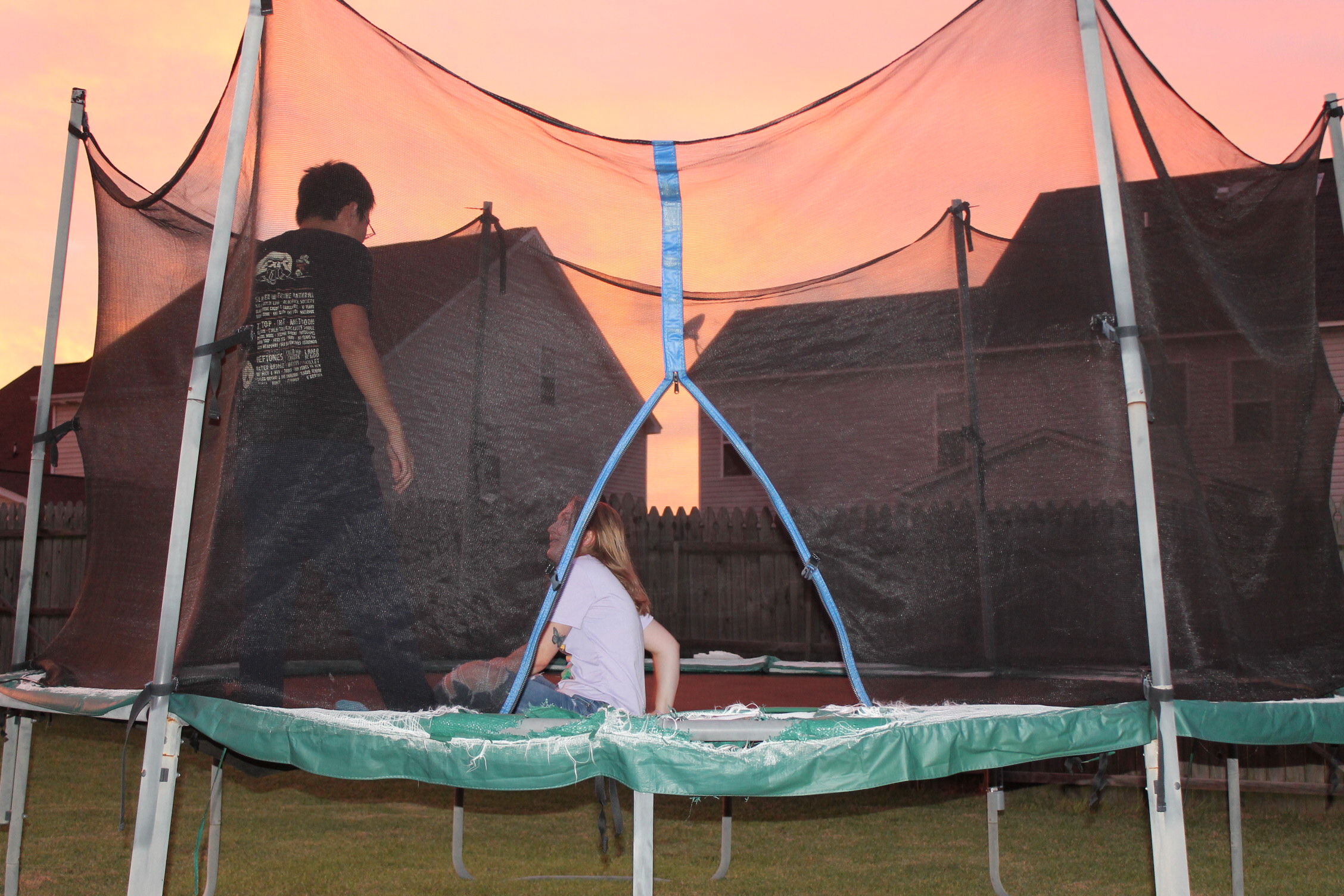 서로 뭘 하면서 놀고 있나 해서 뒷마당을 나가 보니 트램펄린을 하고 있었다.