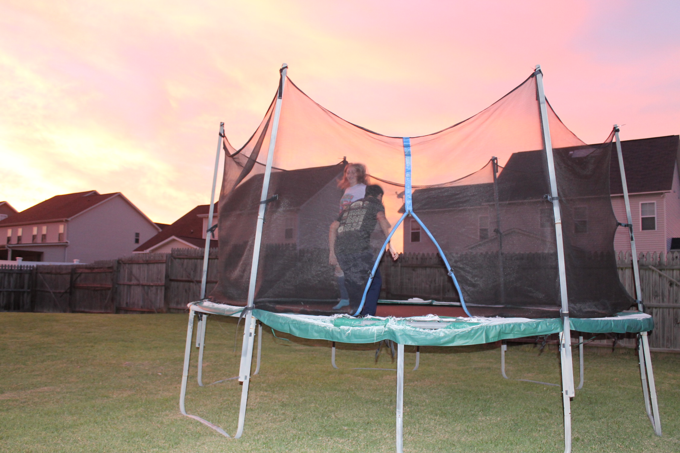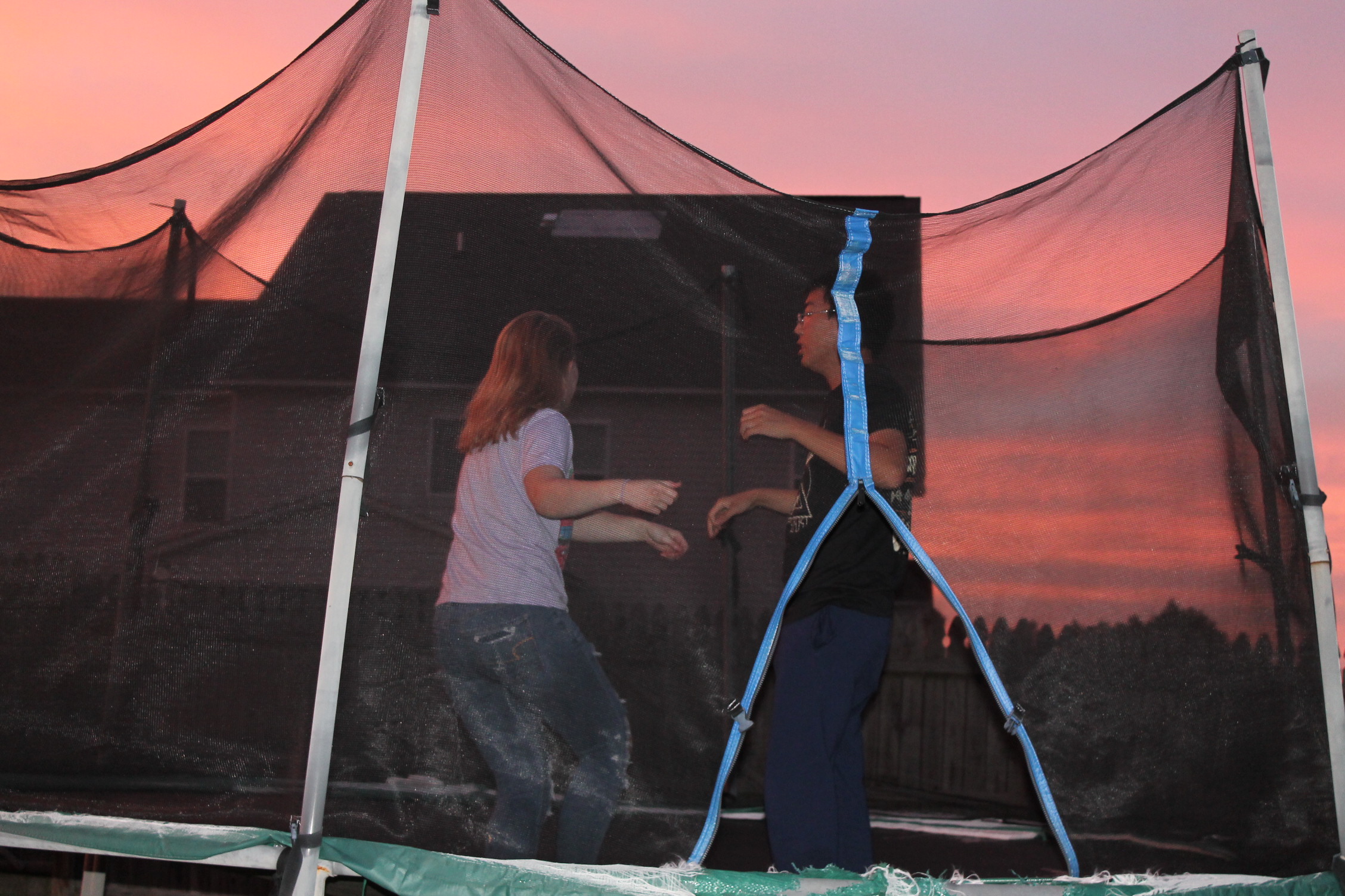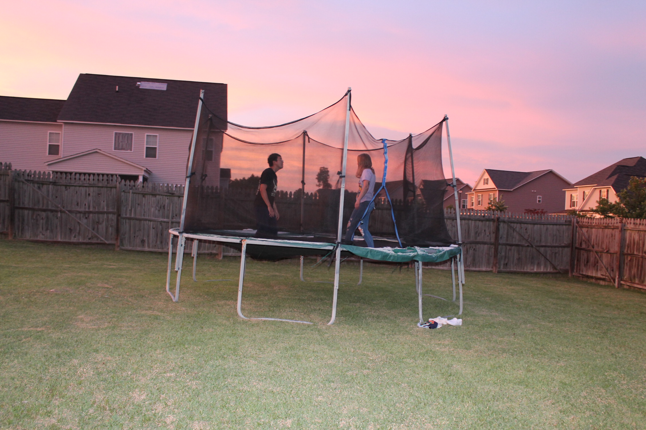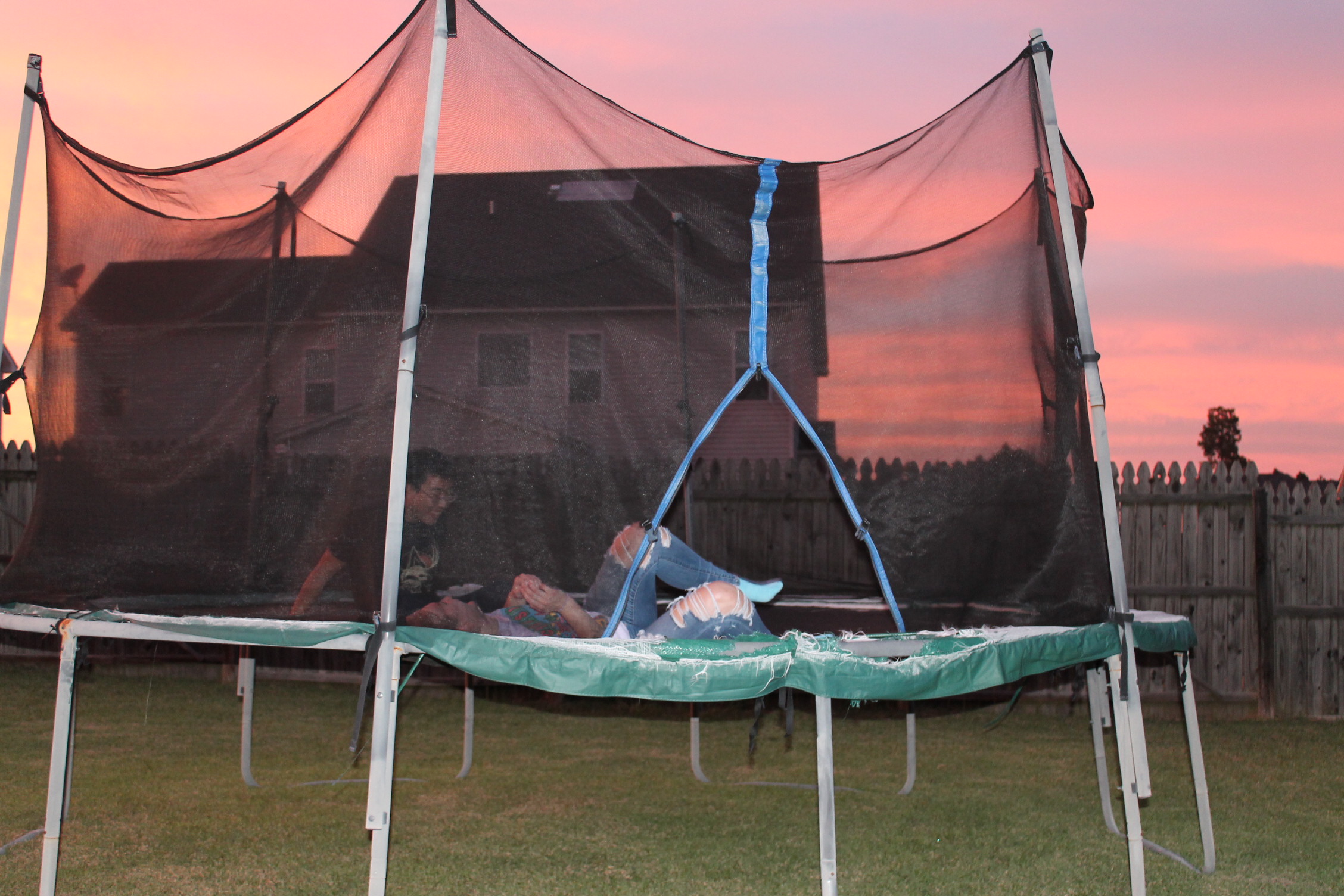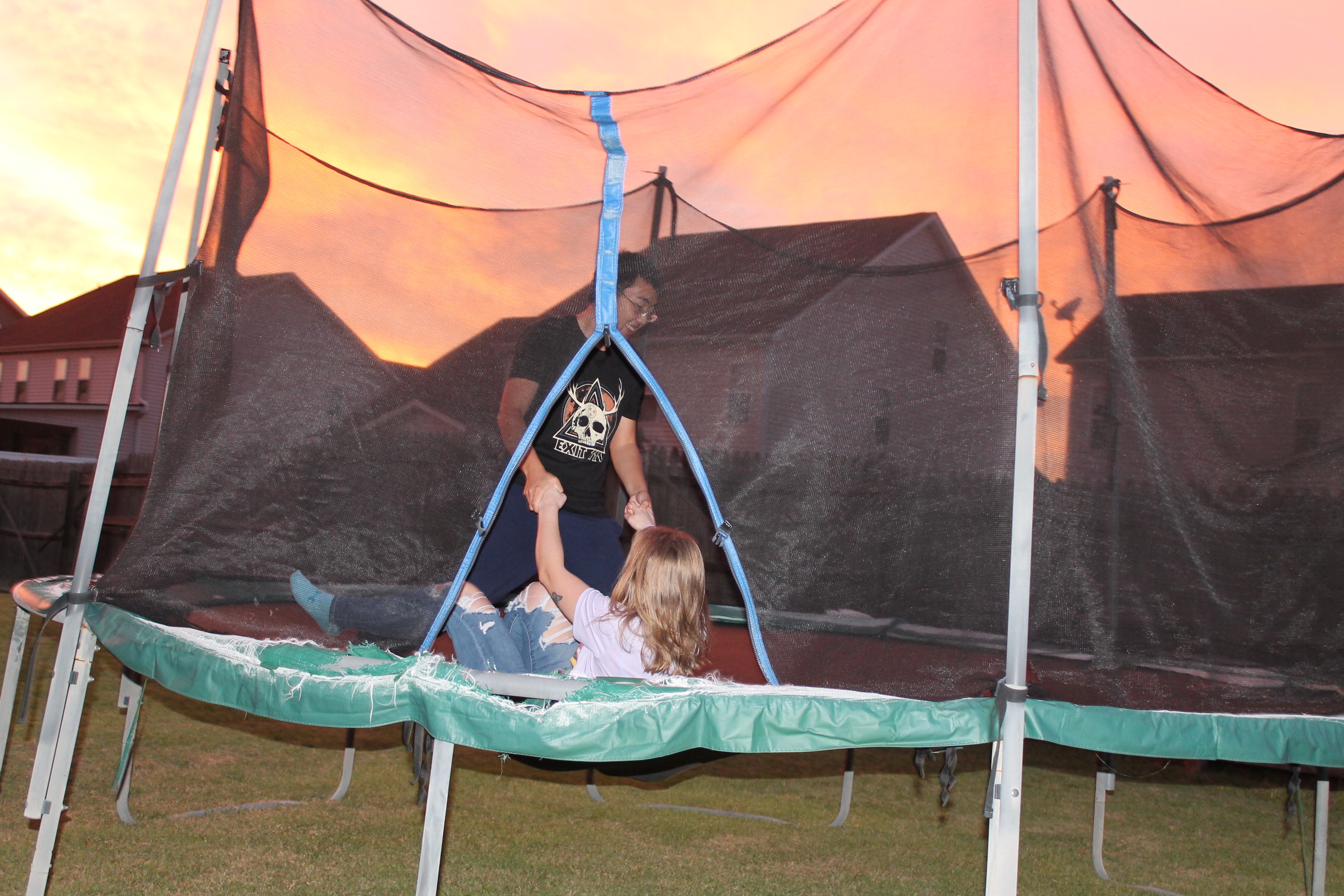 서로 뭘 하면서 놀고 있나 해서 뒷마당을 나가 보니 트램펄린을 하고 있었다.