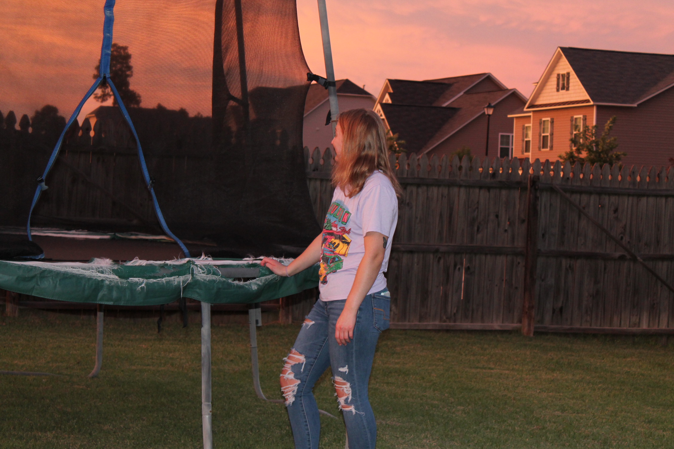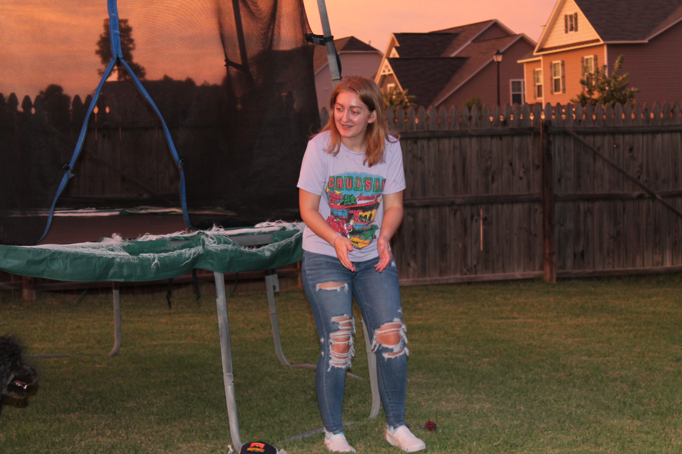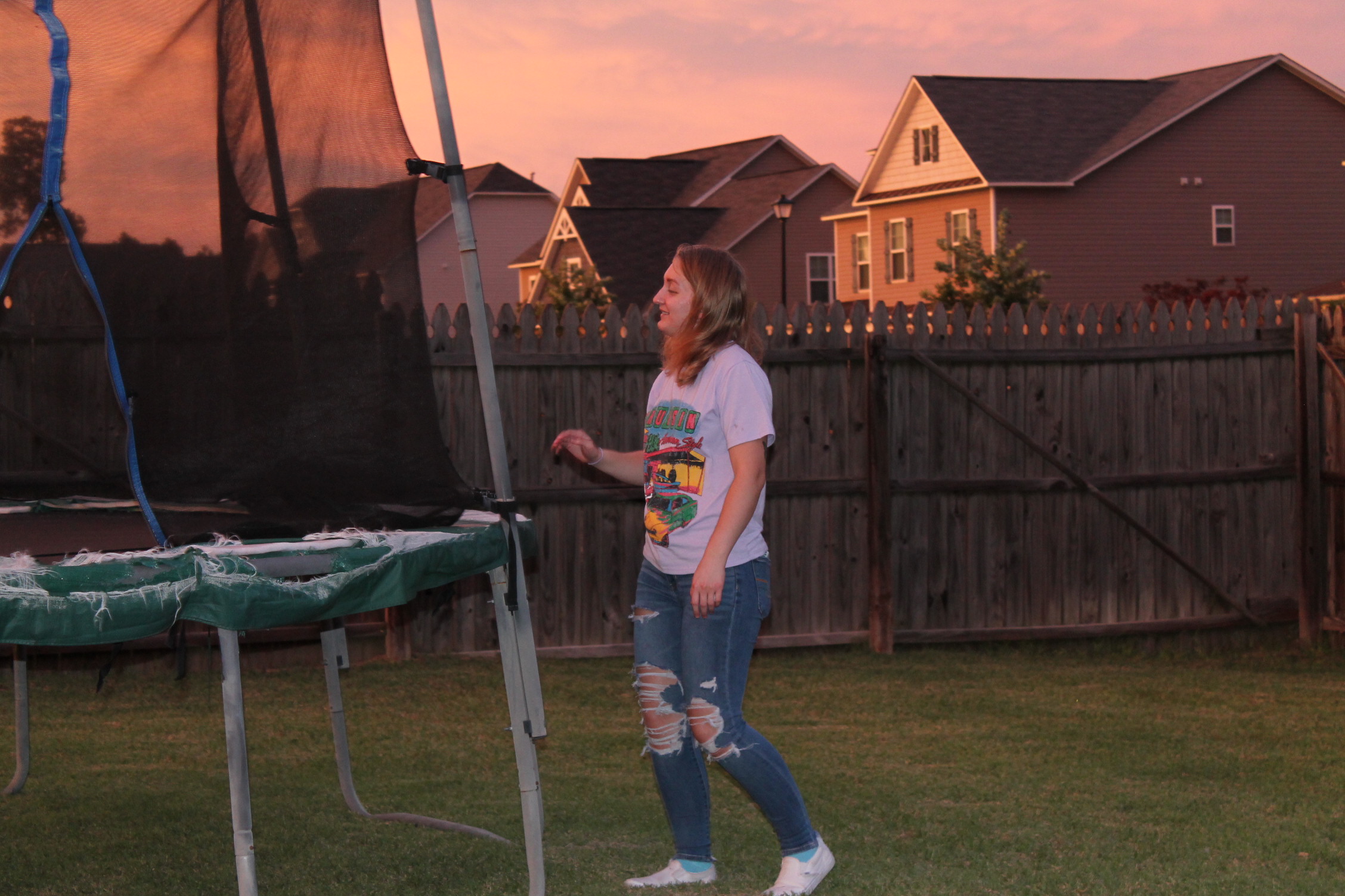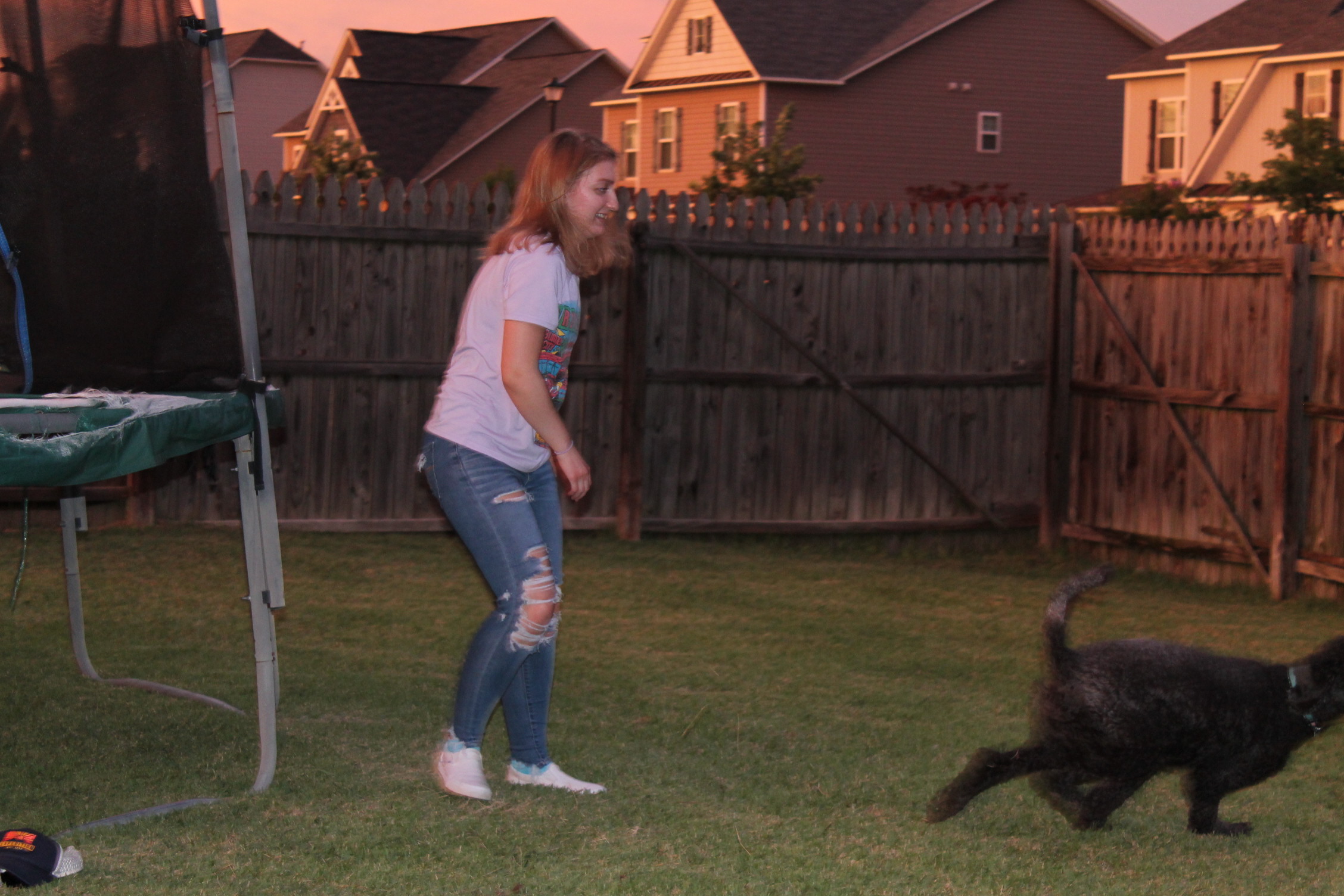 서로 뭘 하면서 놀고 있나 해서 뒷마당을 나가 보니 트램펄린을 하고 있었다.