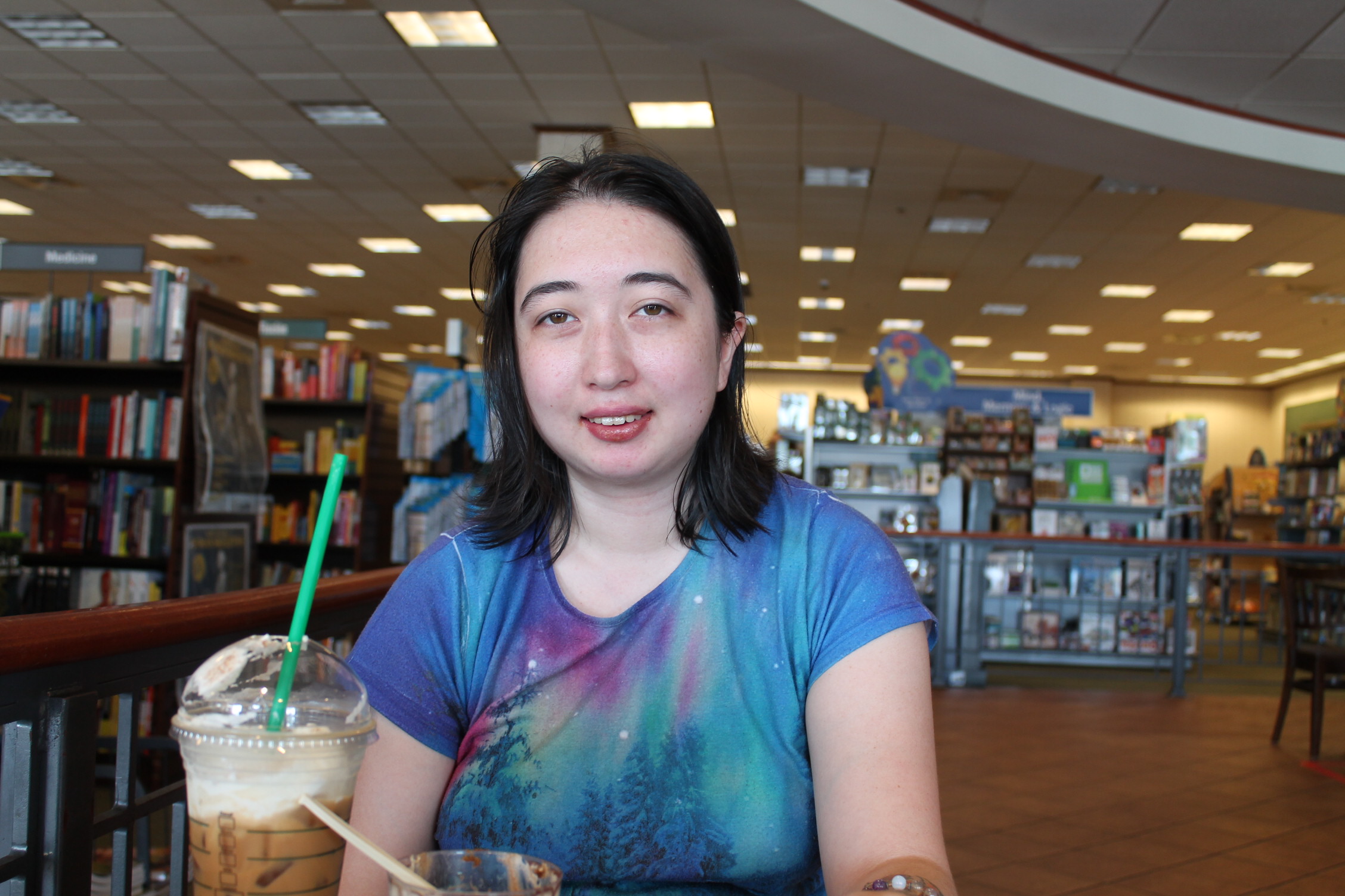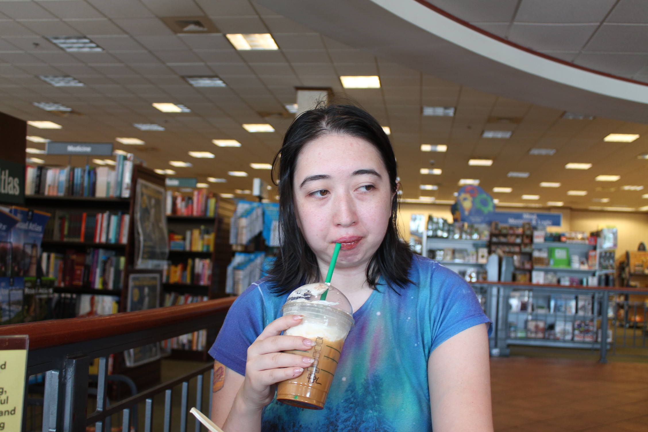 여기는 책방에 있는 스타벅스 매장이야.