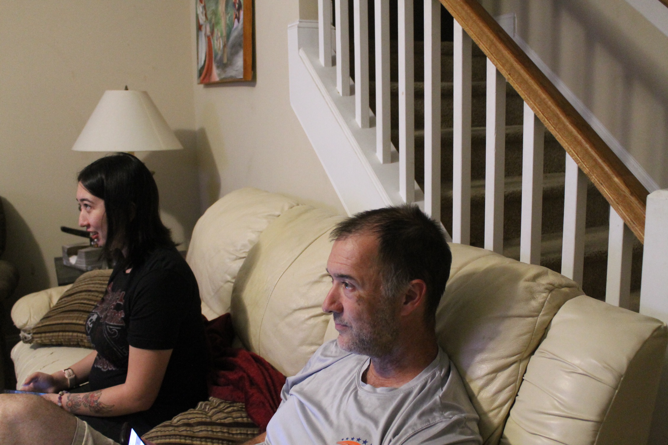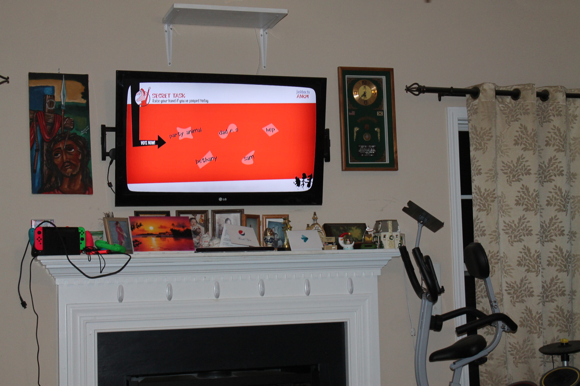 재미난 게임을 아이들과 즐기고 있는 남편 모습이다.