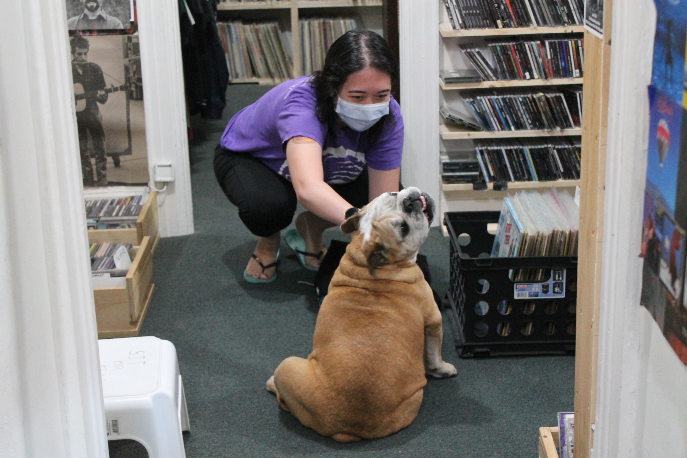 가게 주인과 강아지가 가게를 지키고 있었다.
