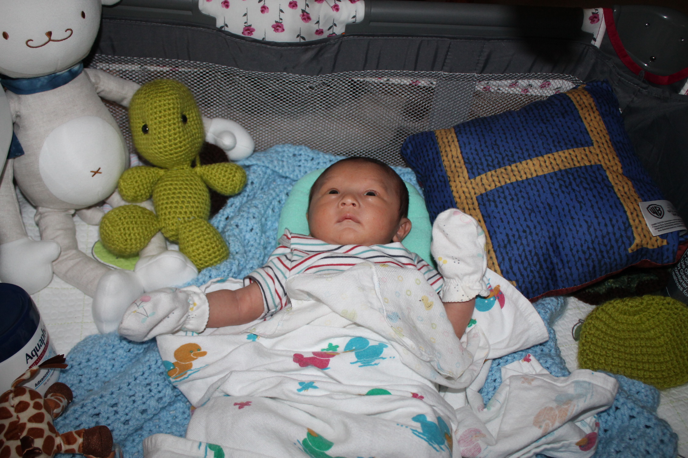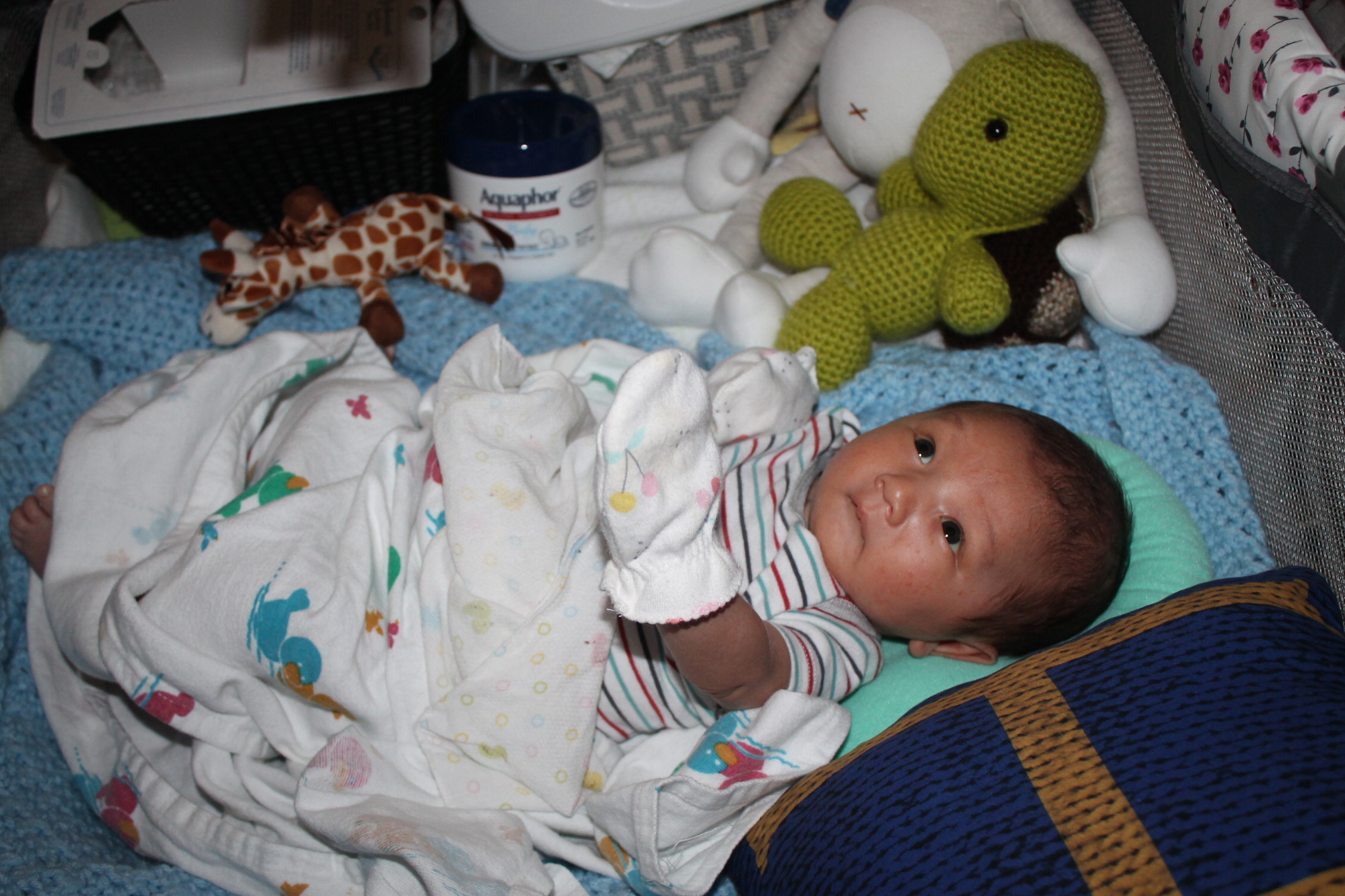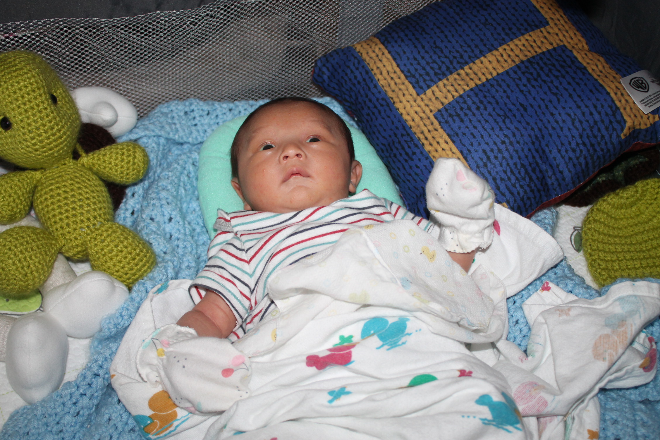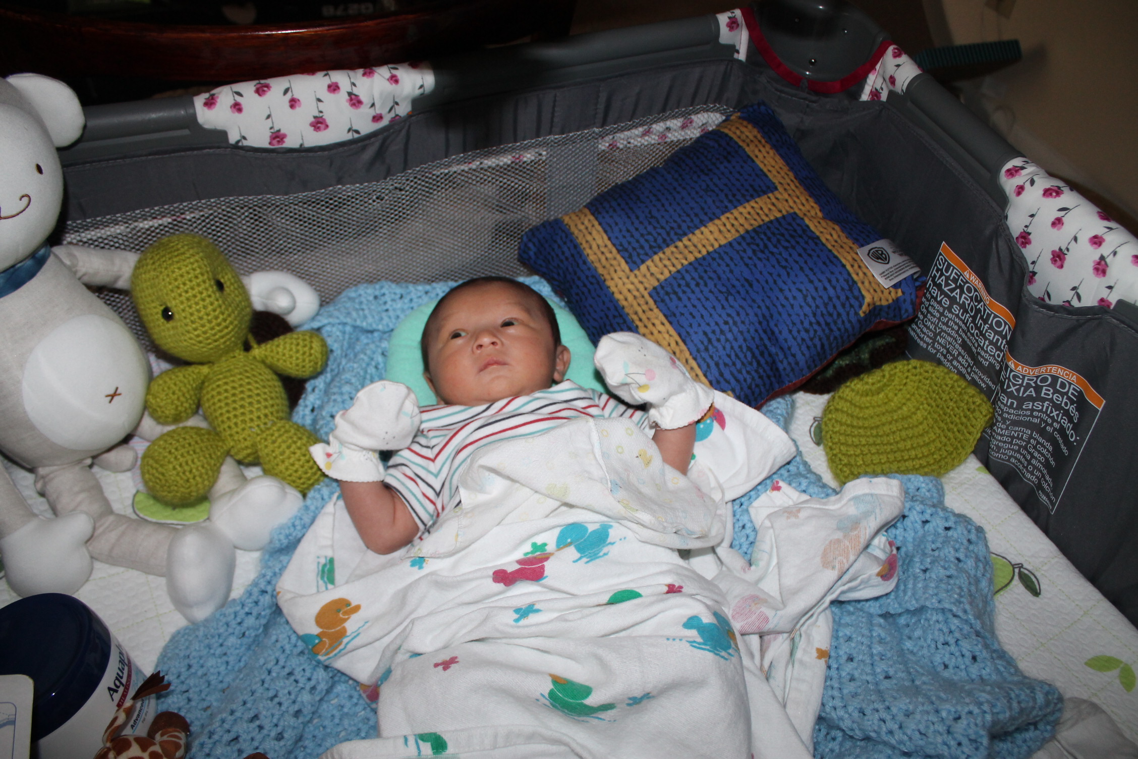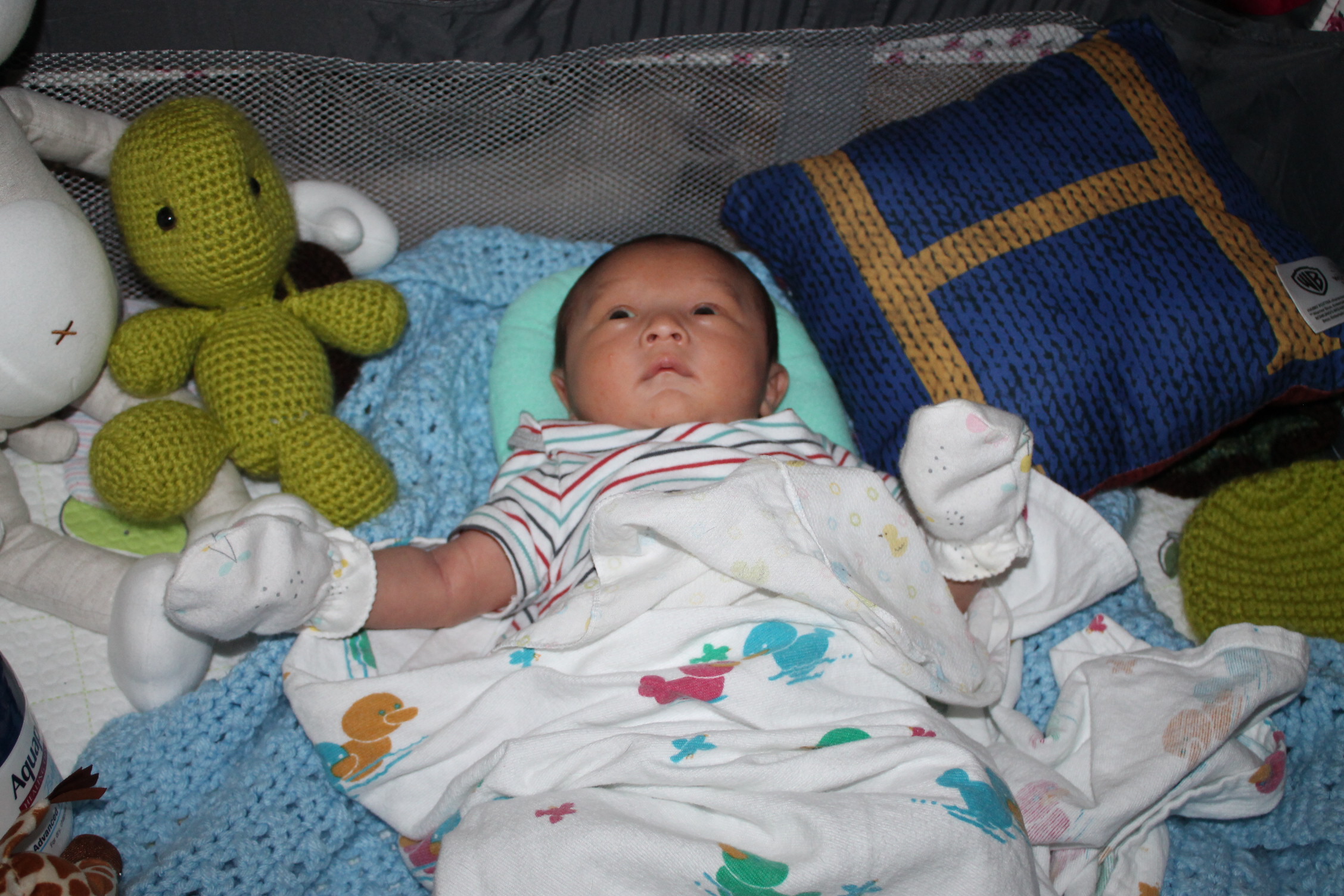 새로운 세상을 적응해 나가는 노엘은 모빌을 좋아하고 반응한다. 손을 높게 들고 마치 춤을 추는 동작을 하듯이 발도 같이 움직인다. 눈동자의 초점은 모빌에 고정되어 있고 집중적인 움직임을 관찰한다. 신비로운 세상을 발견한 사람처럼 좋아한다. 모빌을 달아 두기를 참 잘한 것 같다. 노엘이 이렇게 좋아할 줄은 몰랐다.