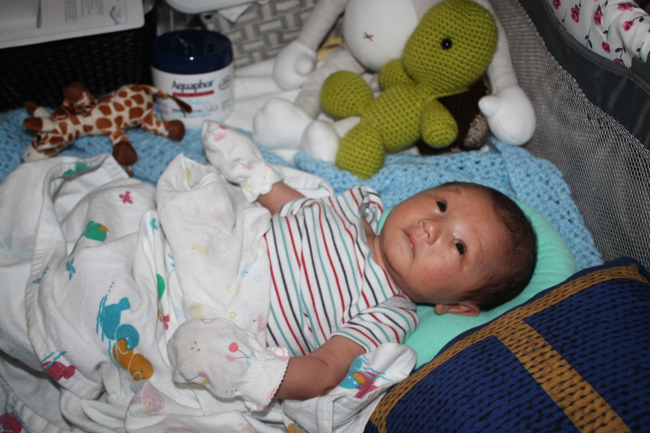 한 달이 넘은 노엘은 모빌의 음악을 듣고 움직이는 모습을 보면서 한참 쳐다보다가 손동작으로 움직인다. 이런 반복된 광경을 펼치고 있다. 지켜보는 이는 아이의 신체적 변화와 반응에 대해 관심을 두고 본다. 눈이 더 또렷해지고 우유를 먹을 때는 눈 맞춤을 잊지 않는다. 마치 나는 네가 누군지 알고 싶어 하는 단계로 보인다.