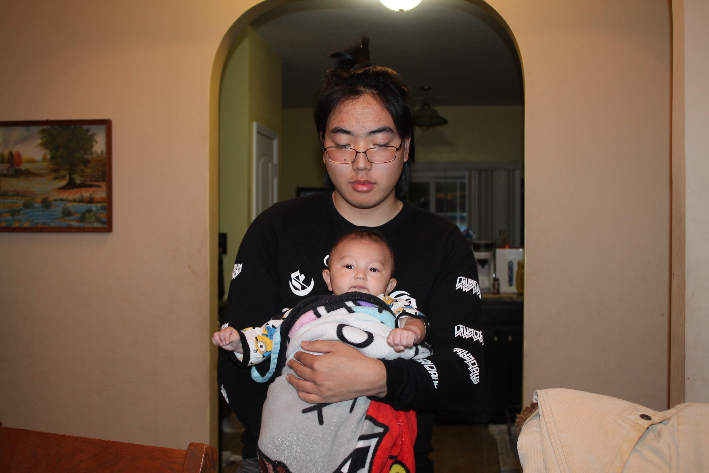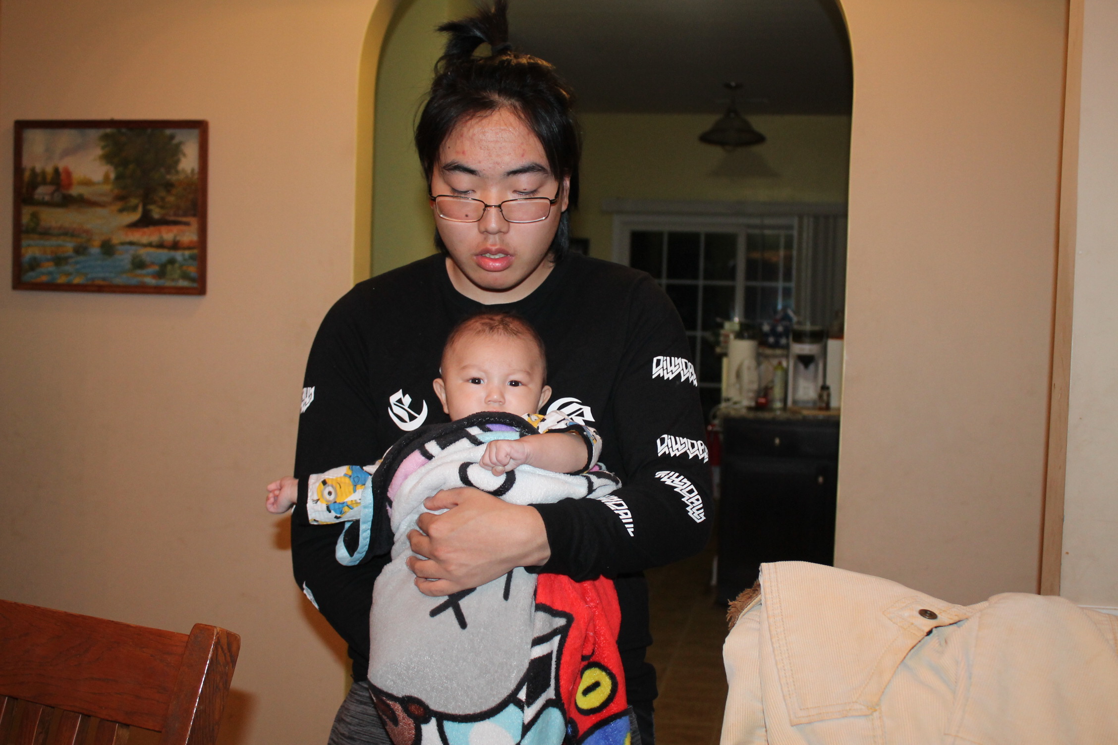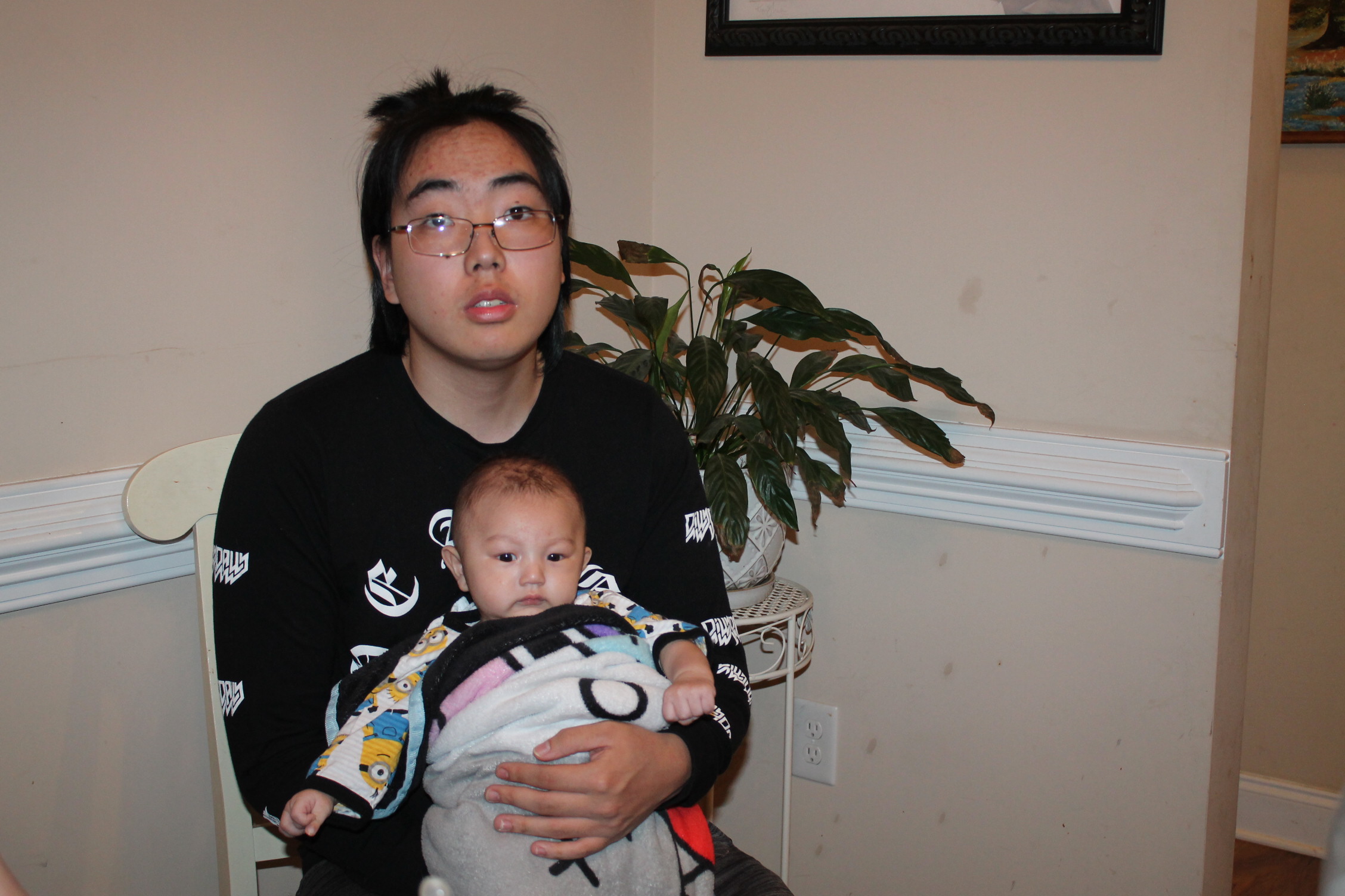 할머니가 안아 주세요. 그래도 삼촌이 불안해요.