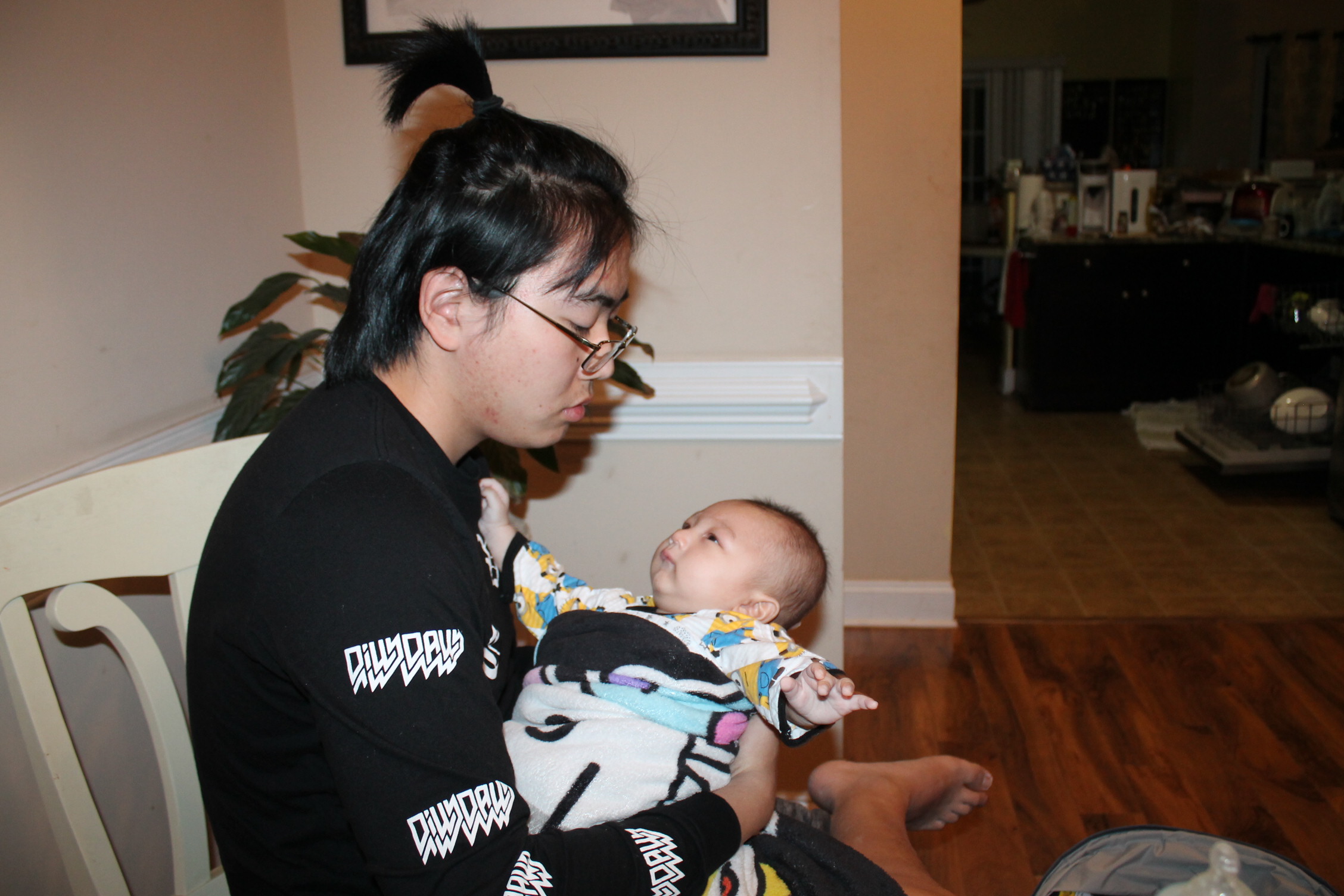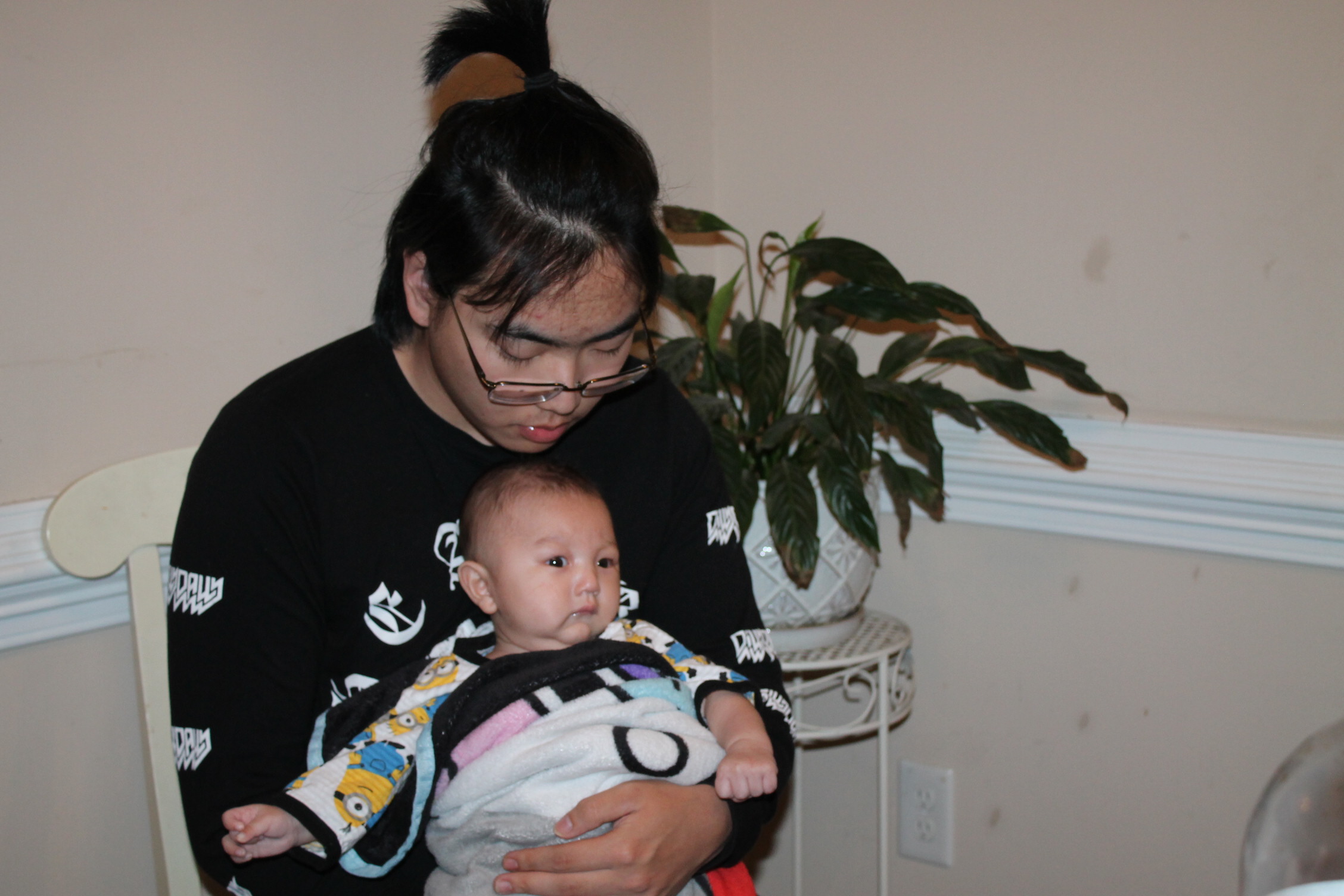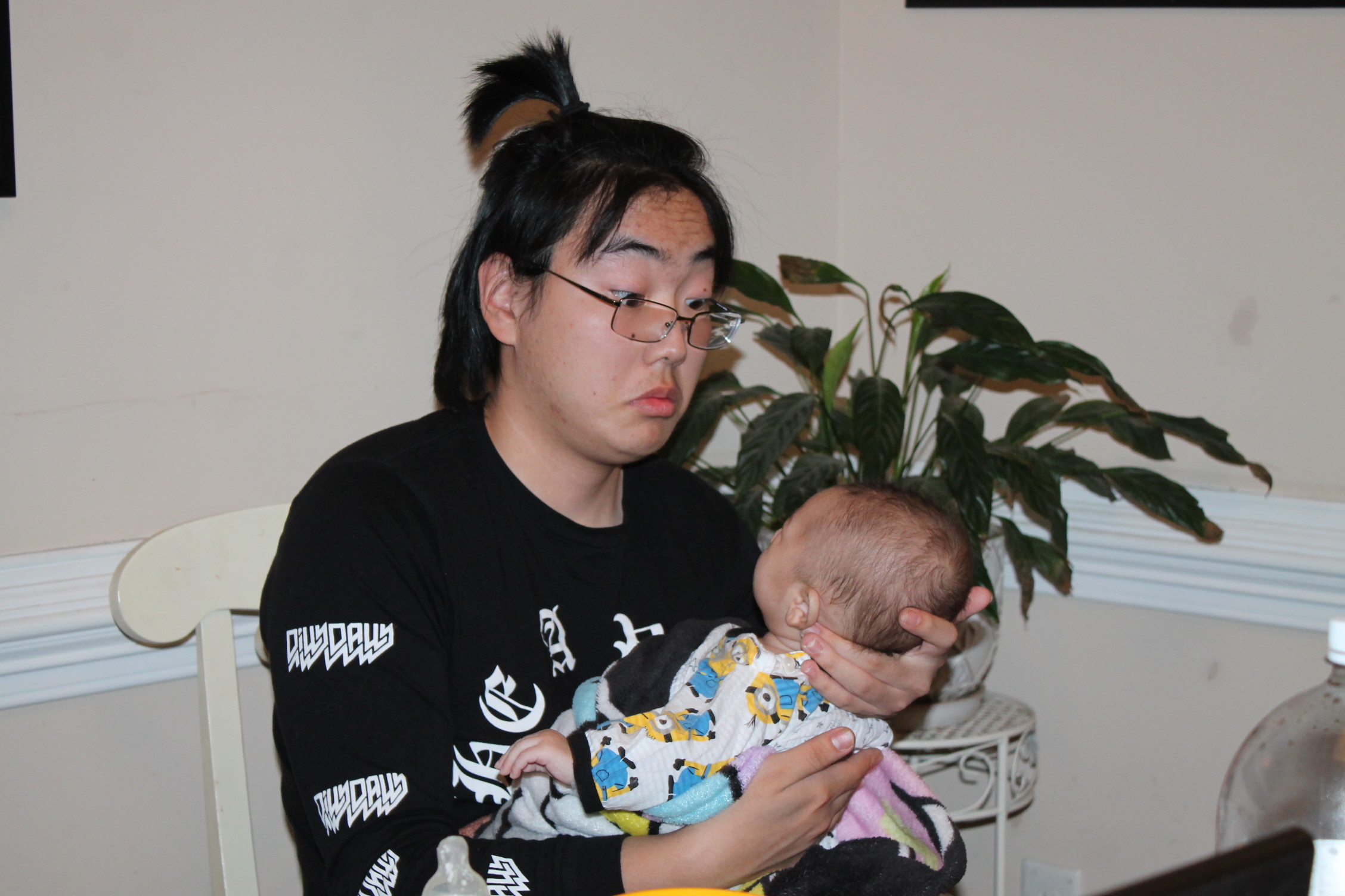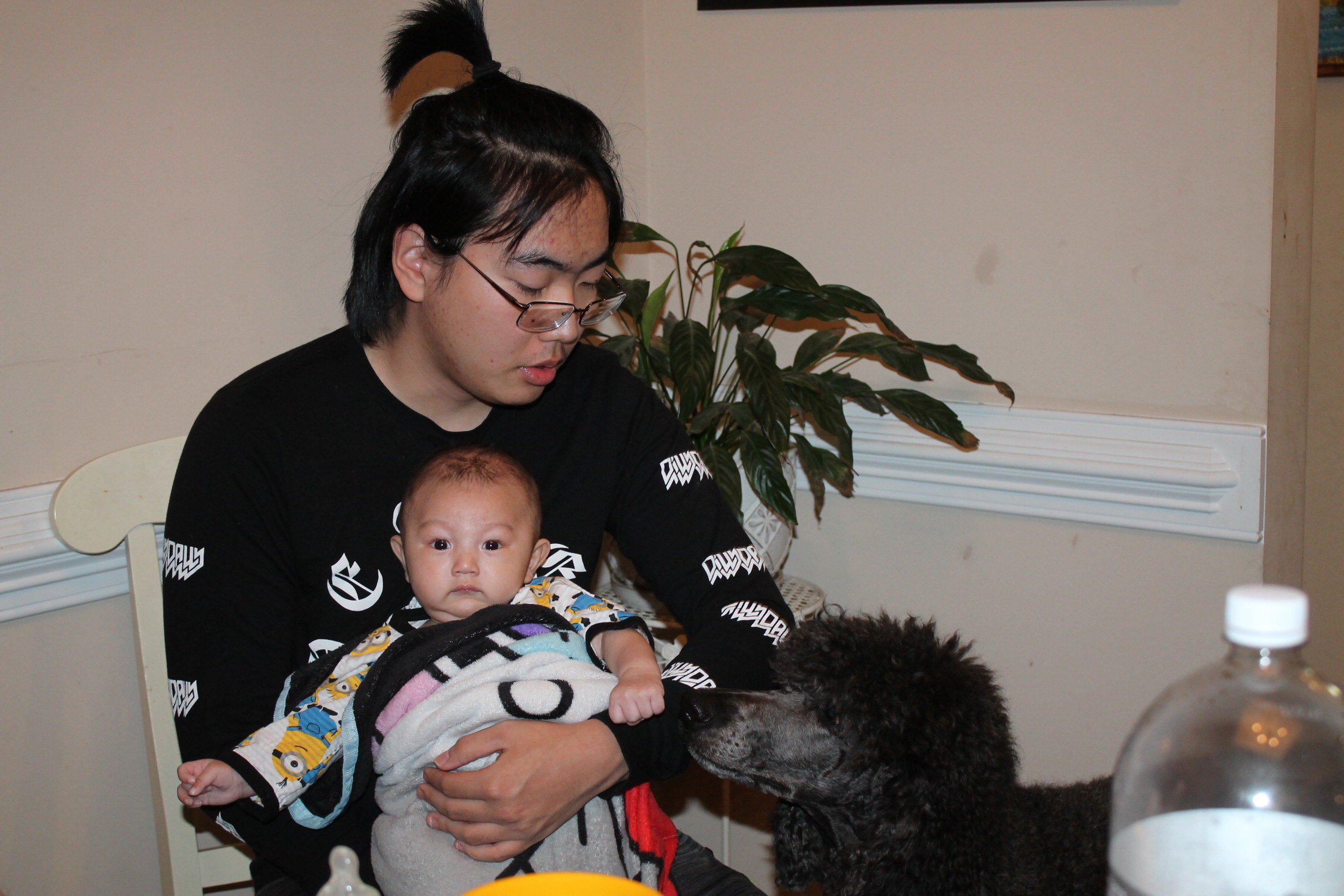 처음부터 다 아는 사람은 없다. 아기도 안고 하면서 어떤 자세로 안아 줘야 하는지 배운다. 서툰 삼촌의 아기 안는 법과 우유 먹이는 모습이다. 하지만 둘은 사랑이 있다. 삼촌은 조카를 사랑하는 마음으로 바라 보고 애정으로 돌보고 있었다. 반면 우리 집 상전 노엘은 이기적이다. 편안한 것만 고집한다. 그래서 울고 할머니한테 오려한다. 그래도 좀 더 삼촌하고 놀라고 하니 어쩔 수 없이 삼촌이 이끄는 식으로 따라간다. 이런 노엘과 삼촌이 노는 모습은 마치 두 어린아이가 소꿉장난하는 놀이처럼 보였다.