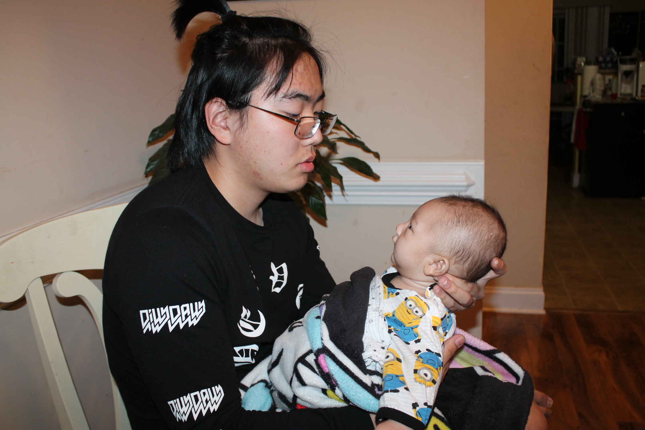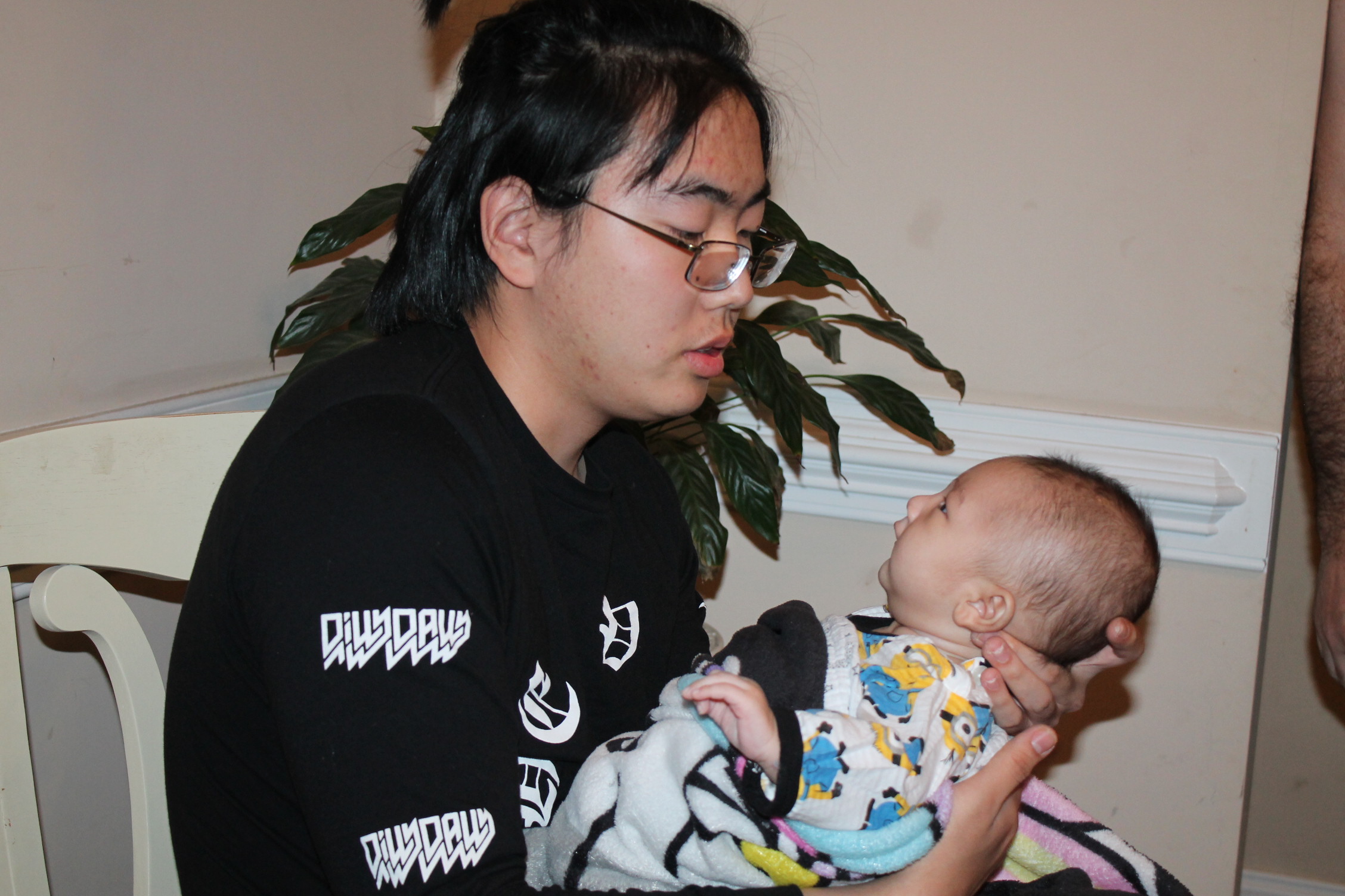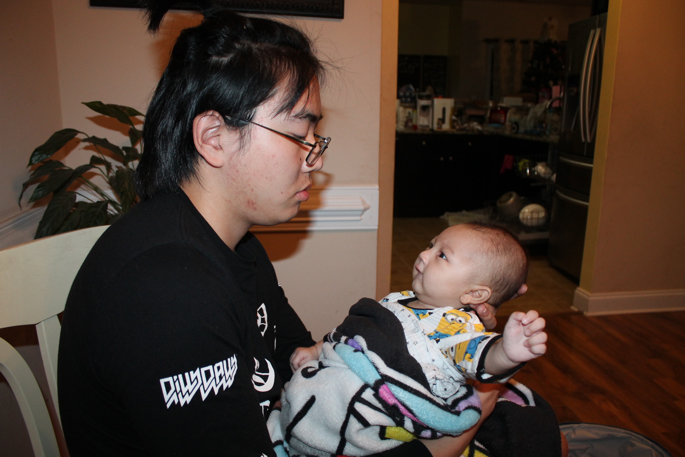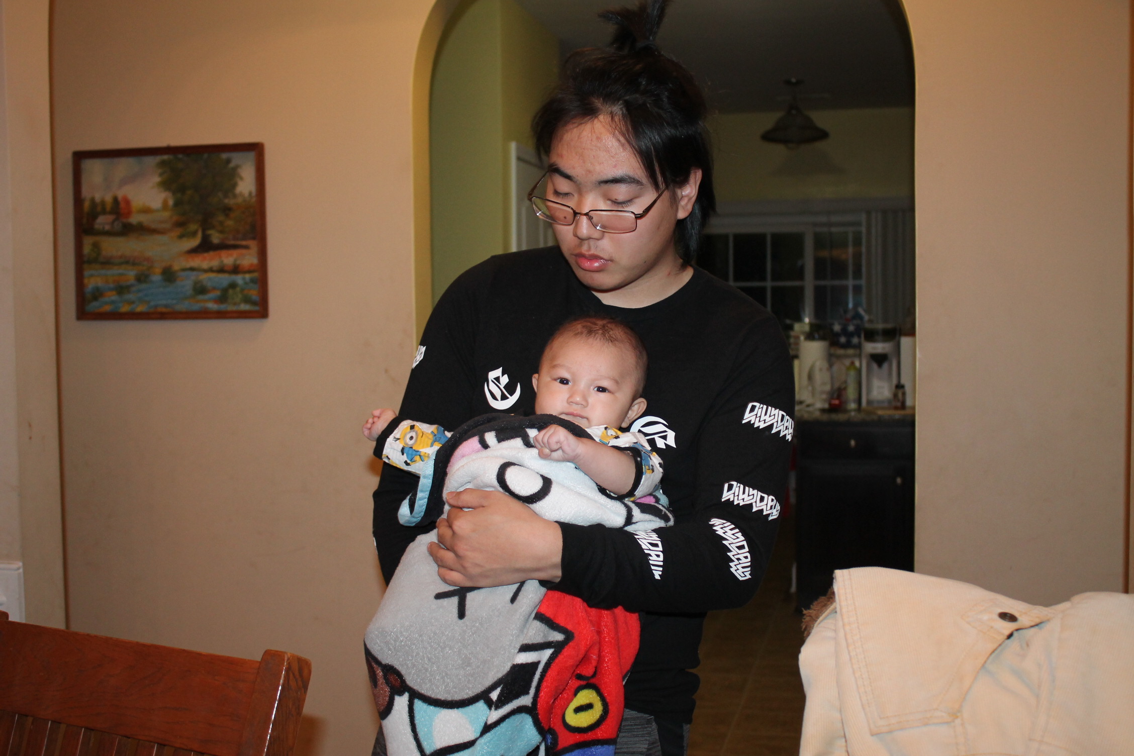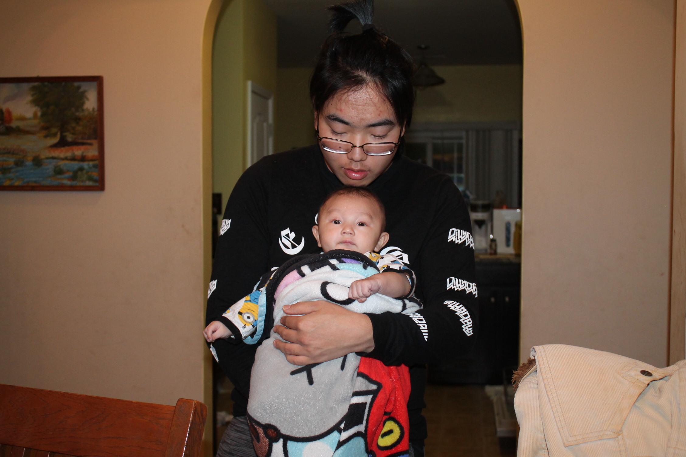 처음부터 다 아는 사람은 없다. 아기도 안고 하면서 어떤 자세로 안아 줘야 하는지 배운다. 서툰 삼촌의 아기 안는 법과 우유 먹이는 모습이다. 하지만 둘은 사랑이 있다. 삼촌은 조카를 사랑하는 마음으로 바라 보고 애정으로 돌보고 있었다. 반면 우리 집 상전 노엘은 이기적이다. 편안한 것만 고집한다. 그래서 울고 할머니한테 오려한다. 그래도 좀 더 삼촌하고 놀라고 하니 어쩔 수 없이 삼촌이 이끄는 식으로 따라간다. 이런 노엘과 삼촌이 노는 모습은 마치 두 어린아이가 소꿉장난하는 놀이처럼 보였다.