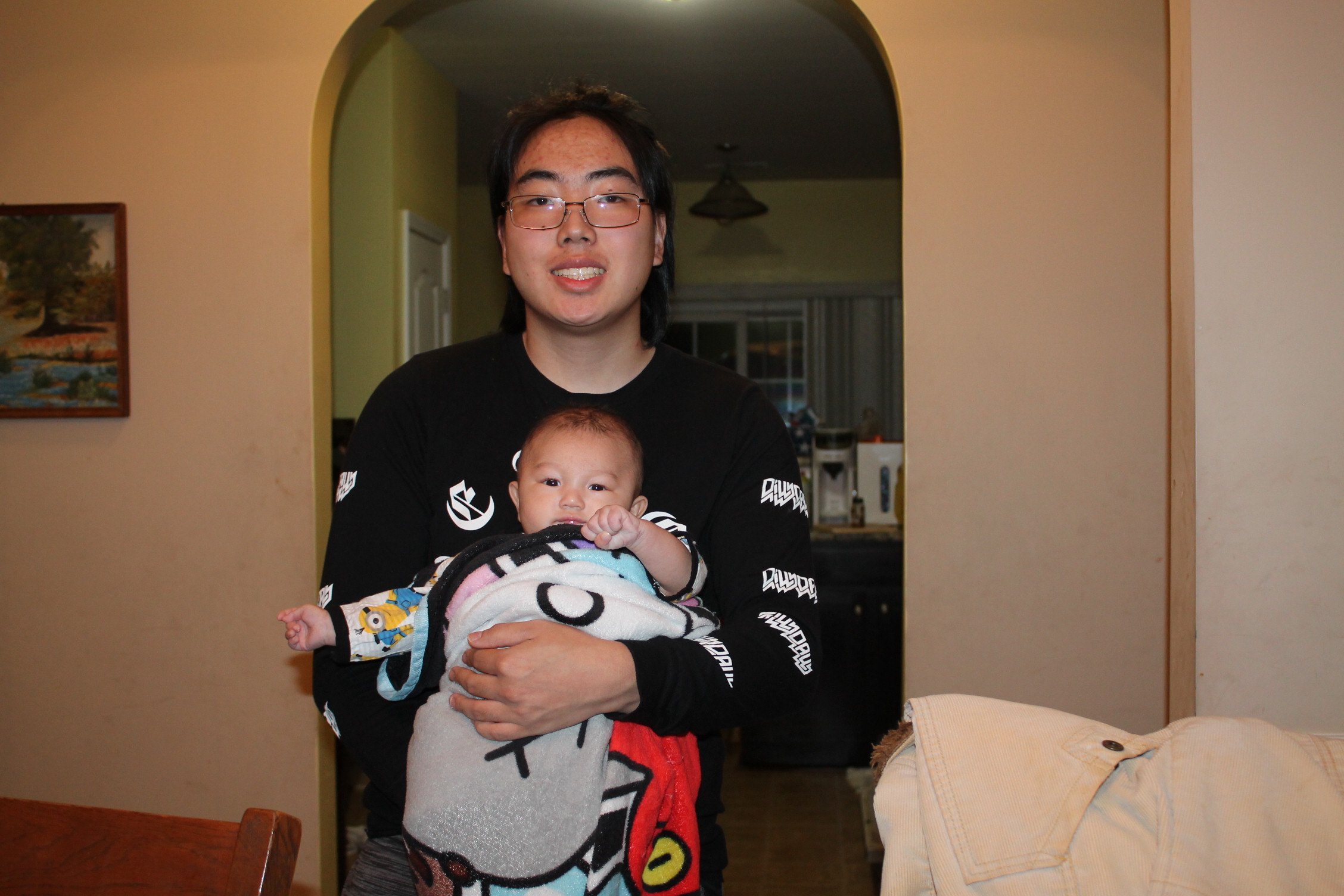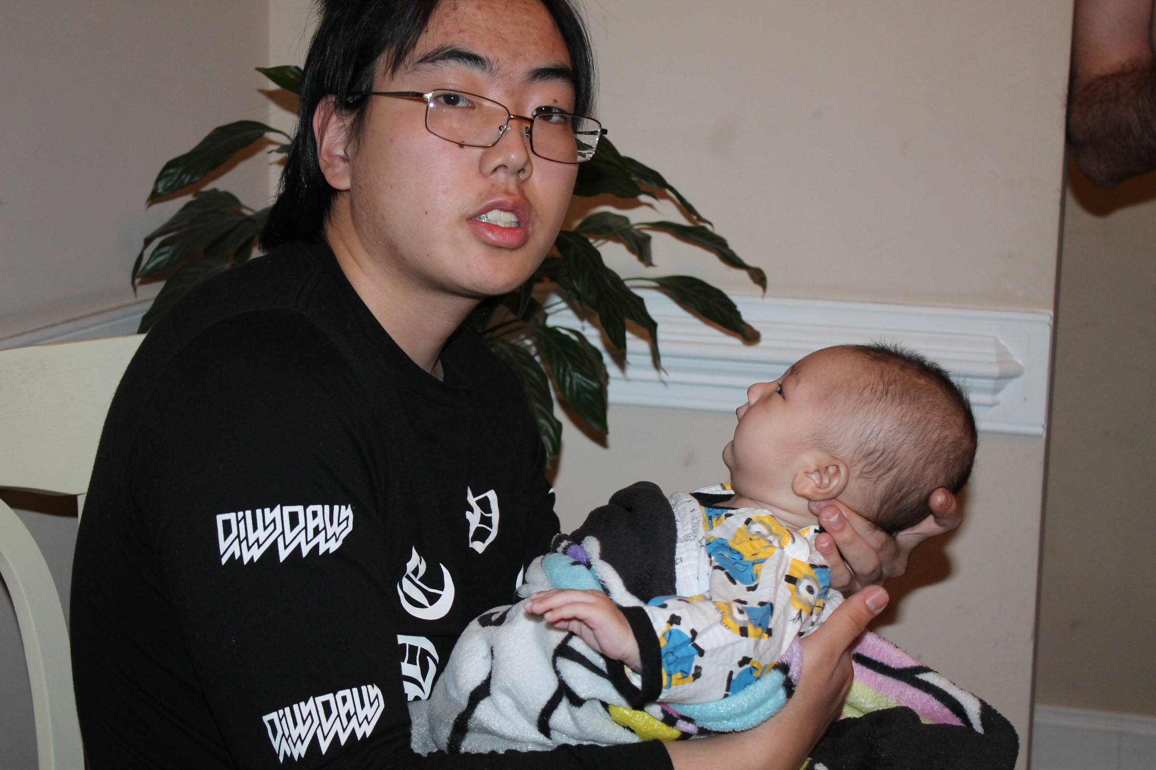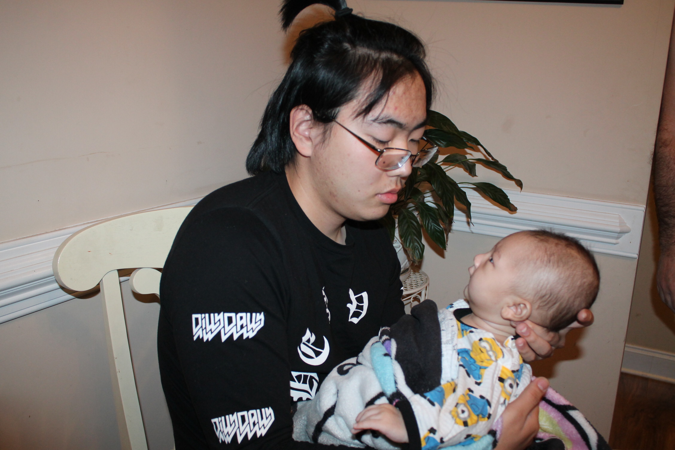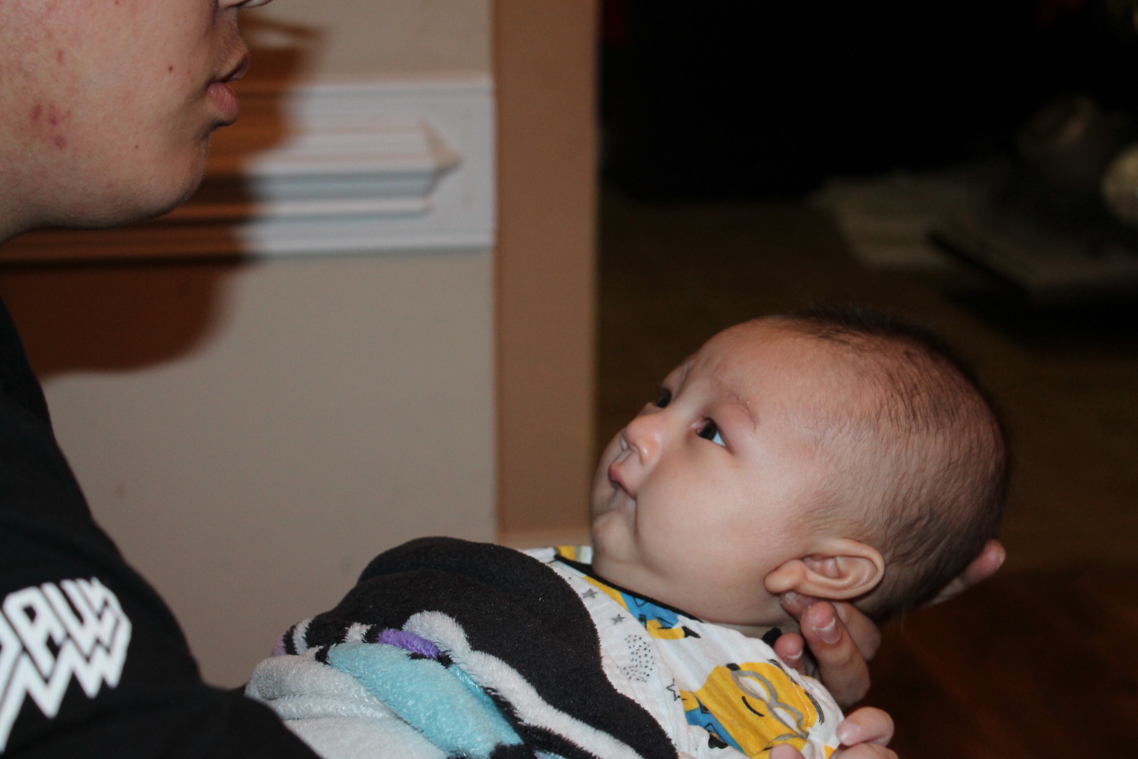 처음부터 다 아는 사람은 없다. 아기도 안고 하면서 어떤 자세로 안아 줘야 하는지 배운다. 서툰 삼촌의 아기 안는 법과 우유 먹이는 모습이다. 하지만 둘은 사랑이 있다. 삼촌은 조카를 사랑하는 마음으로 바라 보고 애정으로 돌보고 있었다. 반면 우리 집 상전 노엘은 이기적이다. 편안한 것만 고집한다. 그래서 울고 할머니한테 오려한다. 그래도 좀 더 삼촌하고 놀라고 하니 어쩔 수 없이 삼촌이 이끄는 식으로 따라간다. 이런 노엘과 삼촌이 노는 모습은 마치 두 어린아이가 소꿉장난하는 놀이처럼 보였다.