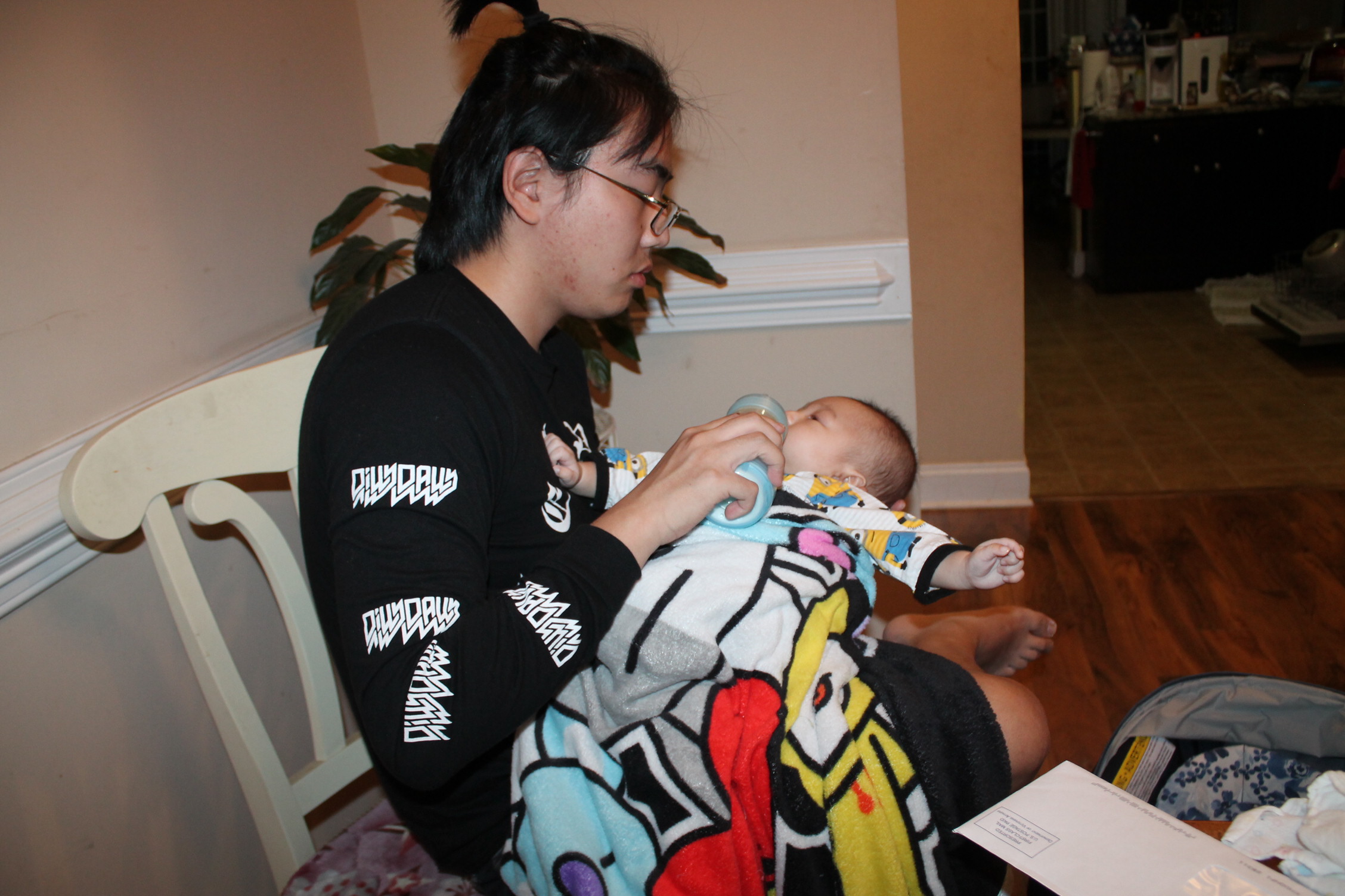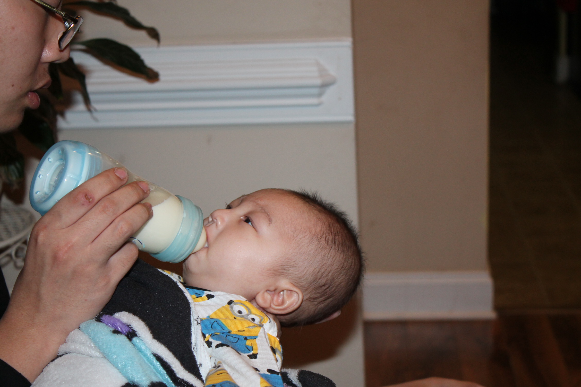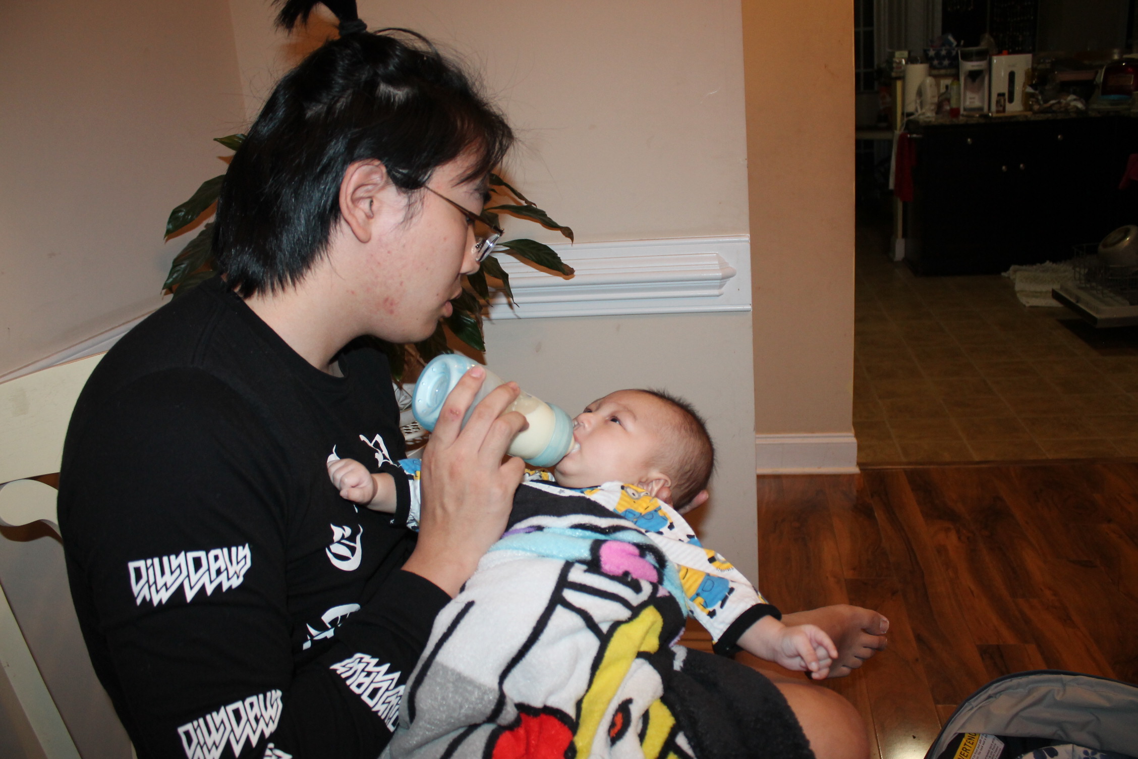 삼촌은 모든 것이 새롭다. 아기 우유 먹이는 것도 아기를 돌보는 자체가 신기하다. 모든 것이 새롭게 다가 온 삼촌이 이번에는 우유 먹이는 작업에 도전한다. 삼촌은 어느 정도가 적당 양인지 모른 채 계속 노엘 입으로 젖병을 밀어 넣었다. 이런 모습을 본 노엘은 극구 반대의 표시로 젖병 입으로 밖으로 밀어내고 있었다.