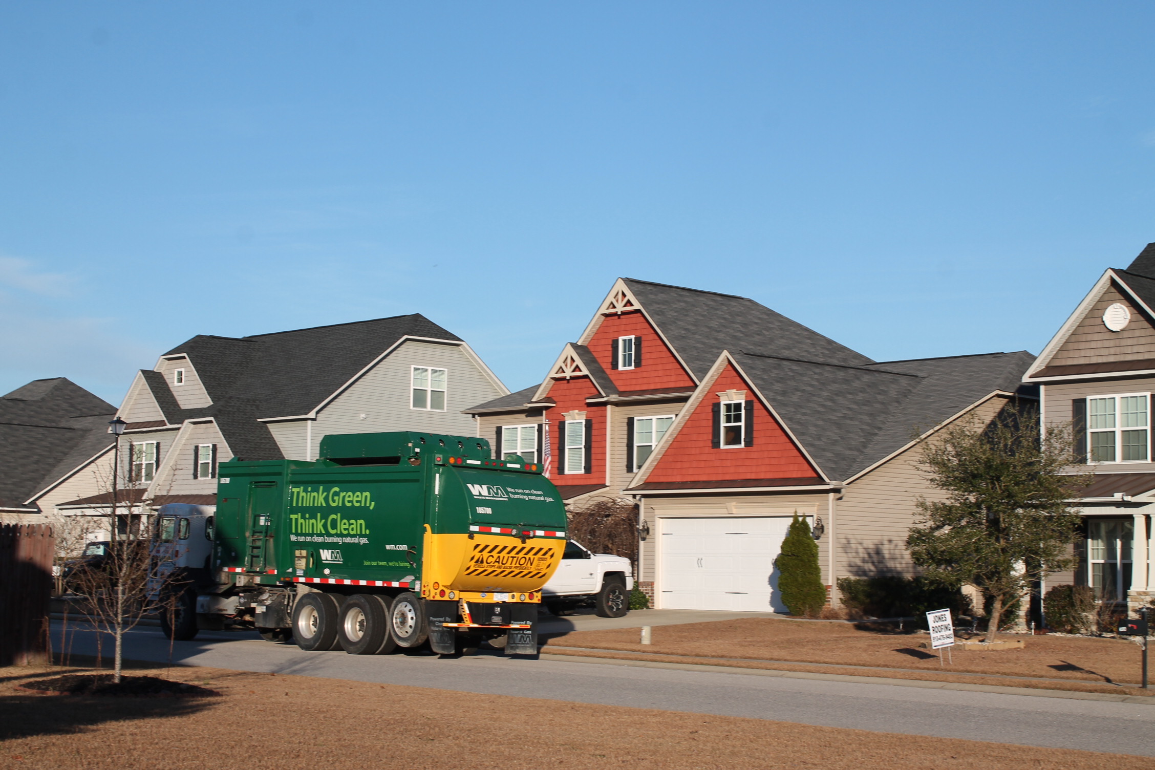 쓰레기 차가 오는 날이 있다. 그 날에는 집집마다 쓰레기 통을 우체통과 떨어진 옆에다 손잡이를 바깥으로 내놓아야 한다. 그래야 쓰레기 차의 자동 연결하는 고리가 손쉽게 들어 올릴 수가 있다.