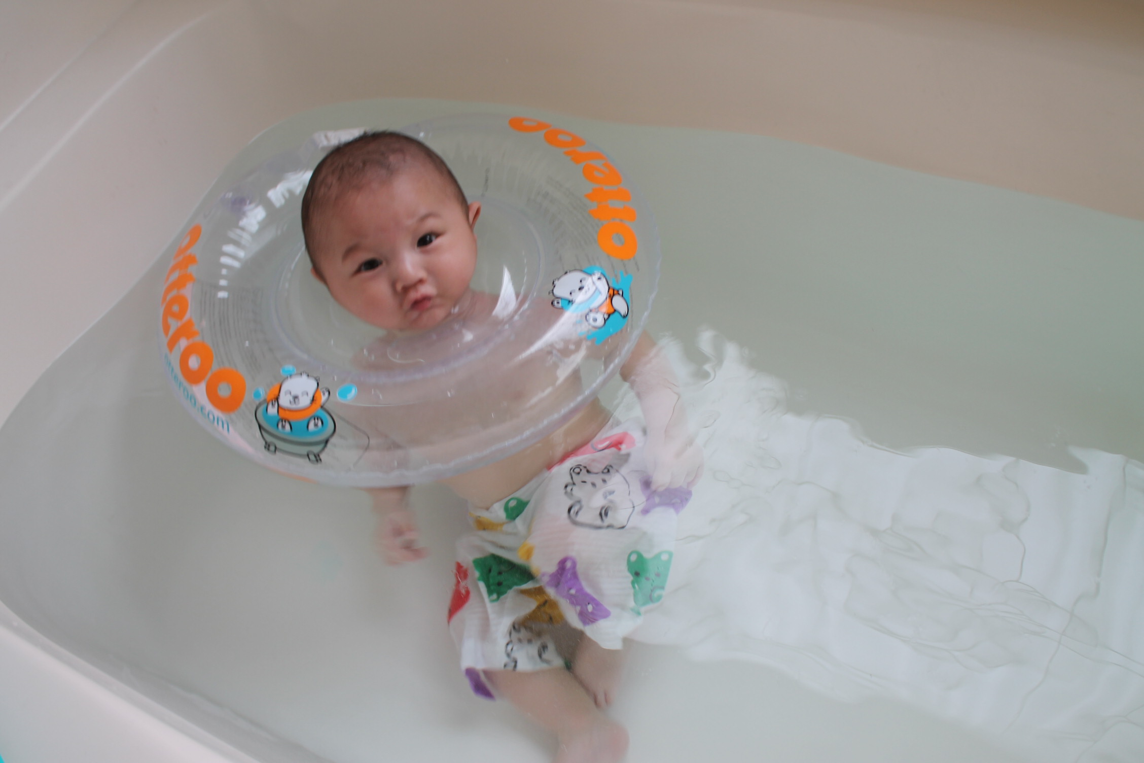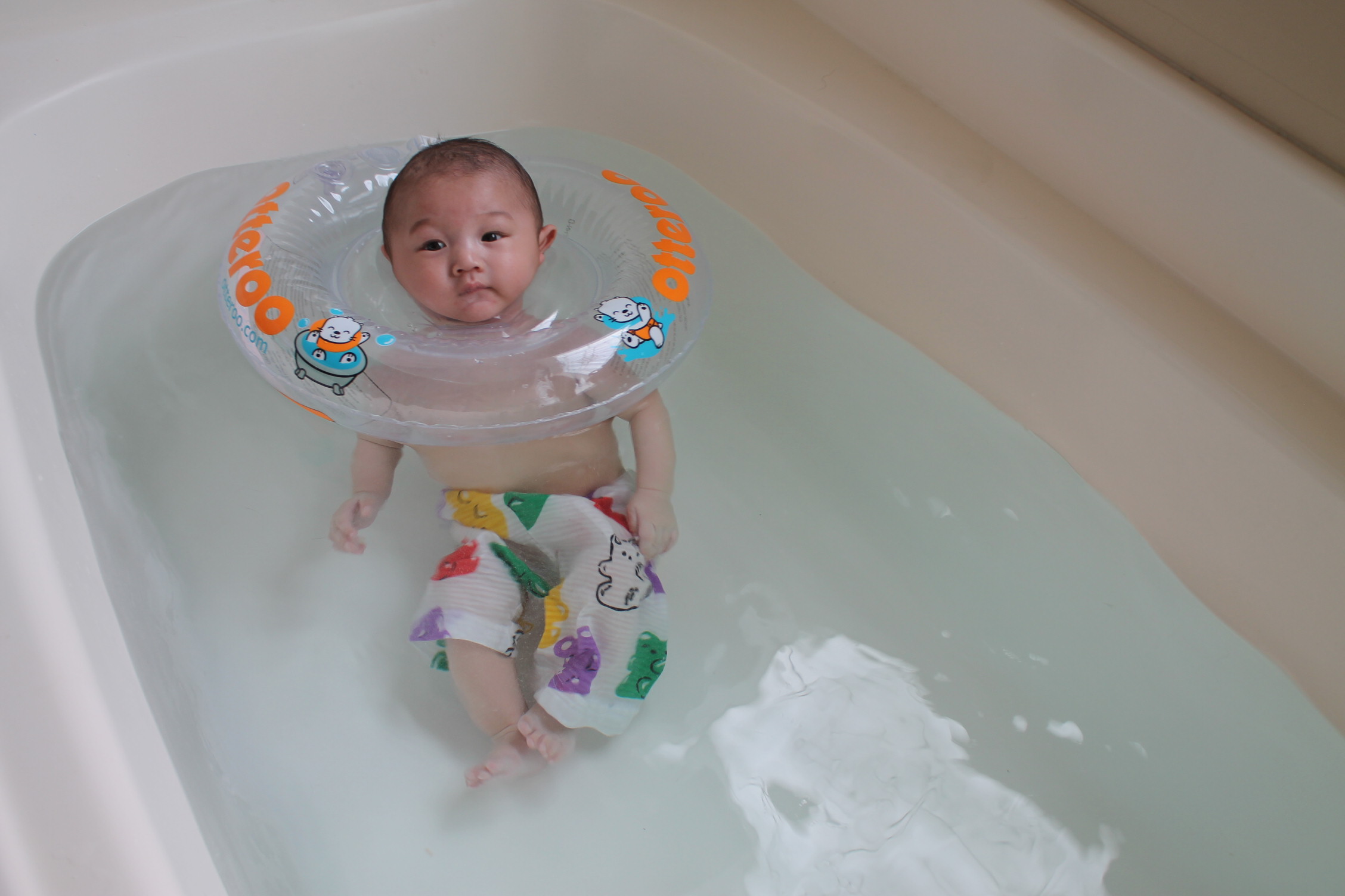 물놀이 신이 난 노엘이다. 목 듀브를 해주었더니 이렇게 좋아하고 즐기는 모습을 볼 수가 있었다. 이제는 자유롭게 뒤집기의 신기술을 보여 주면서 물놀이하는 모습은 행복한 일상을 전달해준다. 한참 보고 또 봤던 노엘의 모습 속에서 즐기고 좋아한다는 모습을 역력히 발견할 수가 있었다. 좋고 싫음을 완벽하게 구분해내고 있었다.