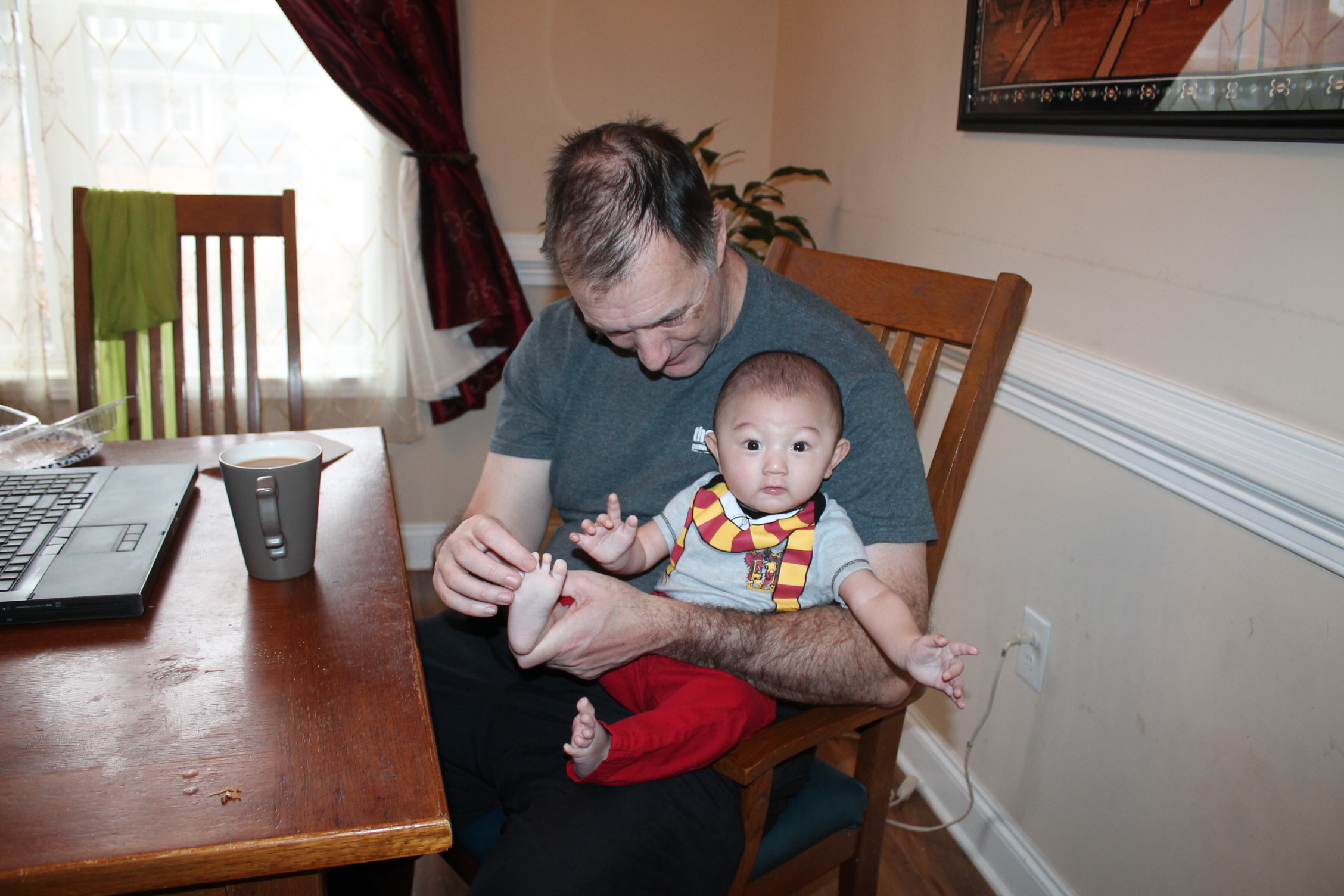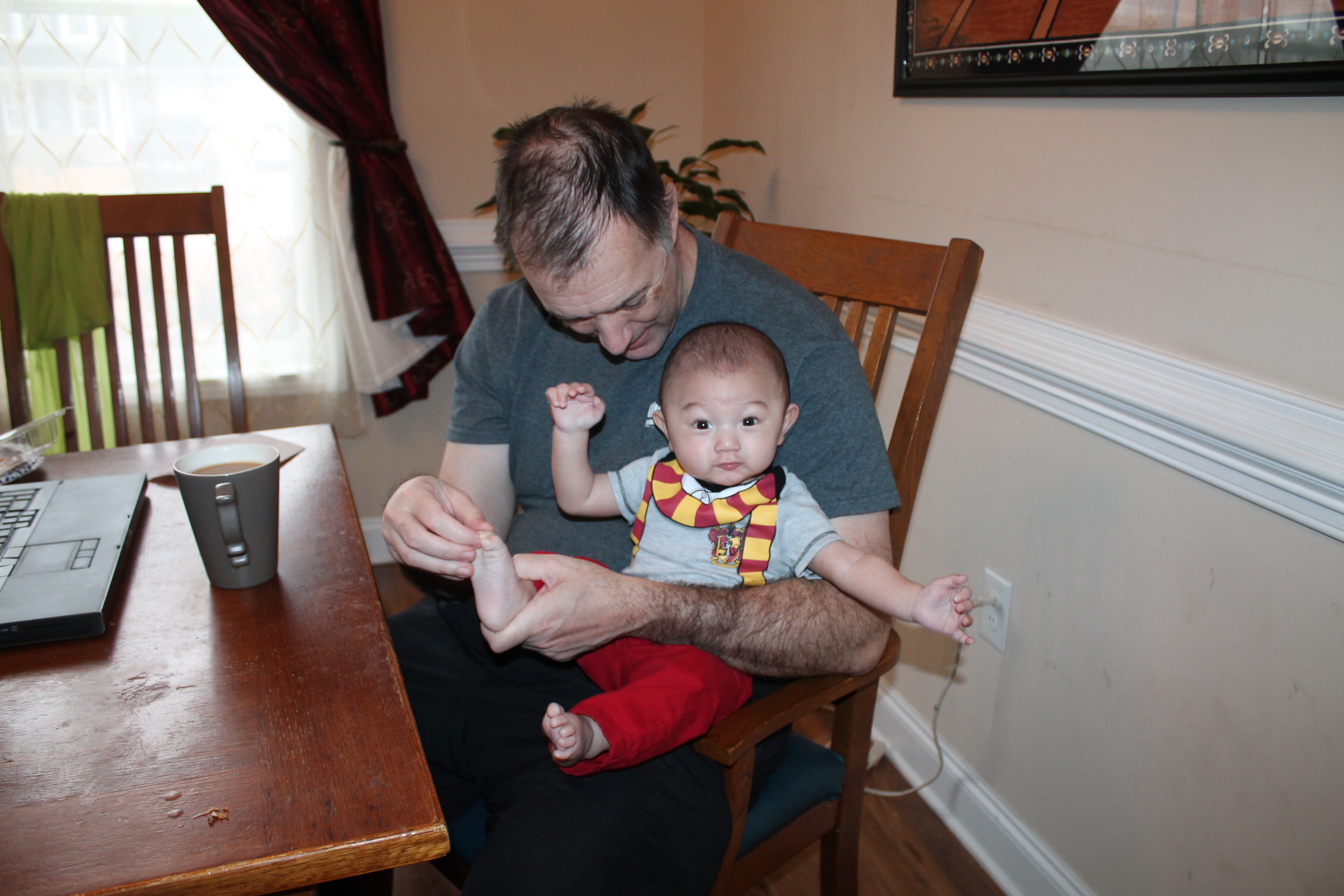 4개월이 된 노엘이다. 노엘은 즐거운 놀이를 발견했다. 할아버지가 놀아 주는 장단에 맞추어 즐겁게 놀고 있었다. 신이 났던지 손과 발이 열심히 움직이고 있었다. 할아버지는 노엘과 놀아주는 일상의 모습이 행복한 풍경이 되었다. 하루를 돌아보면 이런 시간이 예쁜 추억으로 기억에 남게 된다.