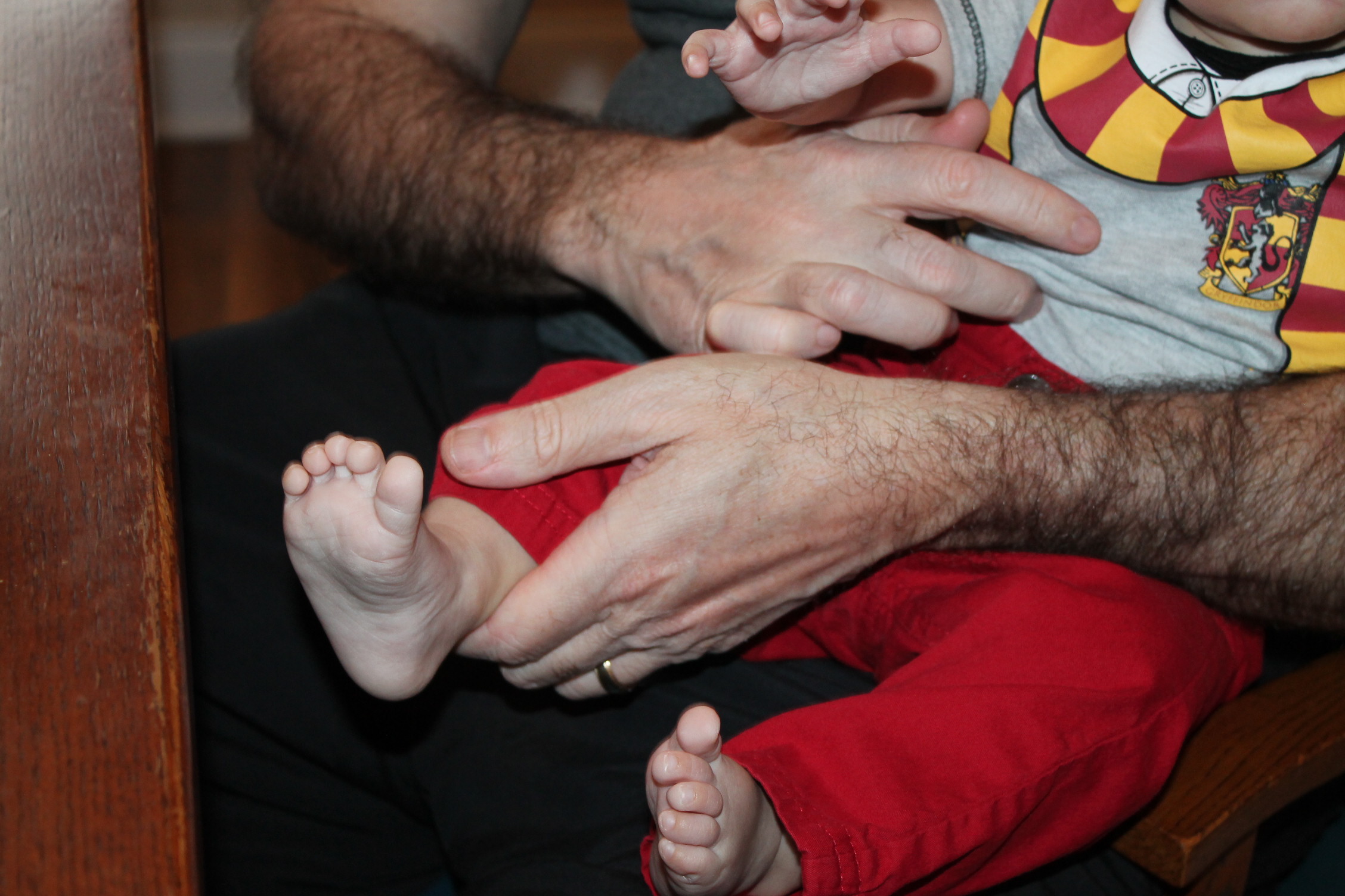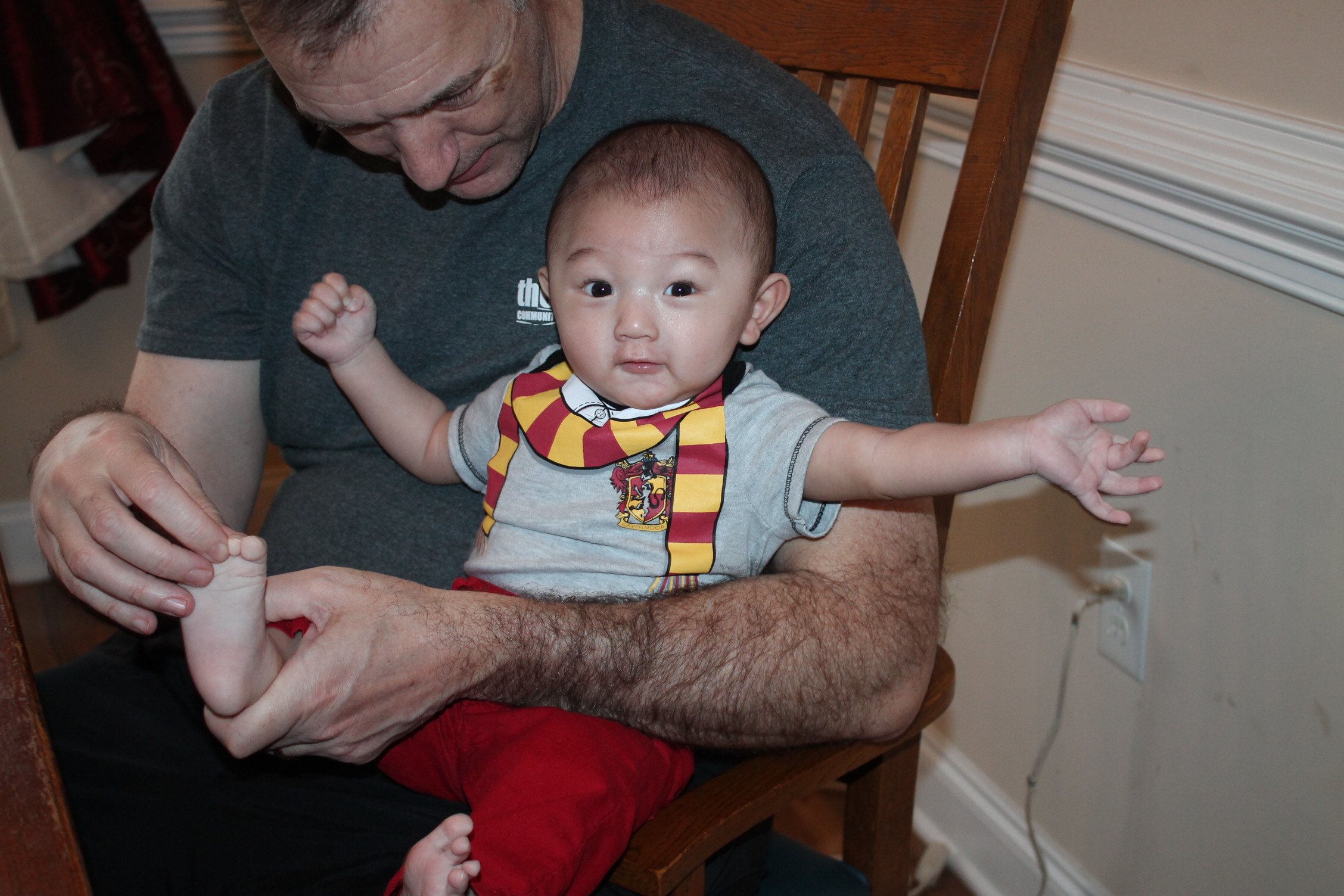 이렇게 발가락을 잡고 놀아 주셨어요.