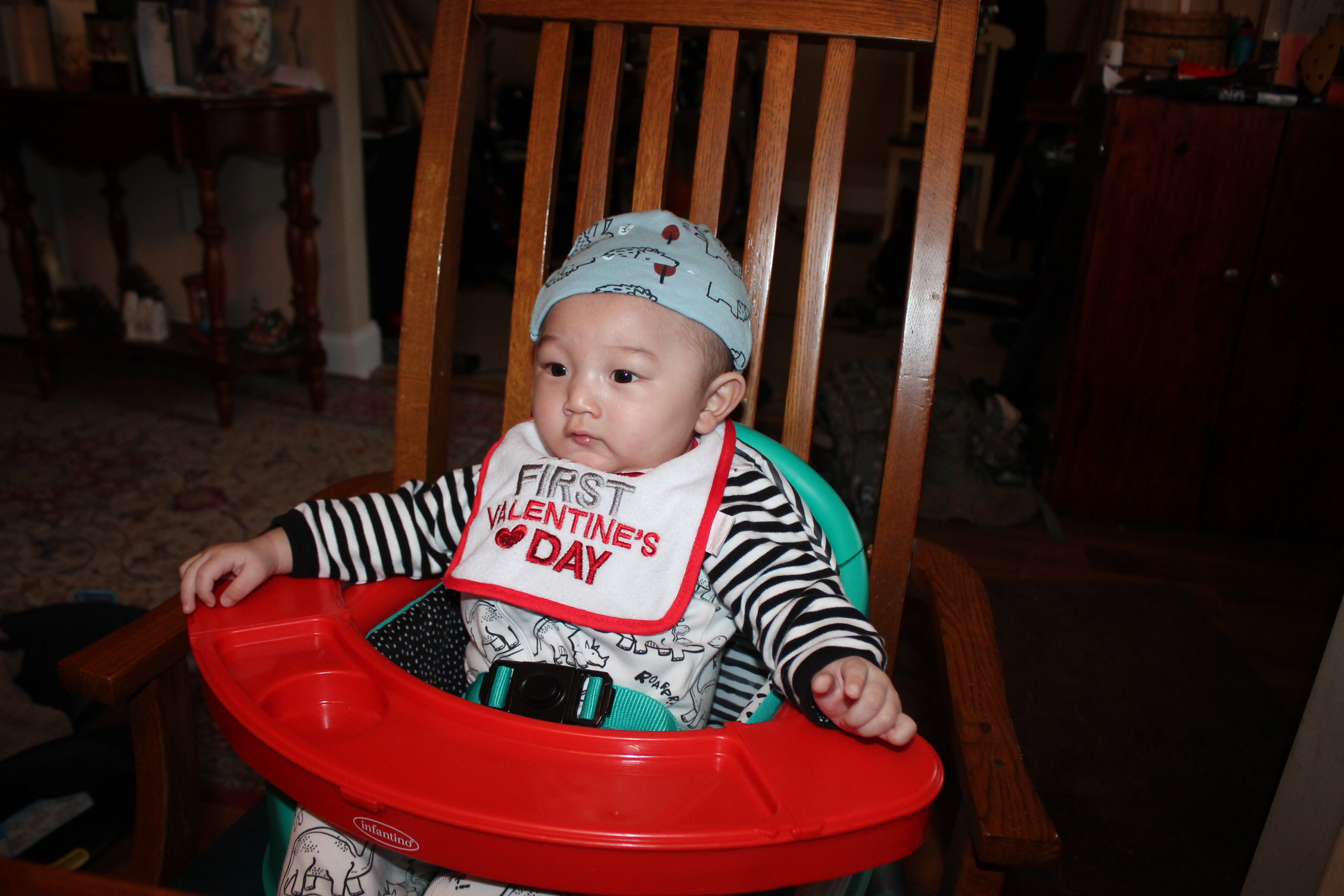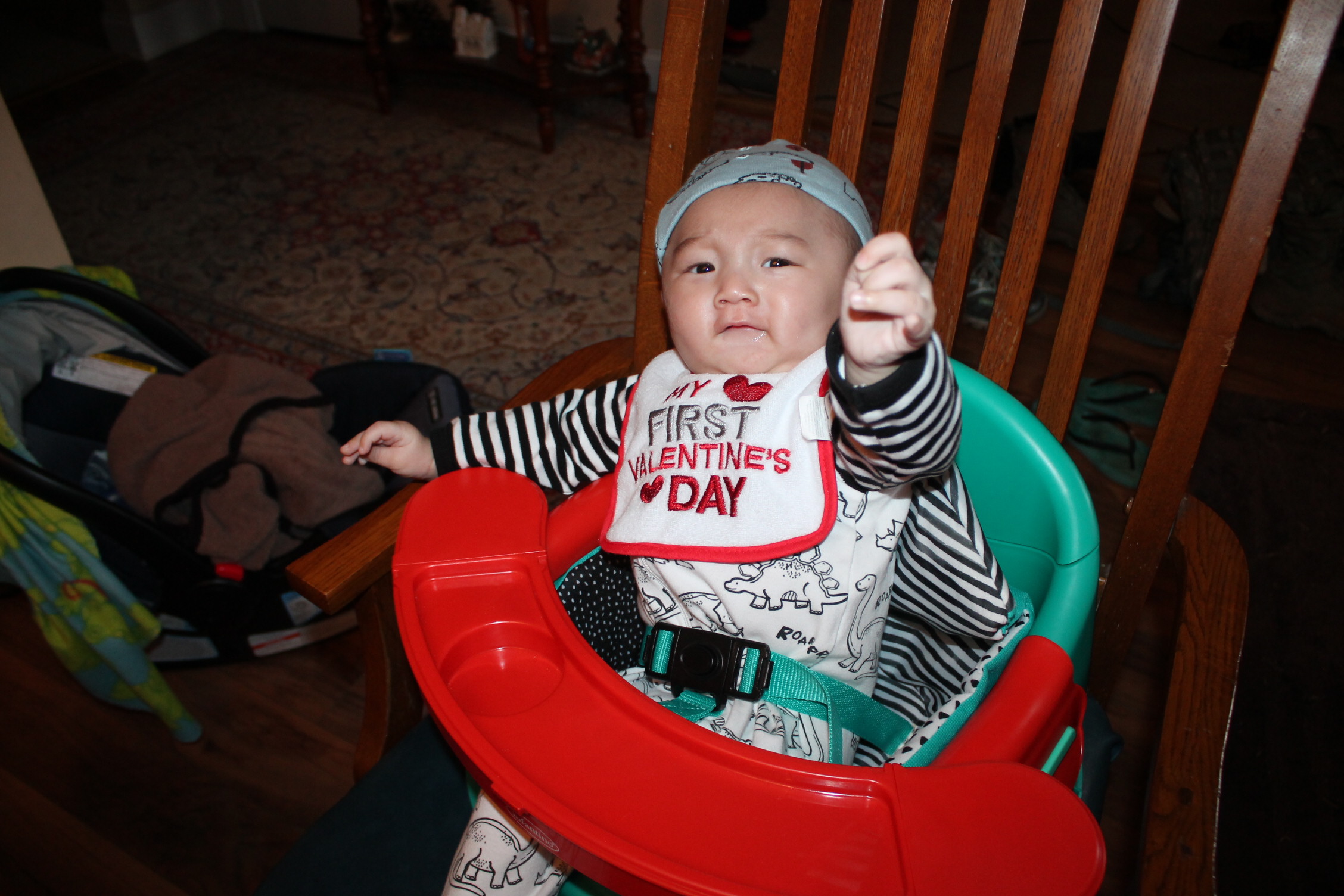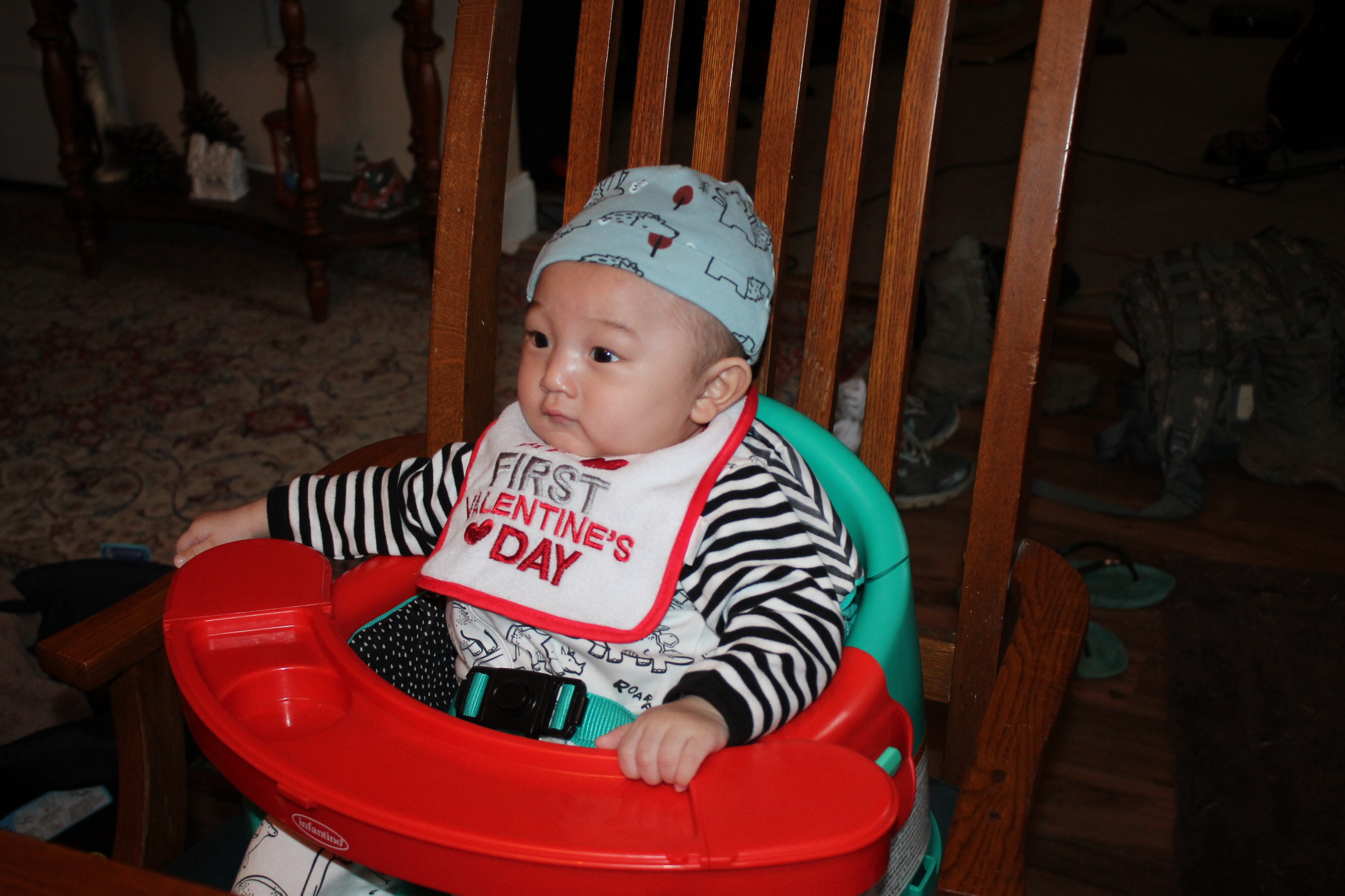 아직까지는 불안한 표정이지만 그래도 혼자서 앉아 있는 모습을 잠시 보니 흐뭇한 순간이 되었다. 우리 노엘은 이렇게 모든 것을 연습이라는 과정을 통해서 배우고 습득해 나간다. 사회생활을 배우는 것도 인간관계의 형성이 되는 어린 시절은 가족의 도움이 아주 크다. 그런 우리 노엘은 사랑을 많이 받고 자란다.