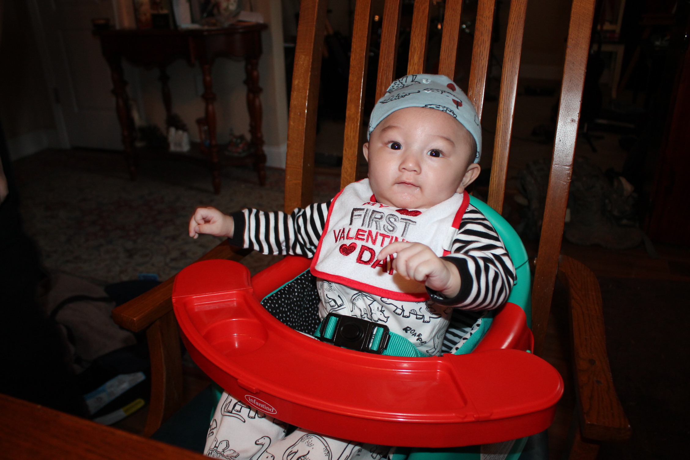혼자 앉을 수 있어요. 정말? 하하하 그런데 현실은 그렇지 않았다. 정말 앉을 수 있을까 해서 앉혀 놨더니 아래의 사진과 같은 현상이 발생했다. 좀 더 연습이 필요한 것일까? 아슬한 모습이 마치 넘어질 것 같아서 옆에서 받혀 줘야 한다. 손자의 성장은 빠르다. 오늘은 의자에 앉아 있는 늠름한 모습을 보았다.