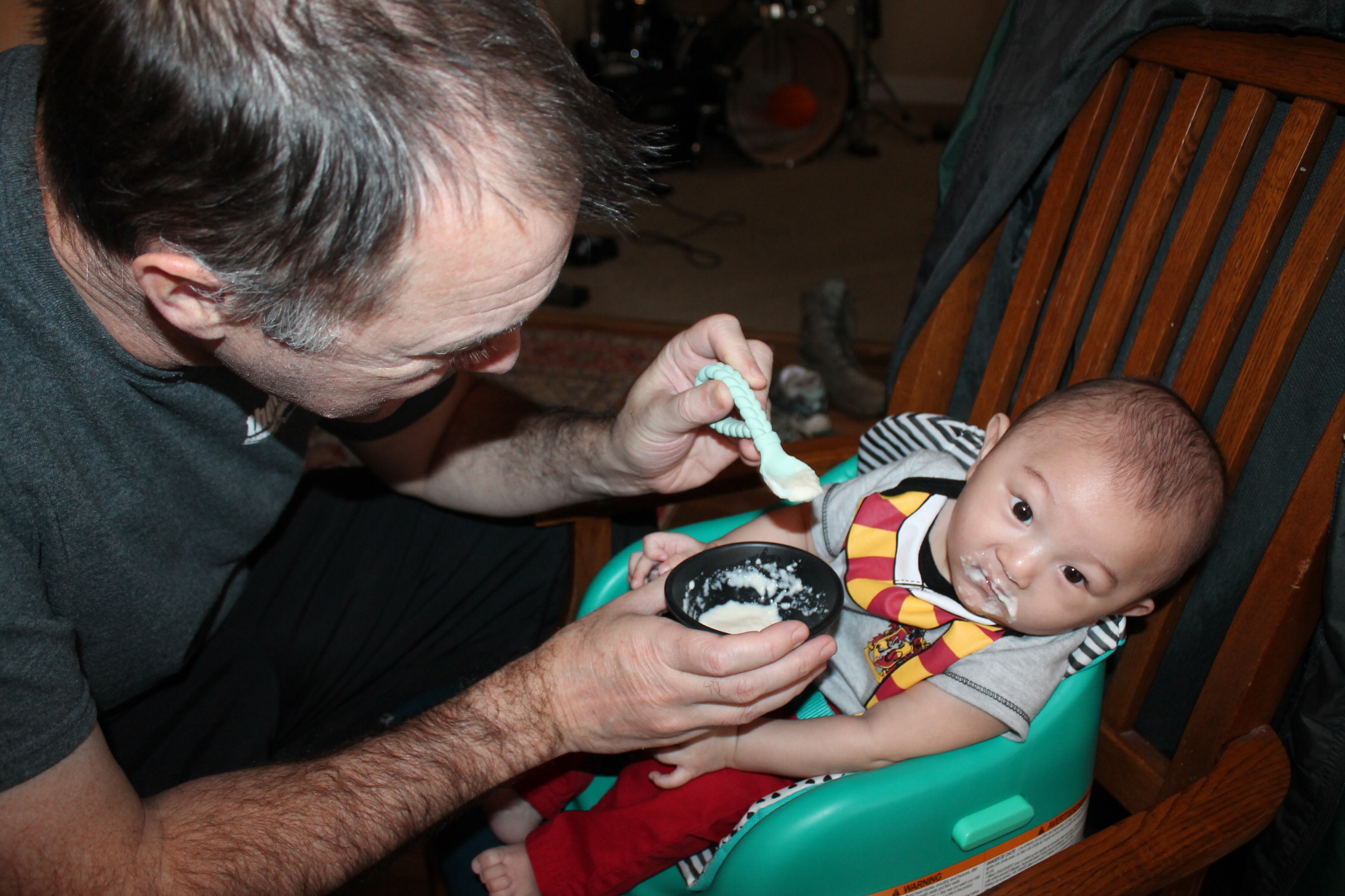 사진을 찍을 당시는 몰랐는데 이렇게 보니 한참 웃고 말았다. 노엘의 이유식은 이제 시작이다. 아직은 적응기가 필요한 것 같다. 그래도 혀로 맛을 느끼는 모습을 보니 신기했다. 우리 큰 아들과 딸도 이런 식으로 예전에 이유식을 먹였던 기억이 났다. 이제는 손자의 이유식을 먹이고 있는 할아버지 모습이다.