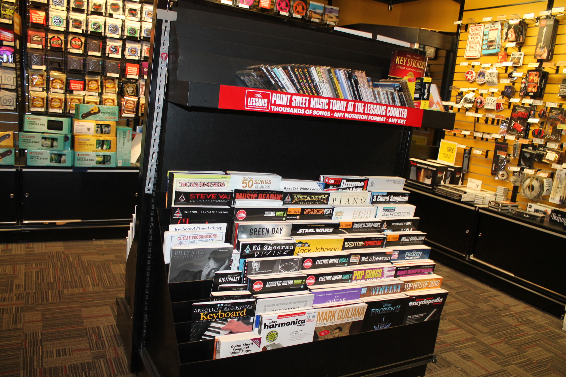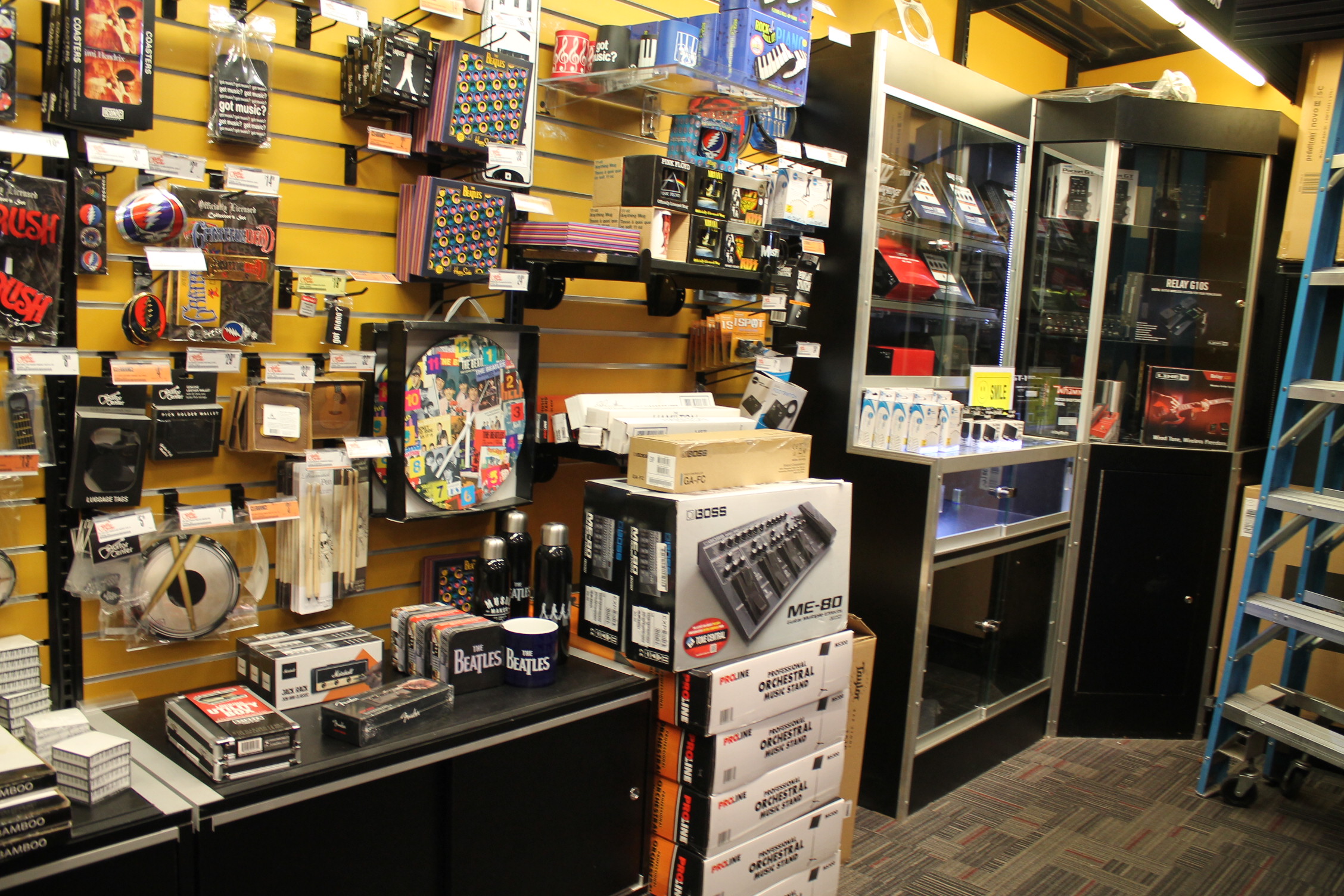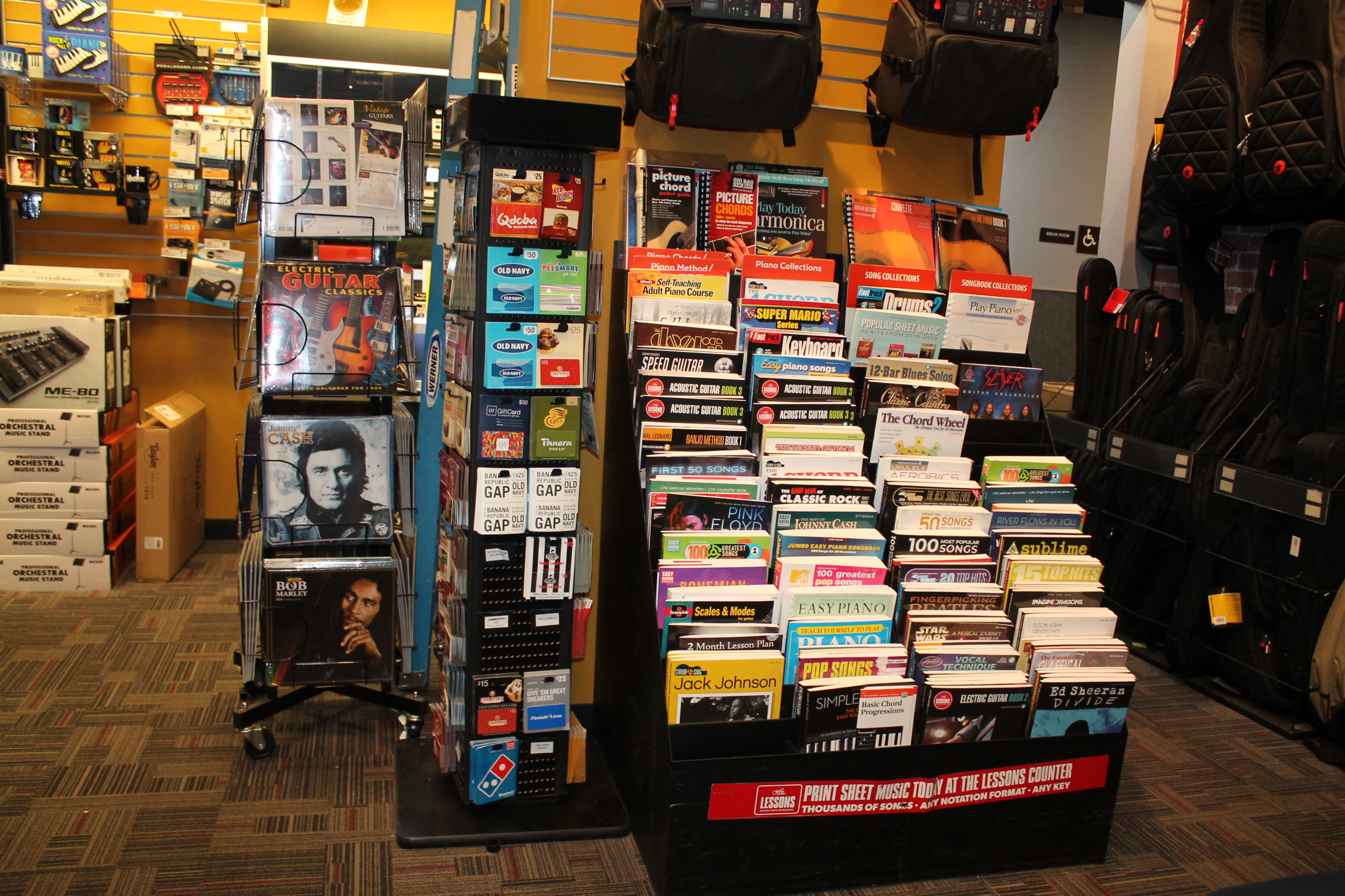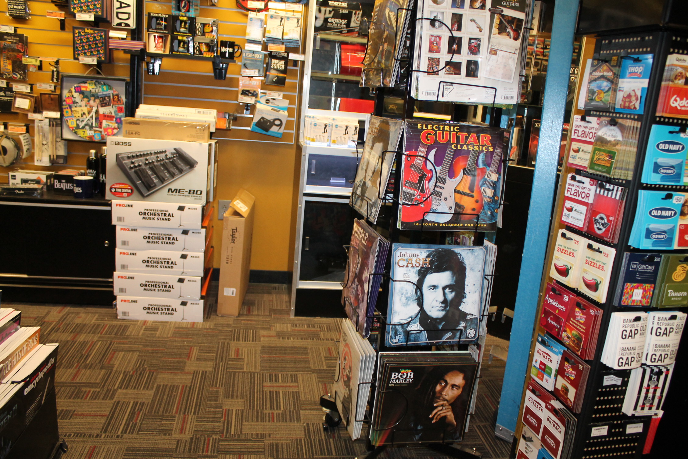 악기도 다양하게 보유하고 있다. 기타 센터는 악기 프랜차이즈 상점이다.