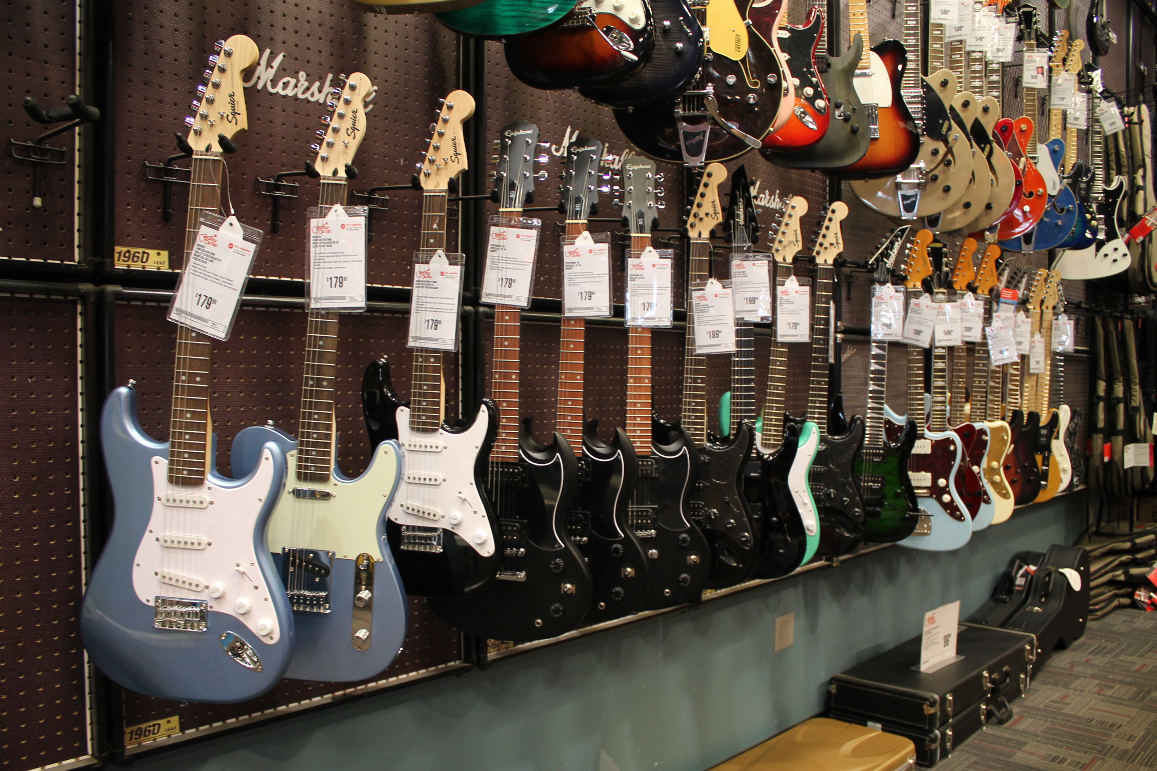 일렉 기타이다. 멋지지. 이건 가격이 싼 것이다. 어떻게 아냐고. 맨 아래 진열되어 있기 때문이다.