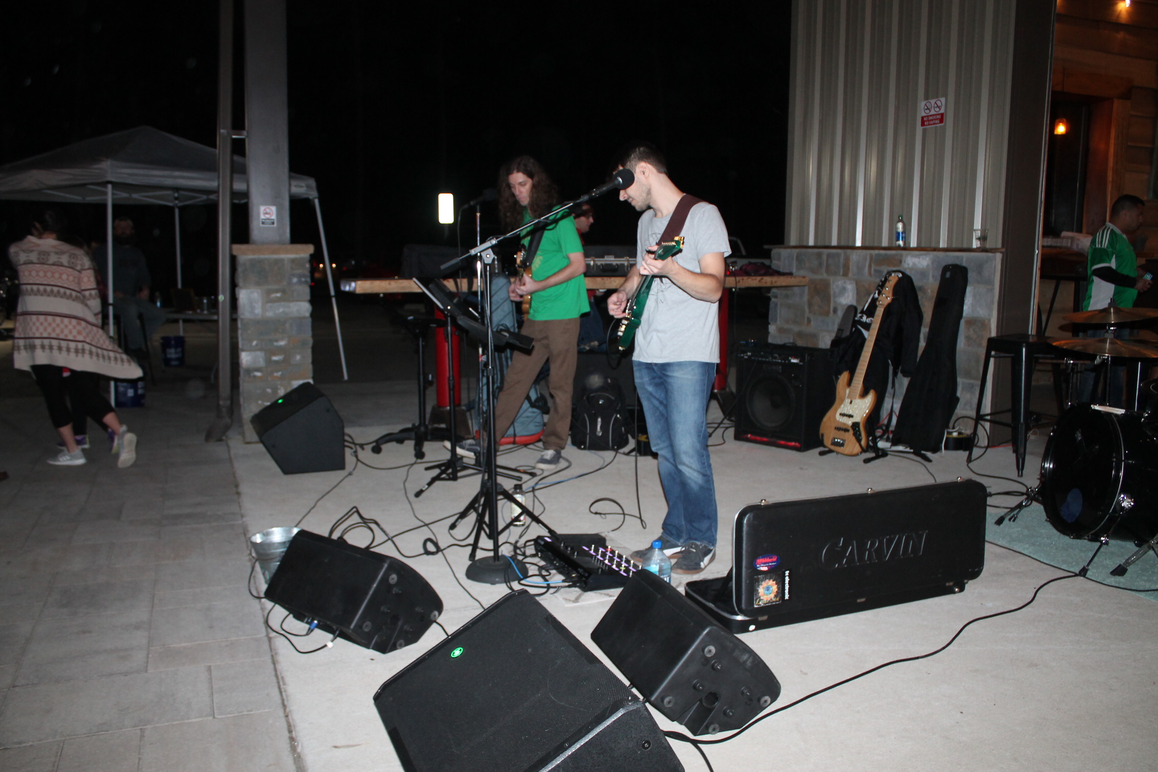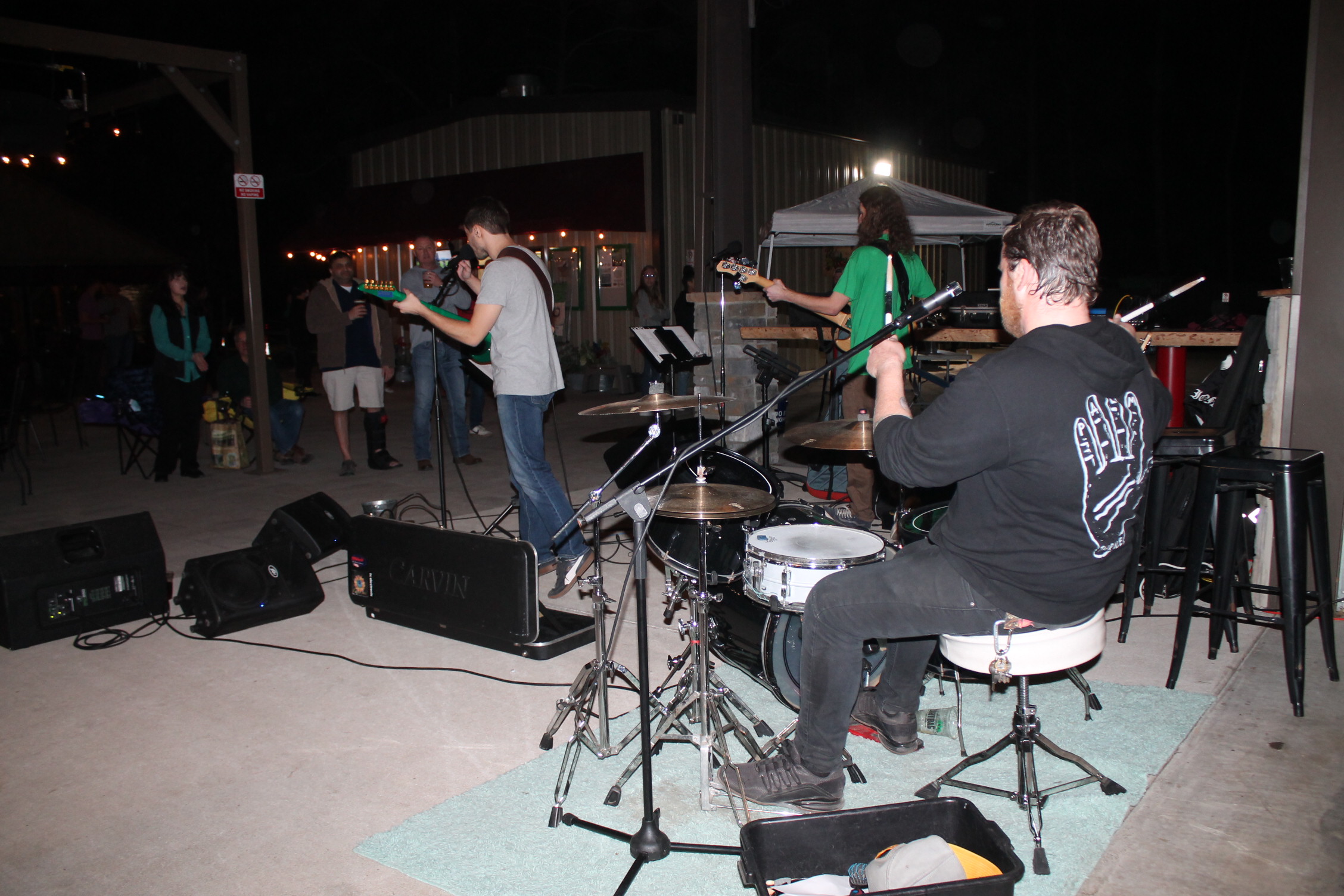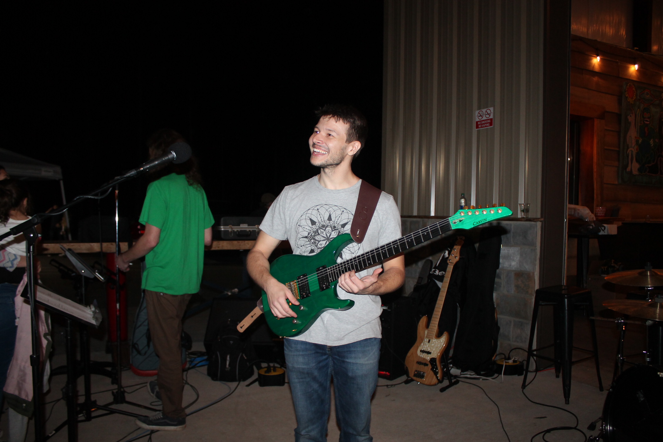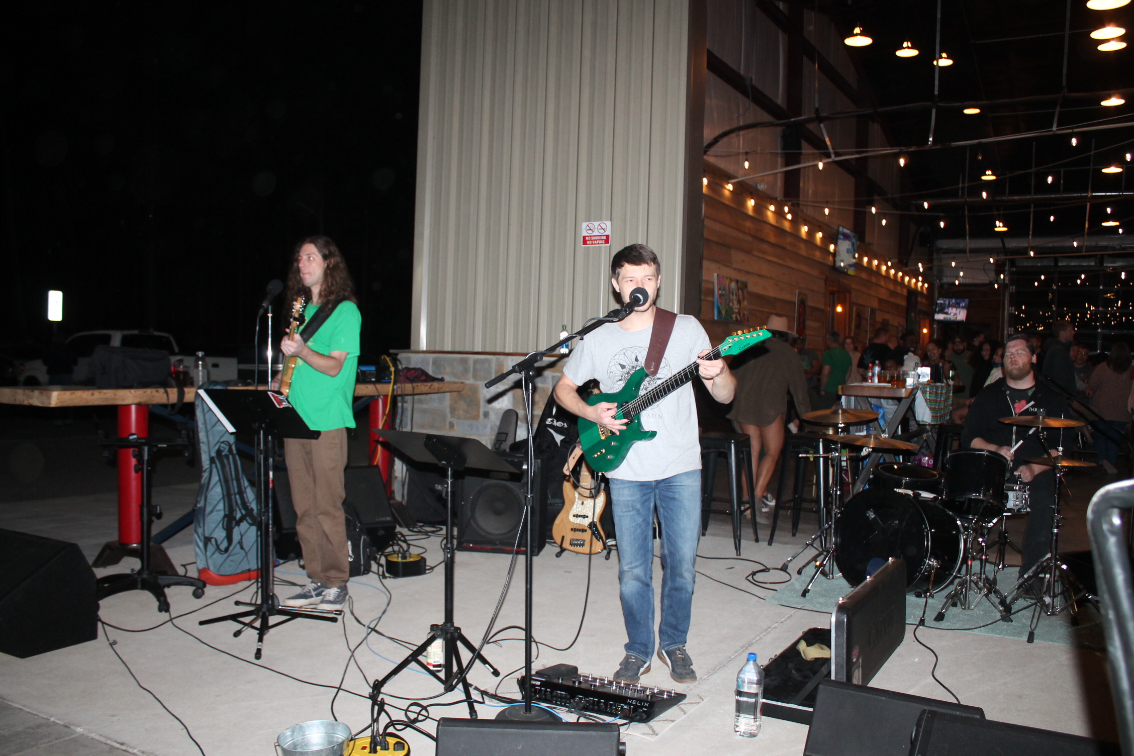 처음 이곳을 입장하려면 스탬프 도장을 찍어요. 성인 확인 가능한 신분증을 보고 확인되면 도장을 찍어 줍니다. 입장을 하니 사람이 이렇게 많이 있을 줄은 상상도 못 할 정도였어요. 수많은 관중 앞에서 연주를 하고 노래하는 분이 시선이 들어왔어요. 오. 우리 선생님이네. 정말 멋지다.라고 혼잣말했어요.