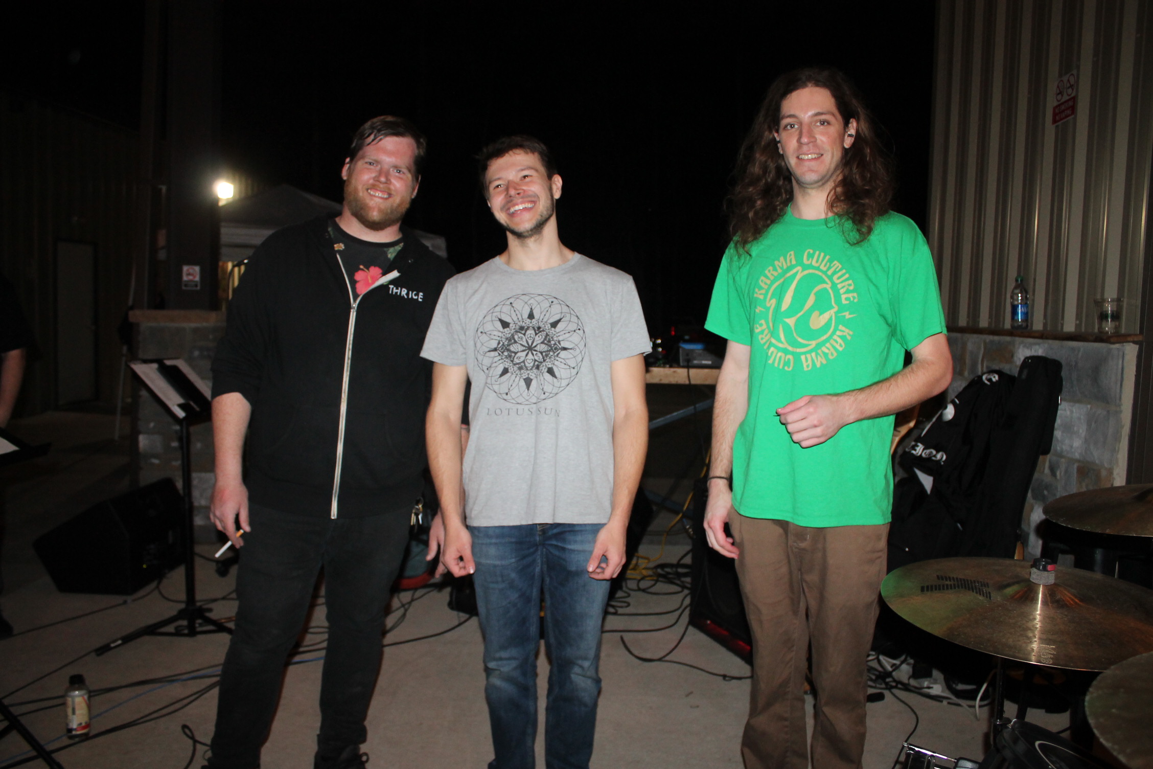 왼쪽으로부터 드럼 치시는 분입니다. 중간은 나의 선생님 그리고 옆에 긴 머리 총각은 베이스를 담당하고 있어요. 선생님이 그룹의 리드이자 기타리스트이고 메인 보컬을 담당하고 계십니다. 가끔 가다 드럼을 연주하는 분이 코러스를 합니다.