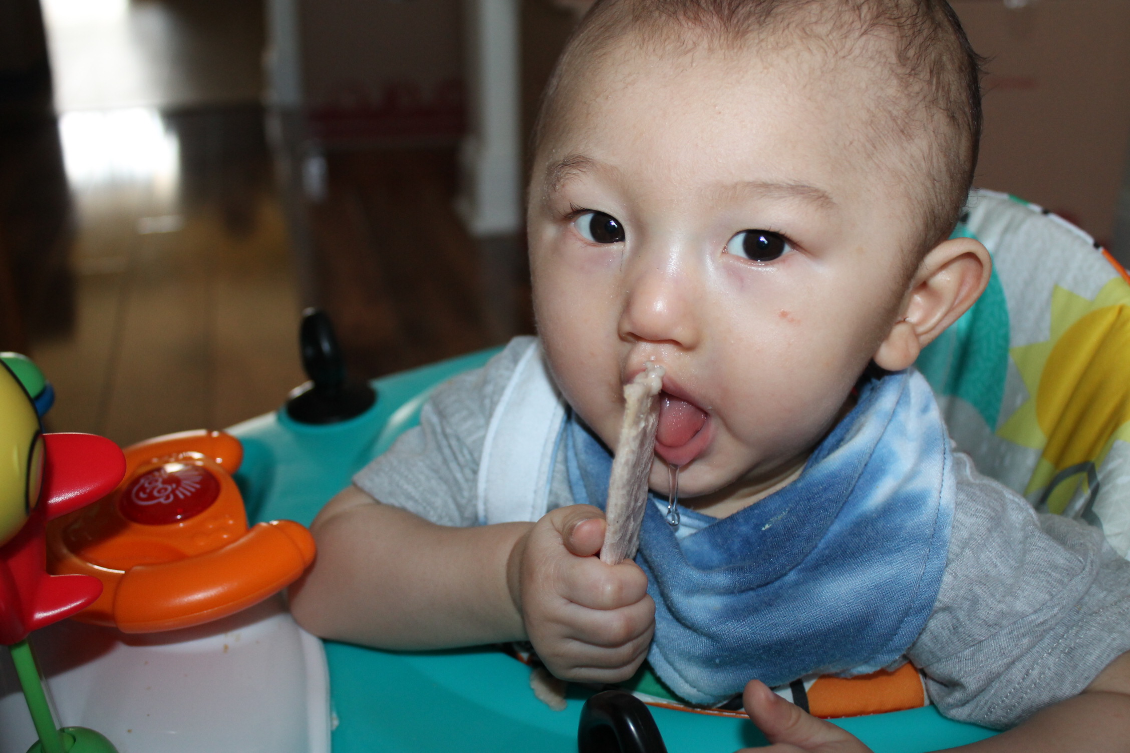 이런 대화를 주고받았다. 알고 보니 우리 노엘이 이제 간식을 손으로 쥐고 먹는 동영상을 올렸다. 그리고 이틀 전에는 엄마와 할머니가 보는 앞에서 했던 말이 있다. 필자를 빤히 쳐다보더니 하는 말..