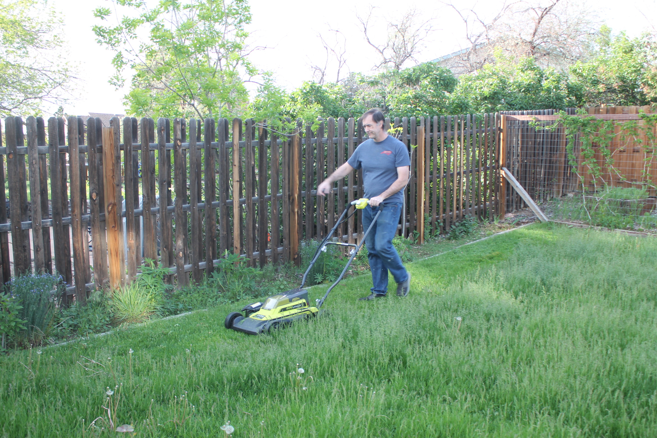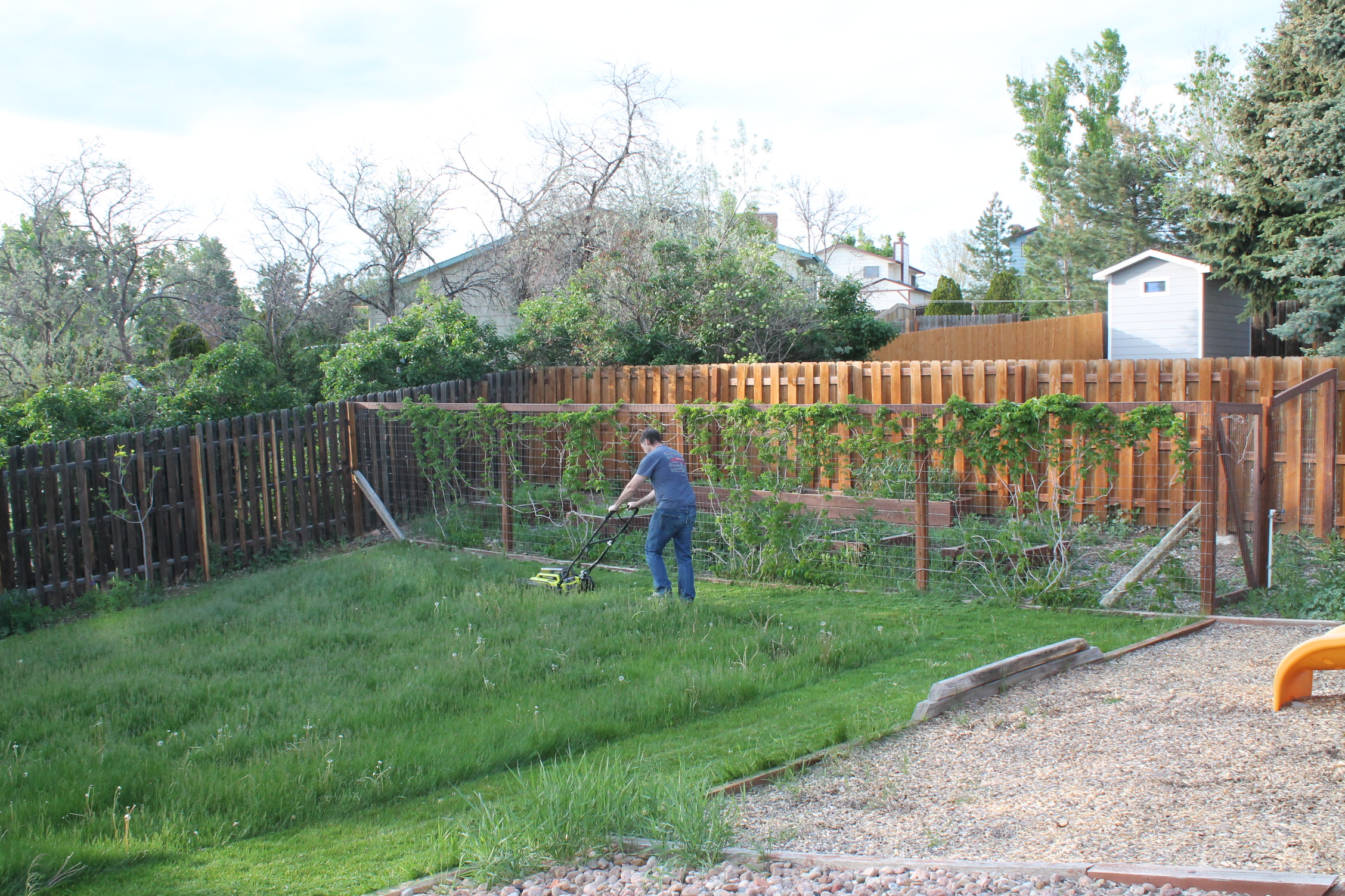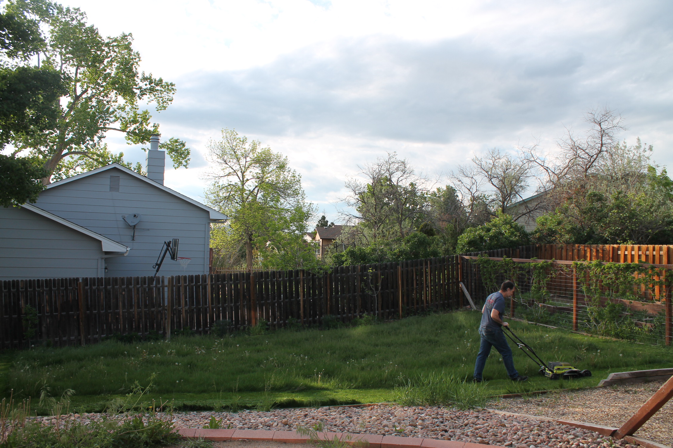 새로 이사 온 집에 잔디가 무성했습니다. 남편은 대충 이삿짐을 정리하고 이렇게 잔디 가꾸기에 나섰어요.
