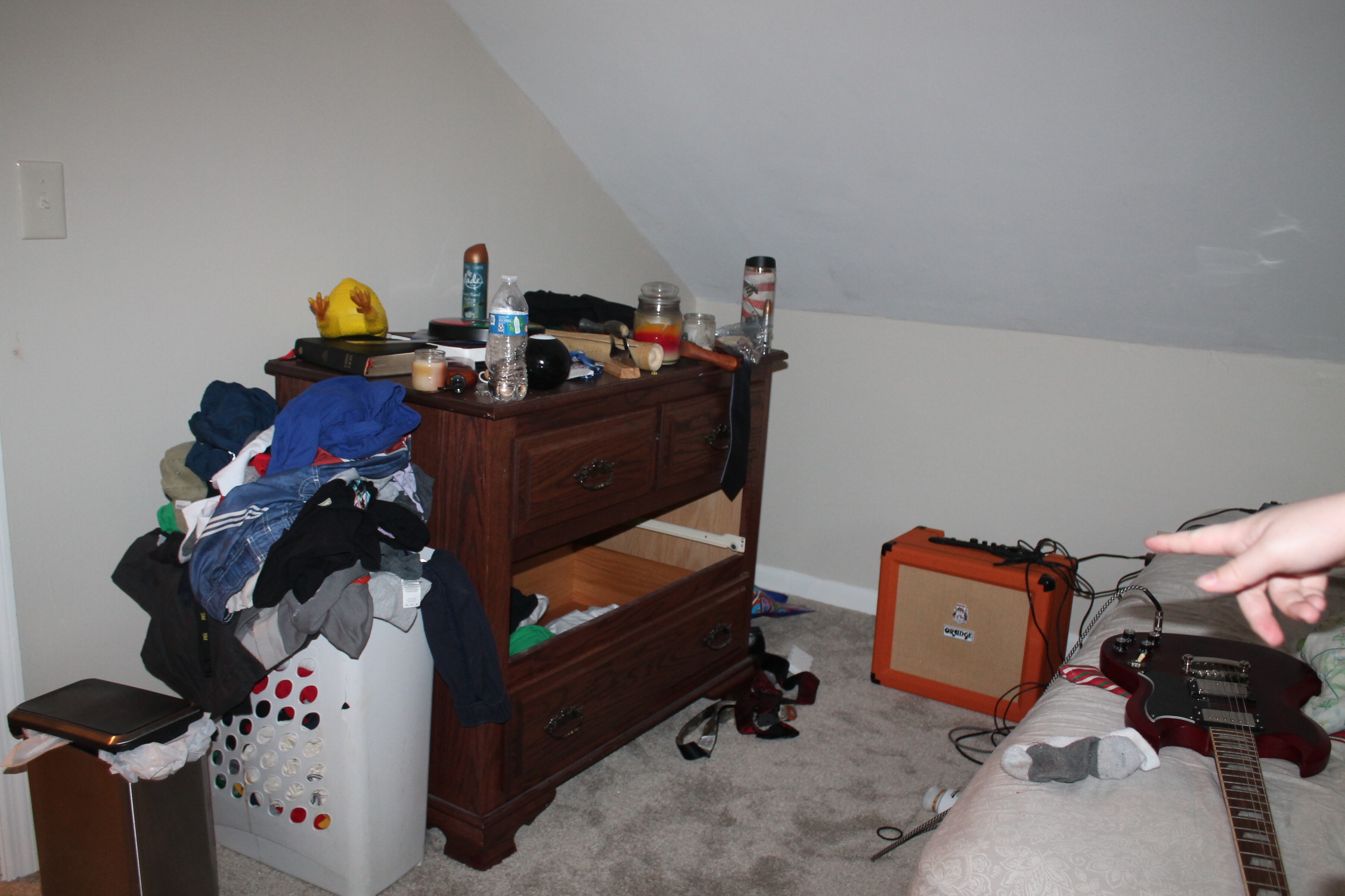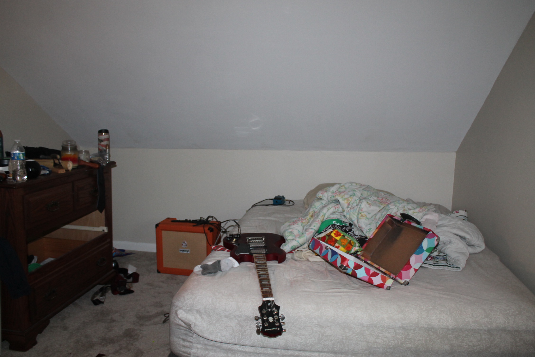 우리 아들 일렉 기타와 침대가 놓여 있군요.