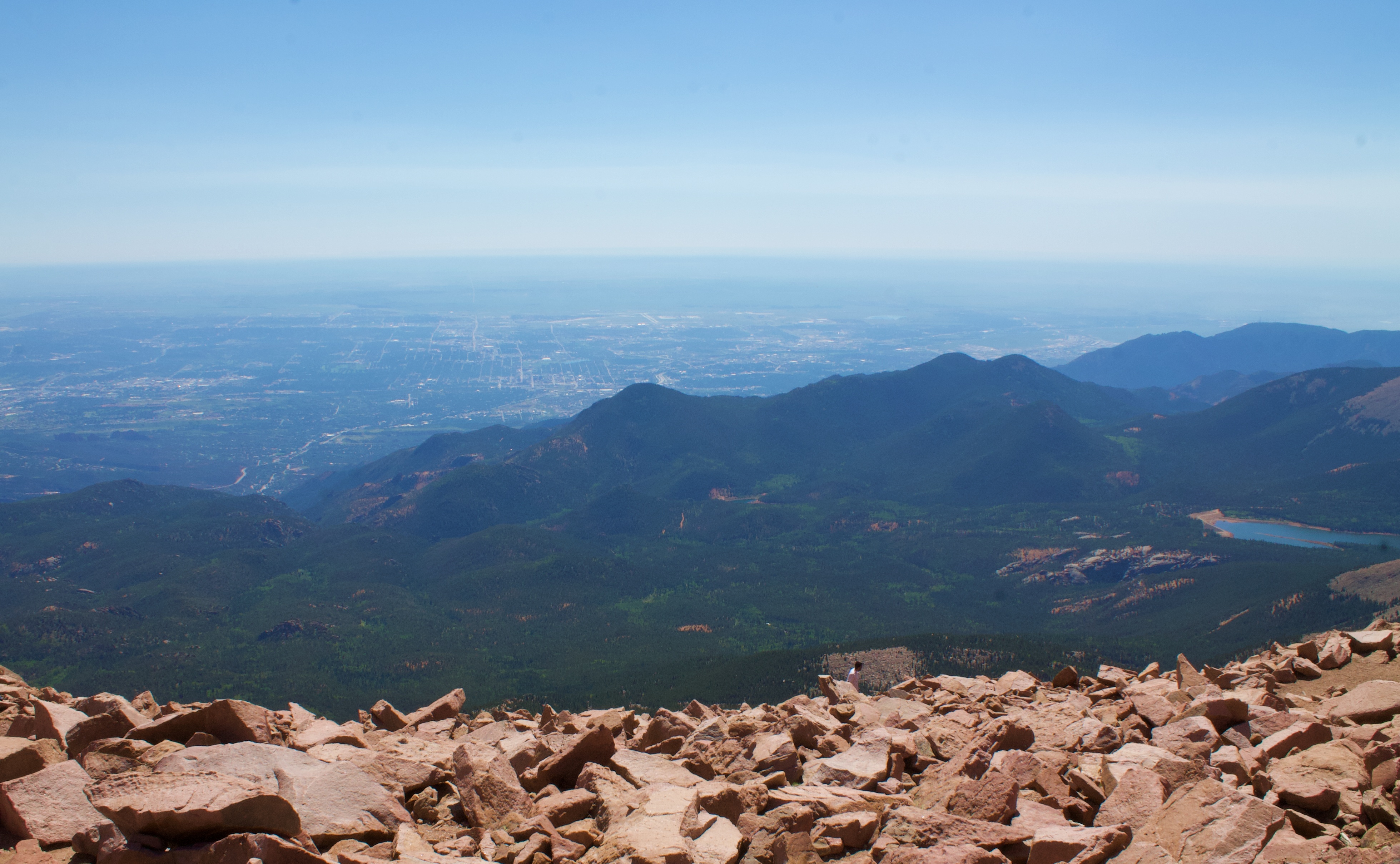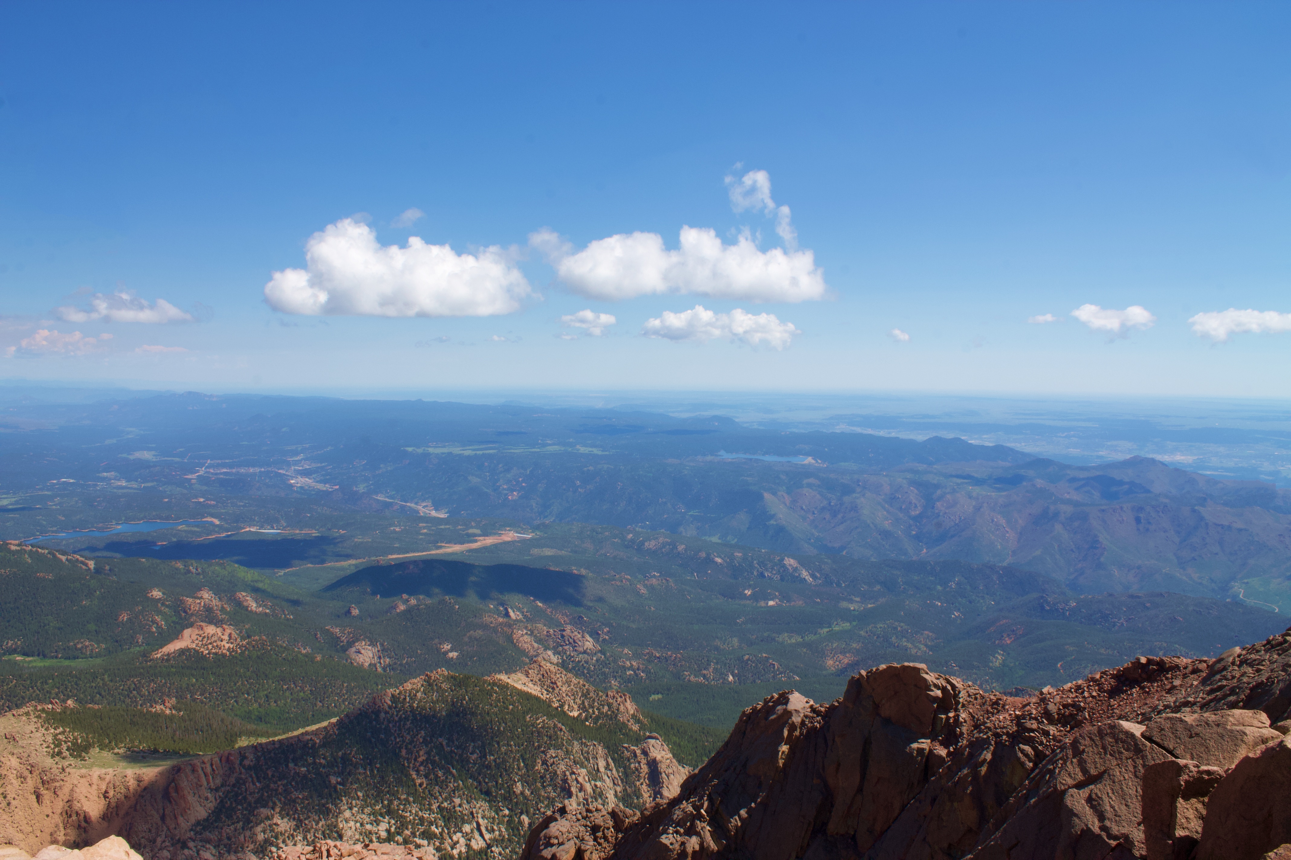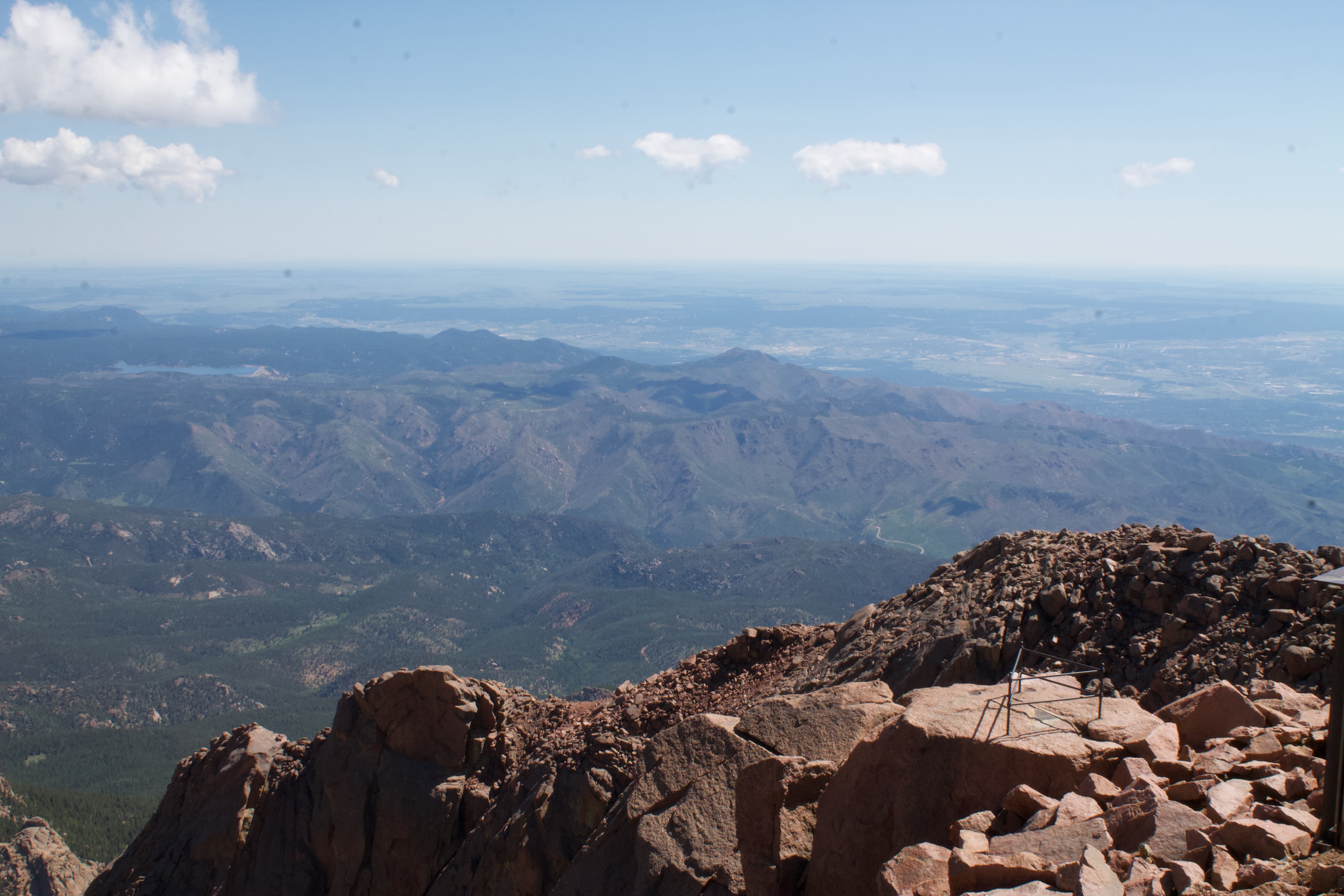 저희 부부가 가 본 곳은 파이스 픽이라는 산입니다. 그곳의 정상 길이는 14,115-foot (4,302.31 m)로 대략 30미터 차이로 정상의 높이가 달라지고 있네요. 그 산의 정상을 오른 결론은 정말 호흡이 힘들 지경입니다. 어지럽고 고소 공포증이 있는 분들께 이런 장소는 적합하지 않습니다. 저도 한참 어지러워서 물도 마시고 했는데요. 한 15분 정도 있다 보니 더 있지 못하고 내려간 기억이 납니다.