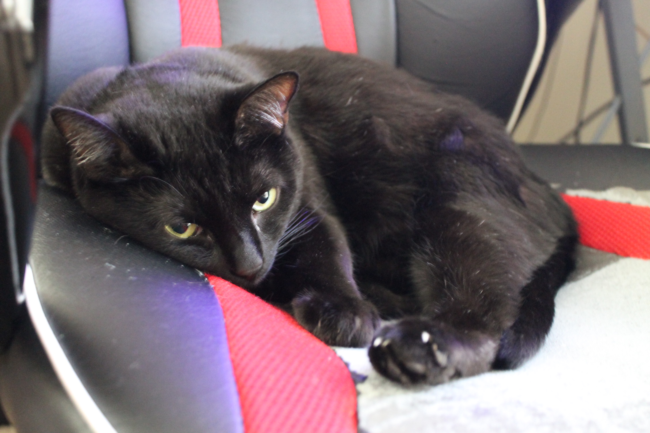어라. 이건 또 뭐죠? 여기 냥이님도 집사의 의자를 침대로 생각하고 주무시고 있군요. ㅎㅎㅎㅎ