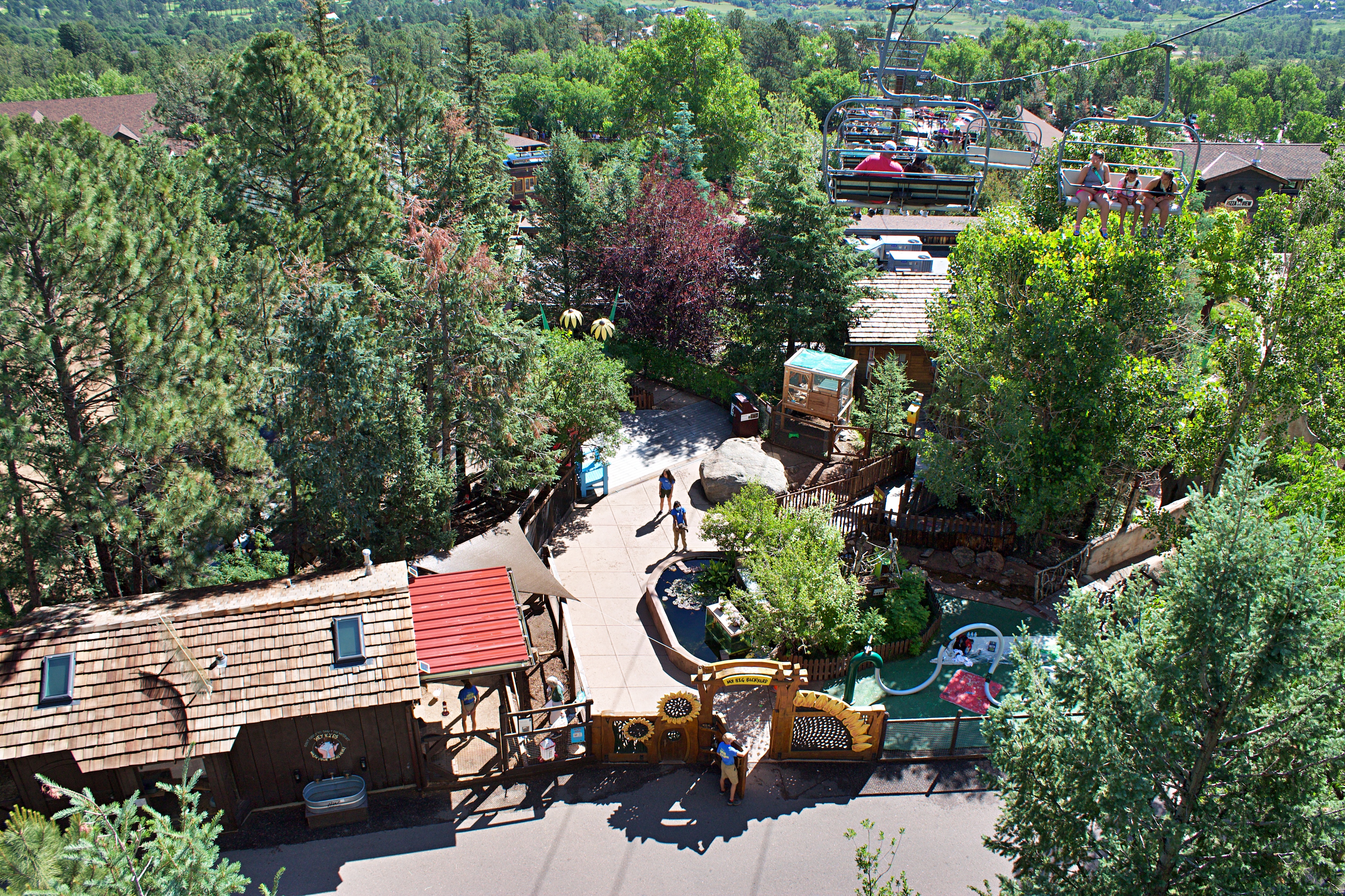 캐이블카 아래의 세상은 모든 것이 작아요.