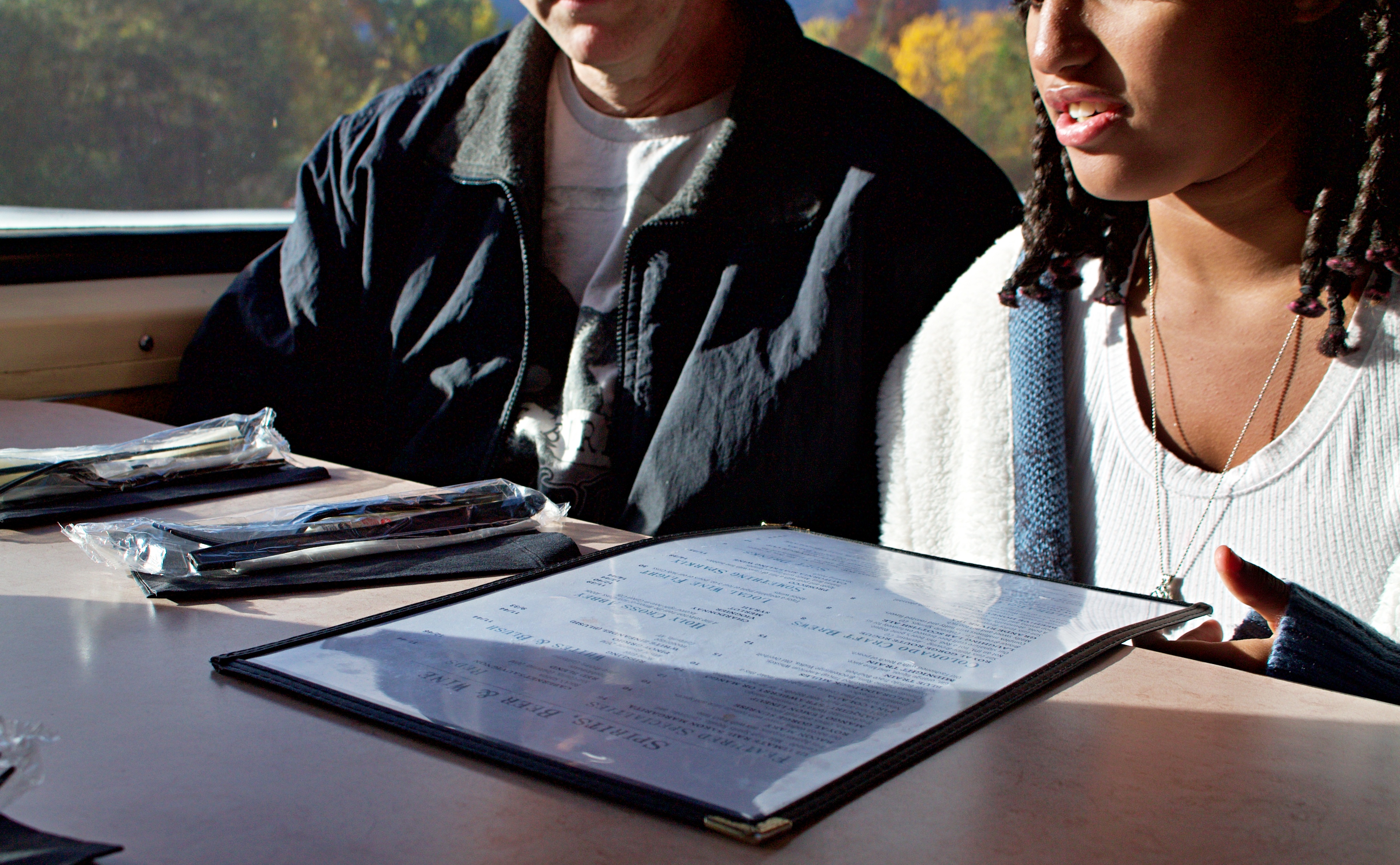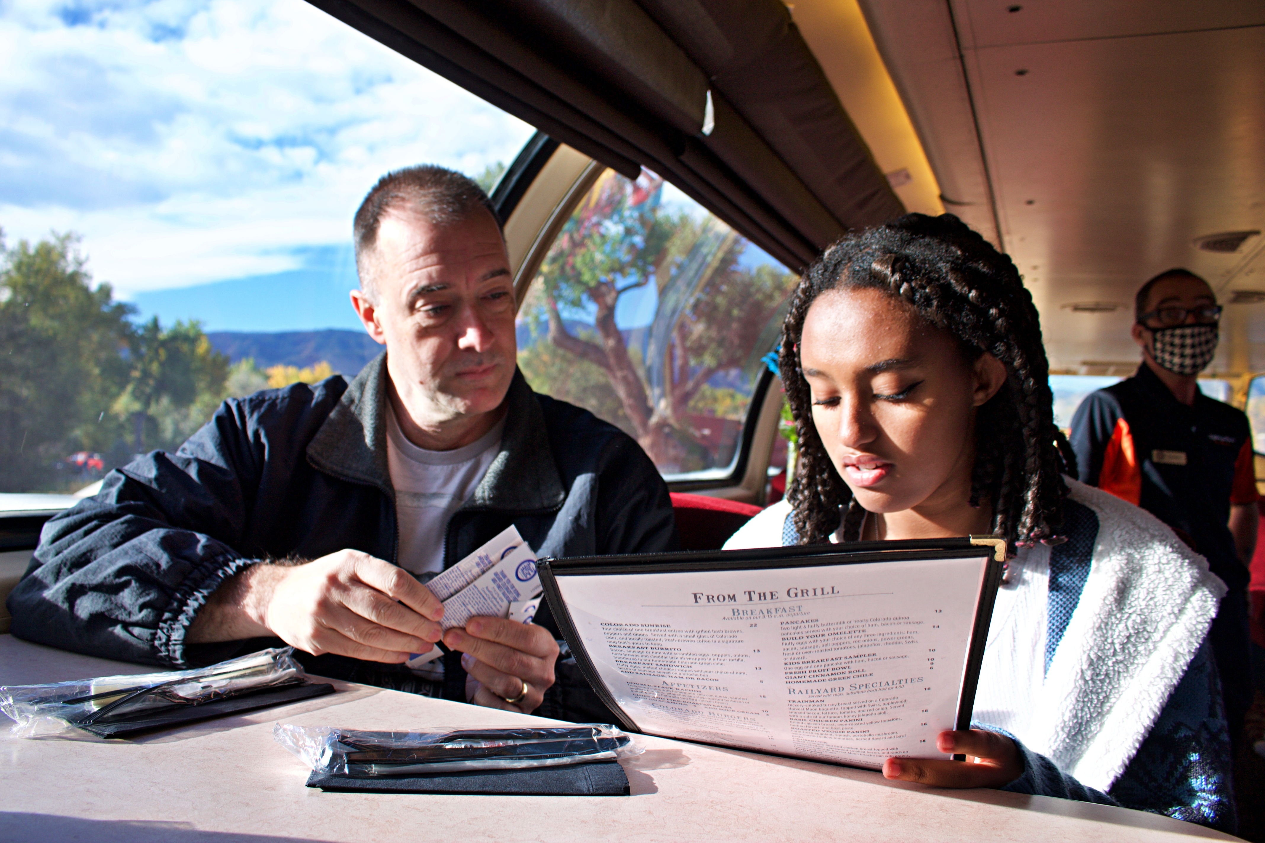 주문을 합니다. 이 기차는 식사를 제공하고 있어요. 밥을 먹으면서 기차가 안내해주는 자연의 아름다운 풍경을 구경하면서 대화를 나누고 합니다. 이종에 쇼 대신에 기차를 타고 경치 구경도 하고 밥도 먹고 하는 그런 기차입니다. 아침과 저녁 두 번을 운행하고 메뉴도 다르게 나옵니다.