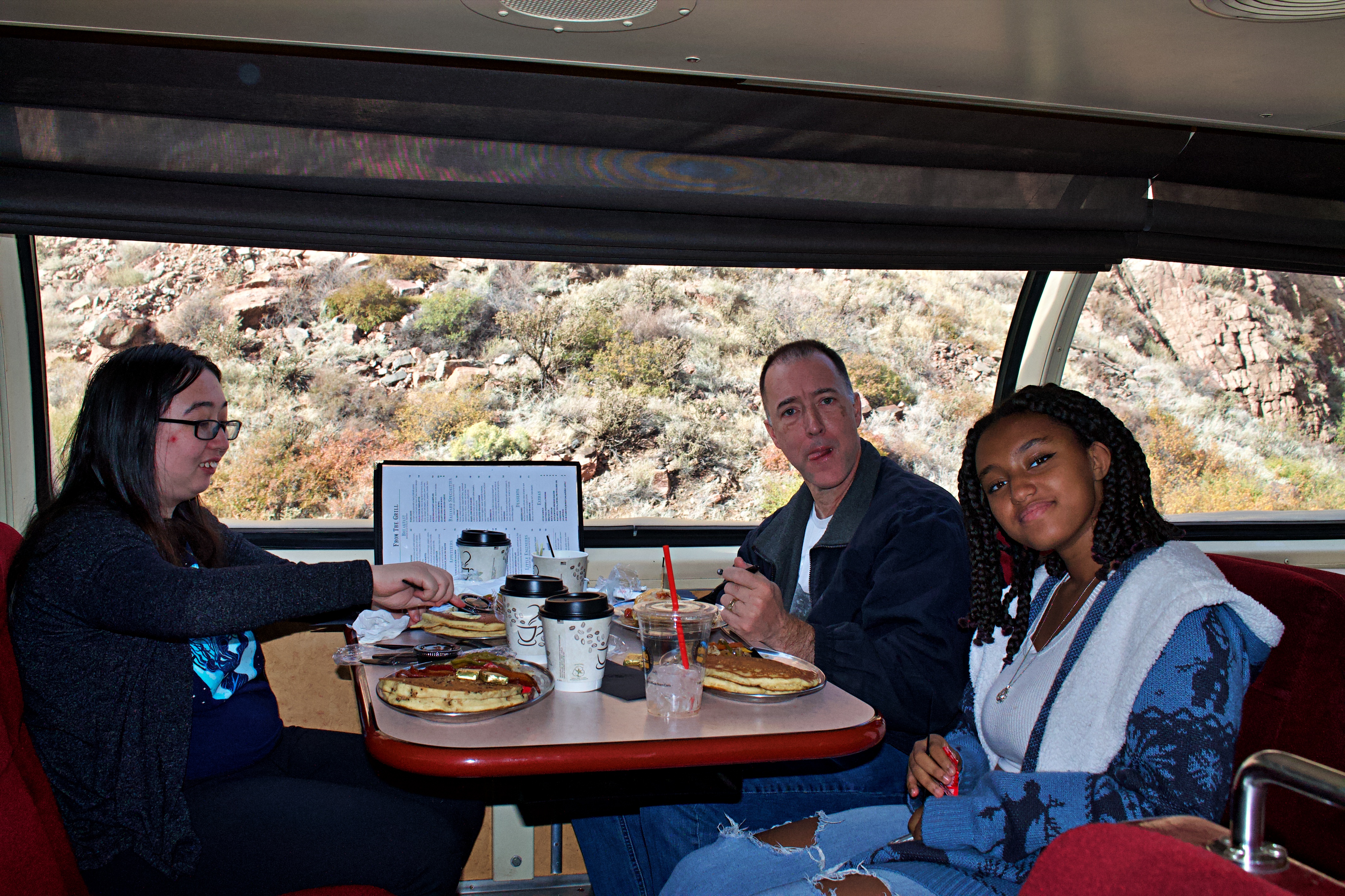 기차 여행을 마치고 난 후 앉아서 커피 타임을 가졌습니다.