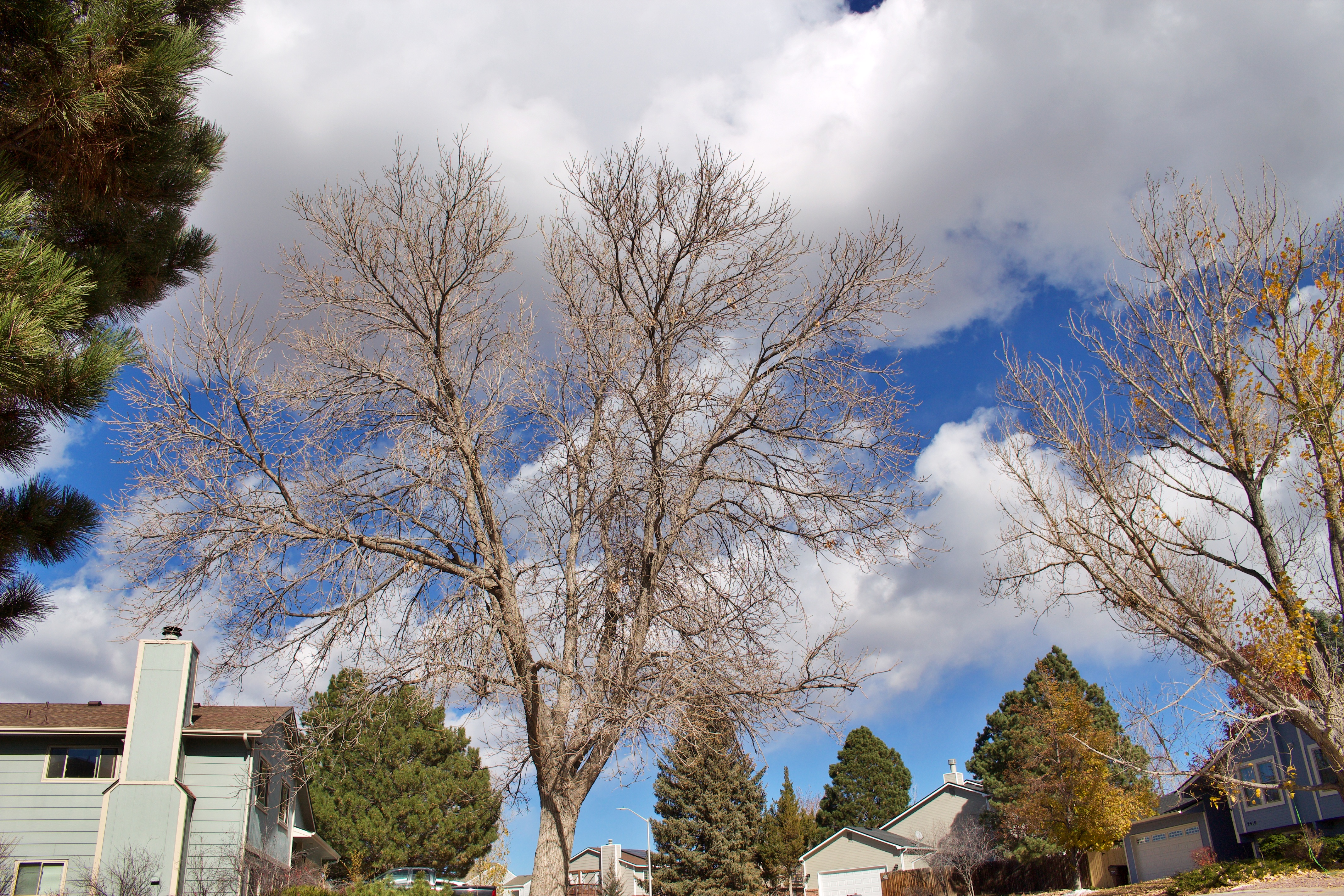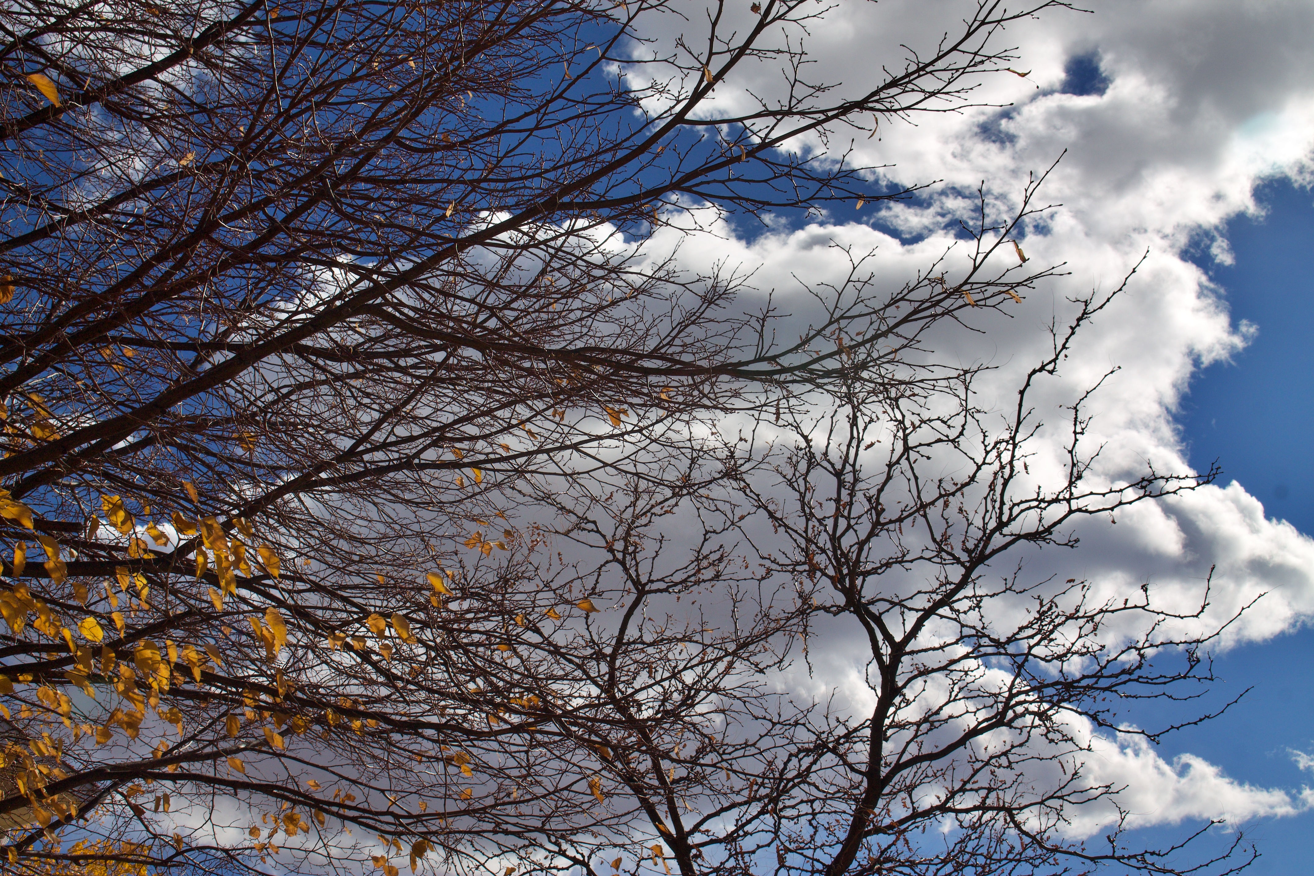 하늘을 가리고 있는 나뭇가지가 있네요.