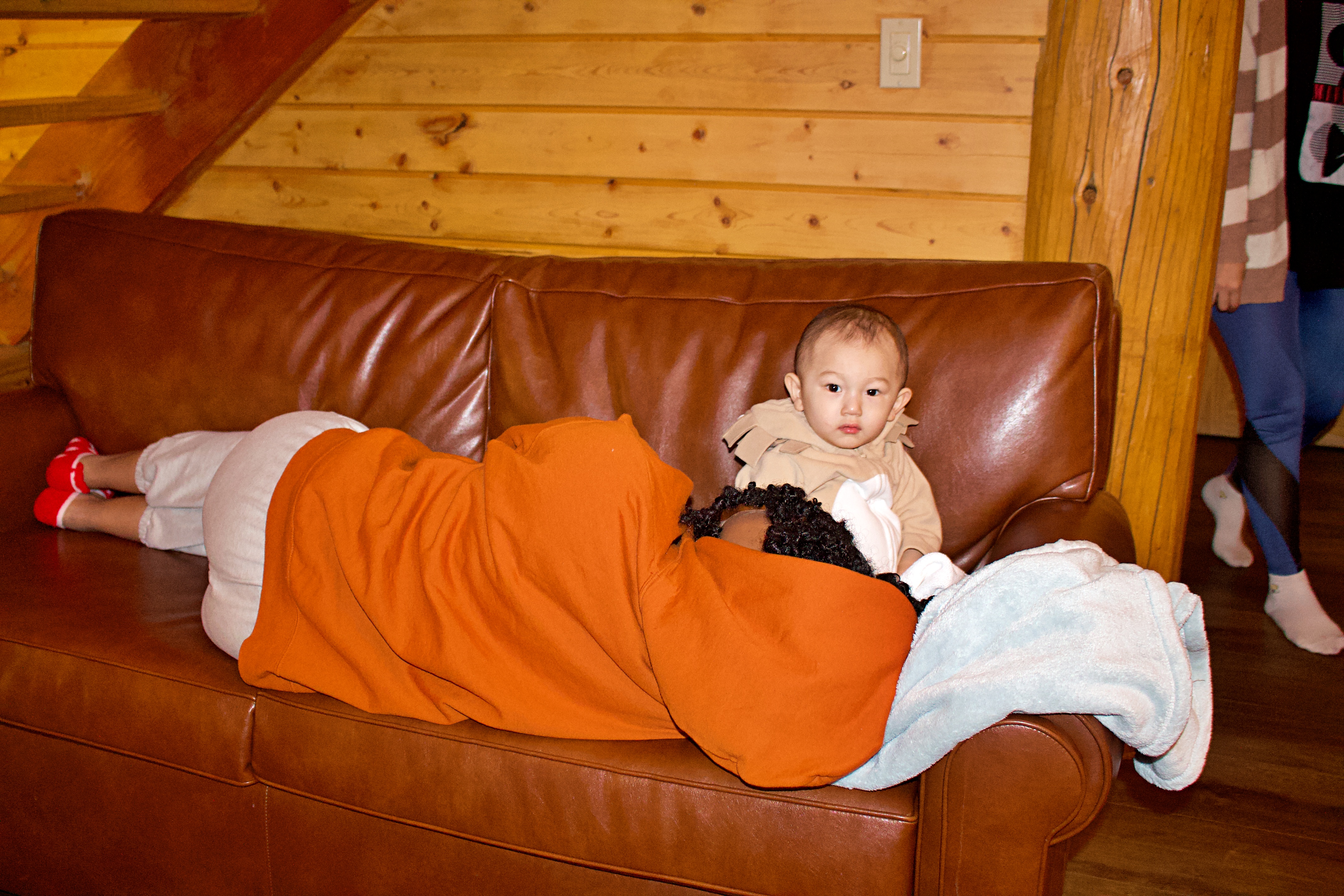 고모야 일어나! 고모는 이렇게 쿨쿨 자고 있었어요.