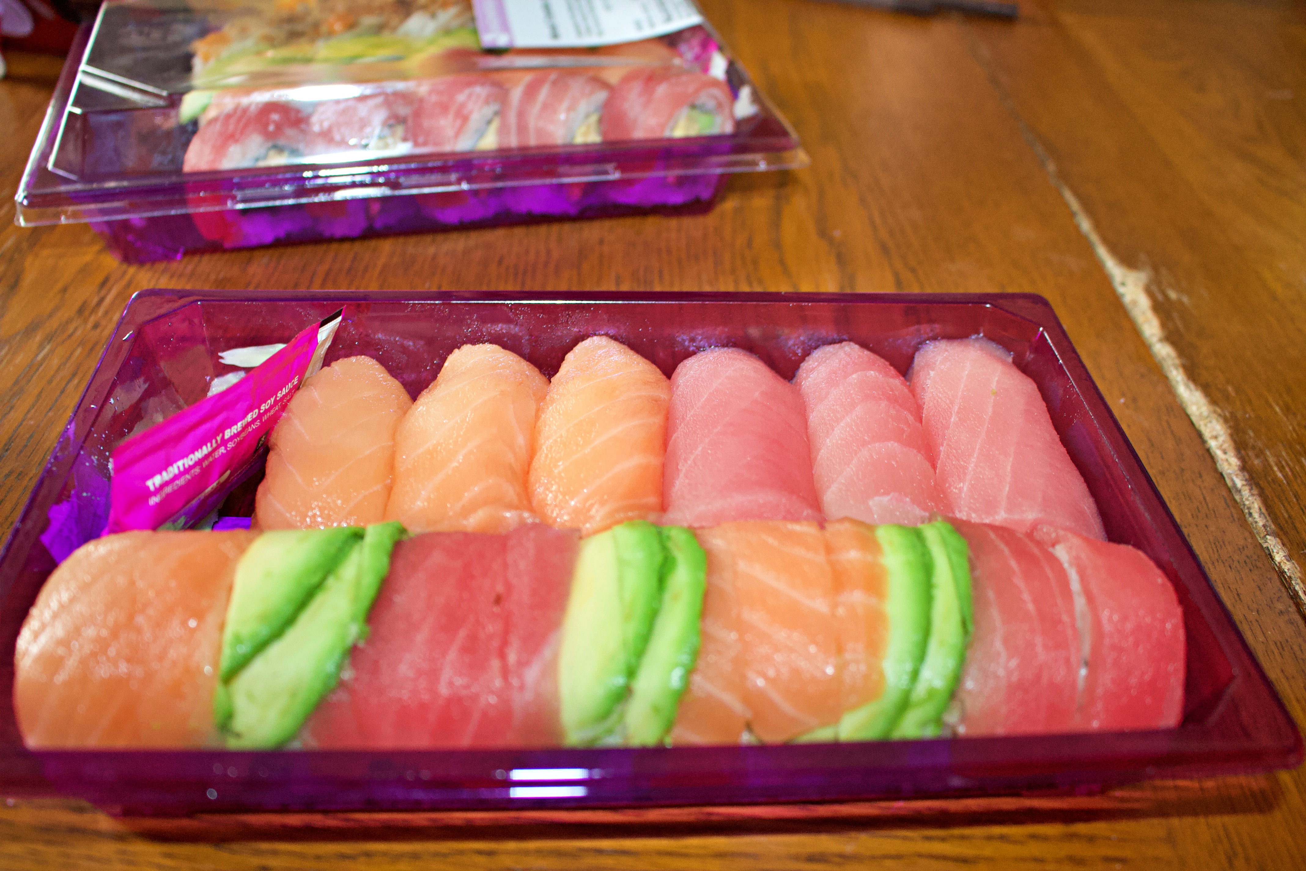 요즘 뭘 주문해서 드시나요? 여기서는 초밥이 인기가 일반 식료품 가게를 가니 이렇게 판매를 하고 있어요. 초밥도 공급과 수요의 원칙에 따라서 만들어지는 것이라 생각됩니다. 사시미부터 시작해서, 다양하게 만들어서 판매를 하고 있어요. 큰딸이 먹고 싶다고 해서 같이 식료품을 살 때 계산을 했네요.