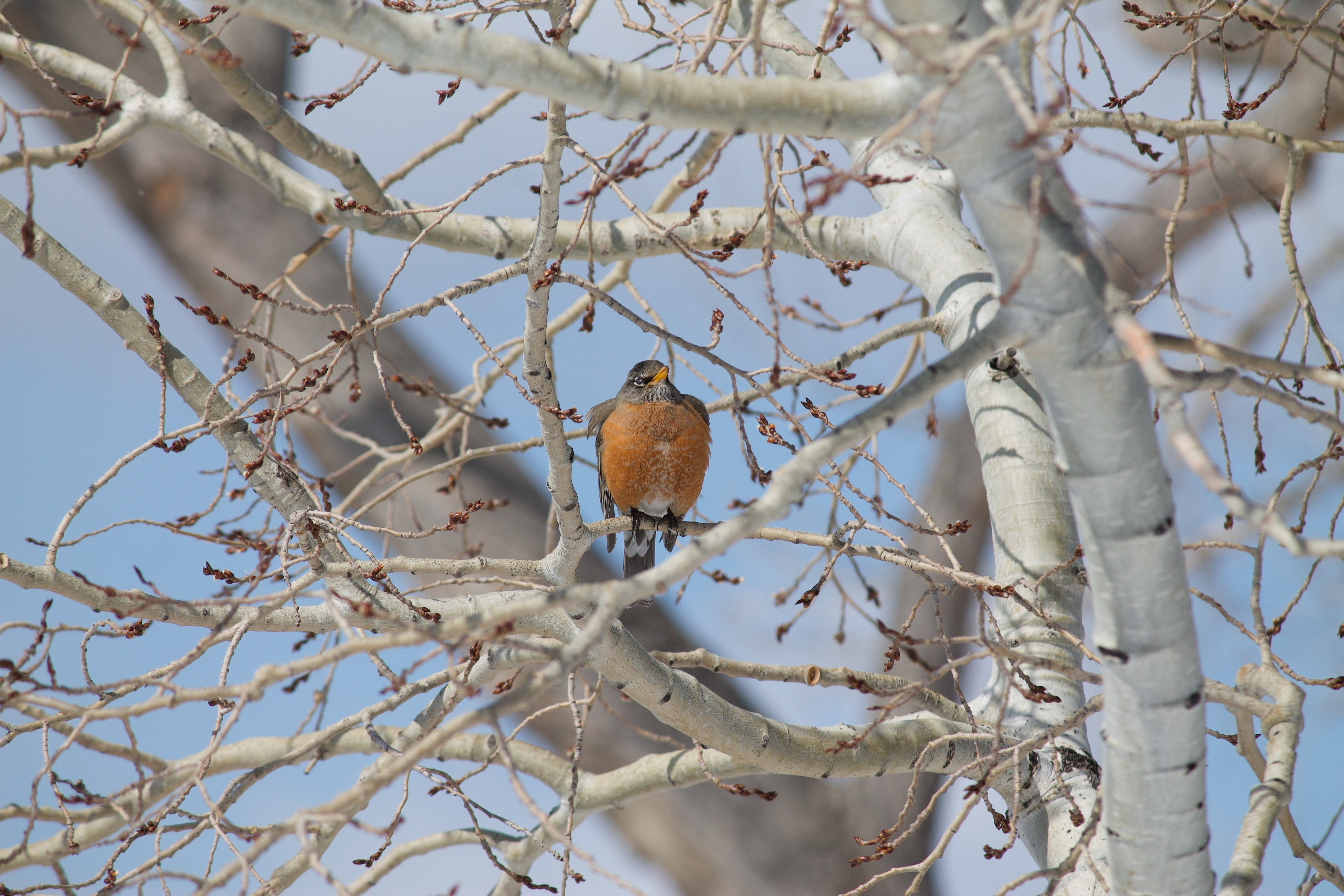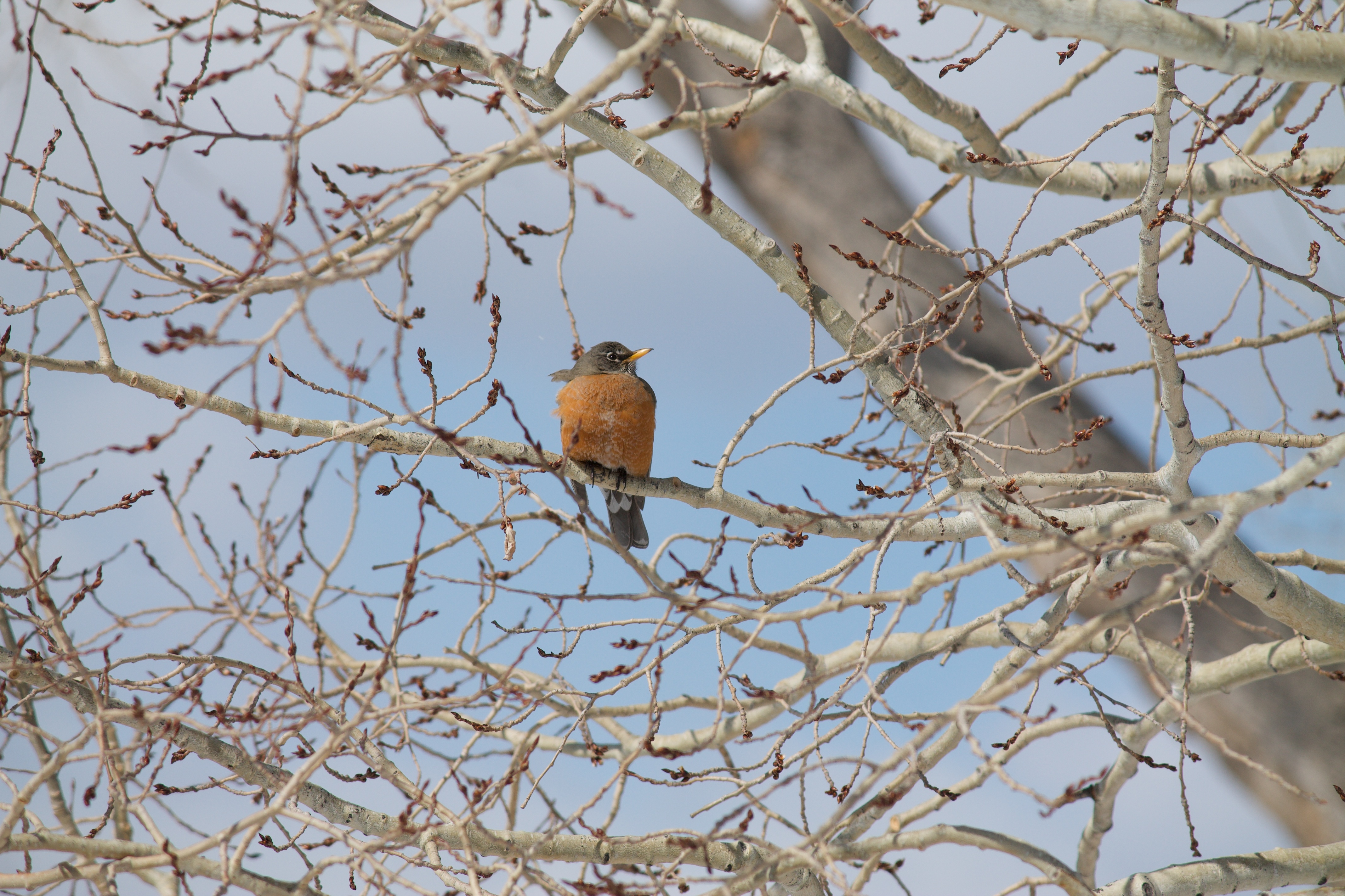 미국의 지빠귀 새라고 하면 로빈이라는 영어 표기가 되는 새 이름입니다. 한국 식으로는 지빠귀 새라고 하네요. 새의 가슴에 주홍색을 띤 새가 암컷으로 분류되고 있어요. 이렇게 겨울 날씨가 추운데 나무 가지 위에 앉아 있네요. 이런 모습을 그냥 지나칠 수가 없어 사진기를 갖다 대어 봅니다.