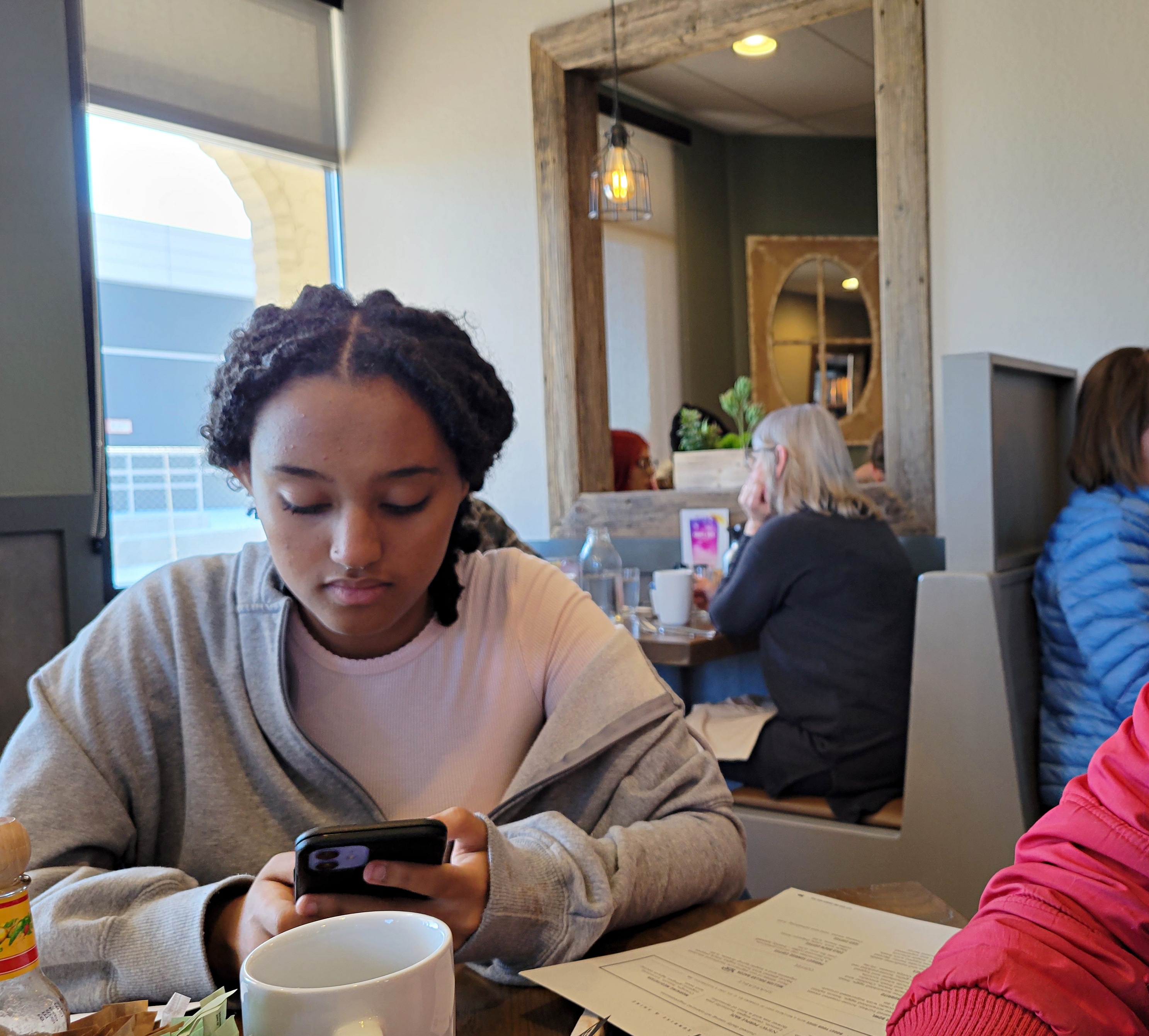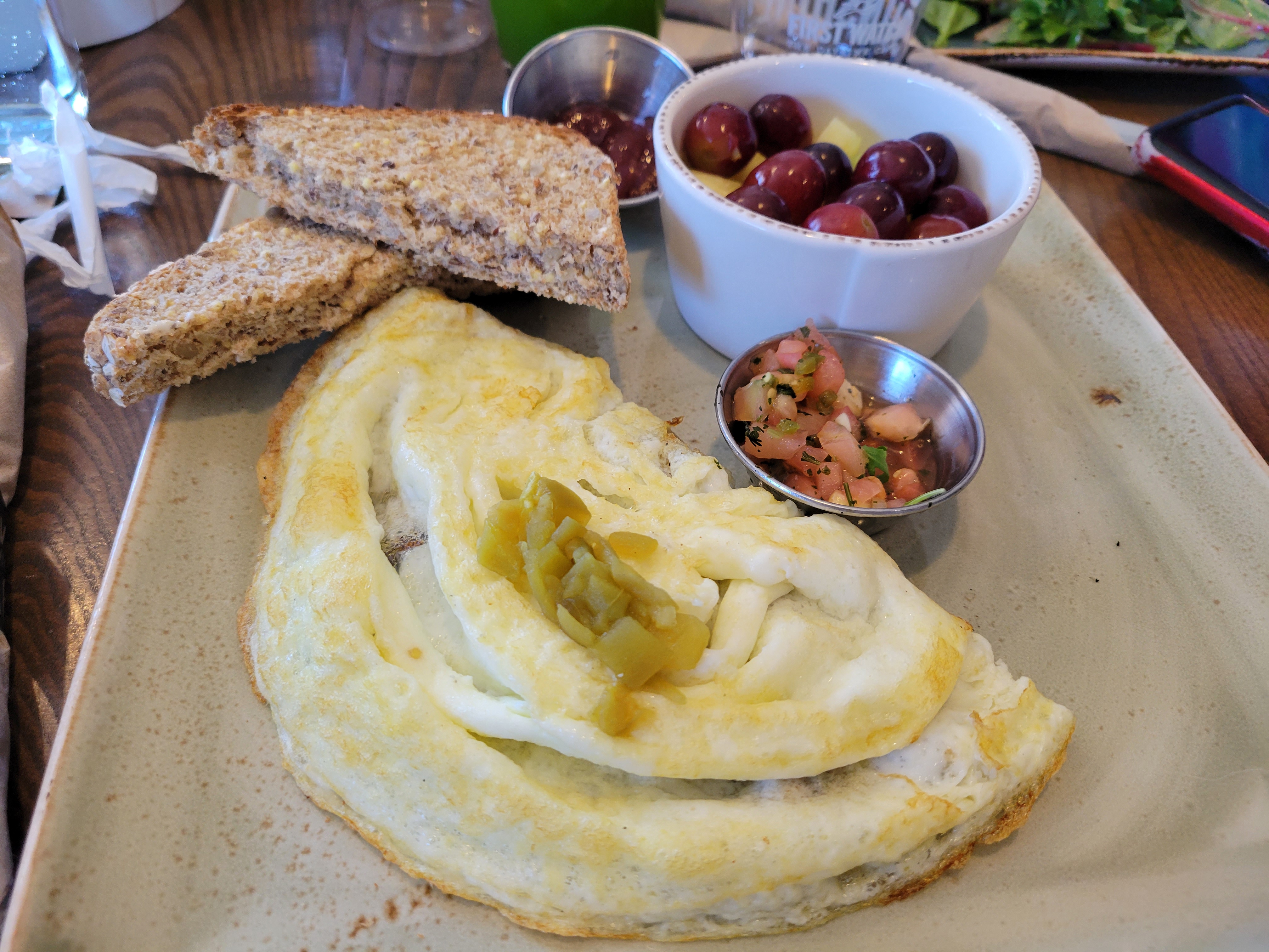 퍼스트 와치 식당은 처음 방문했습니다. 이곳의 팬케이크도 유명 한가 봅니다. 오늘은 그냥 브런치 식으로 주문을 했습니다. 필자는 단백질 풍부한 계란의 흰자를 이용한 요리를 주문했어요. 남편은 아주 간단하게 토스트 위에 아보카도가 올려진 음식을 주문했습니다. 막내는 토스트와 감자 요리와 큰딸 아라는 샐러드와 빵 위에 치즈가 올려진 음식을 시켰네요.