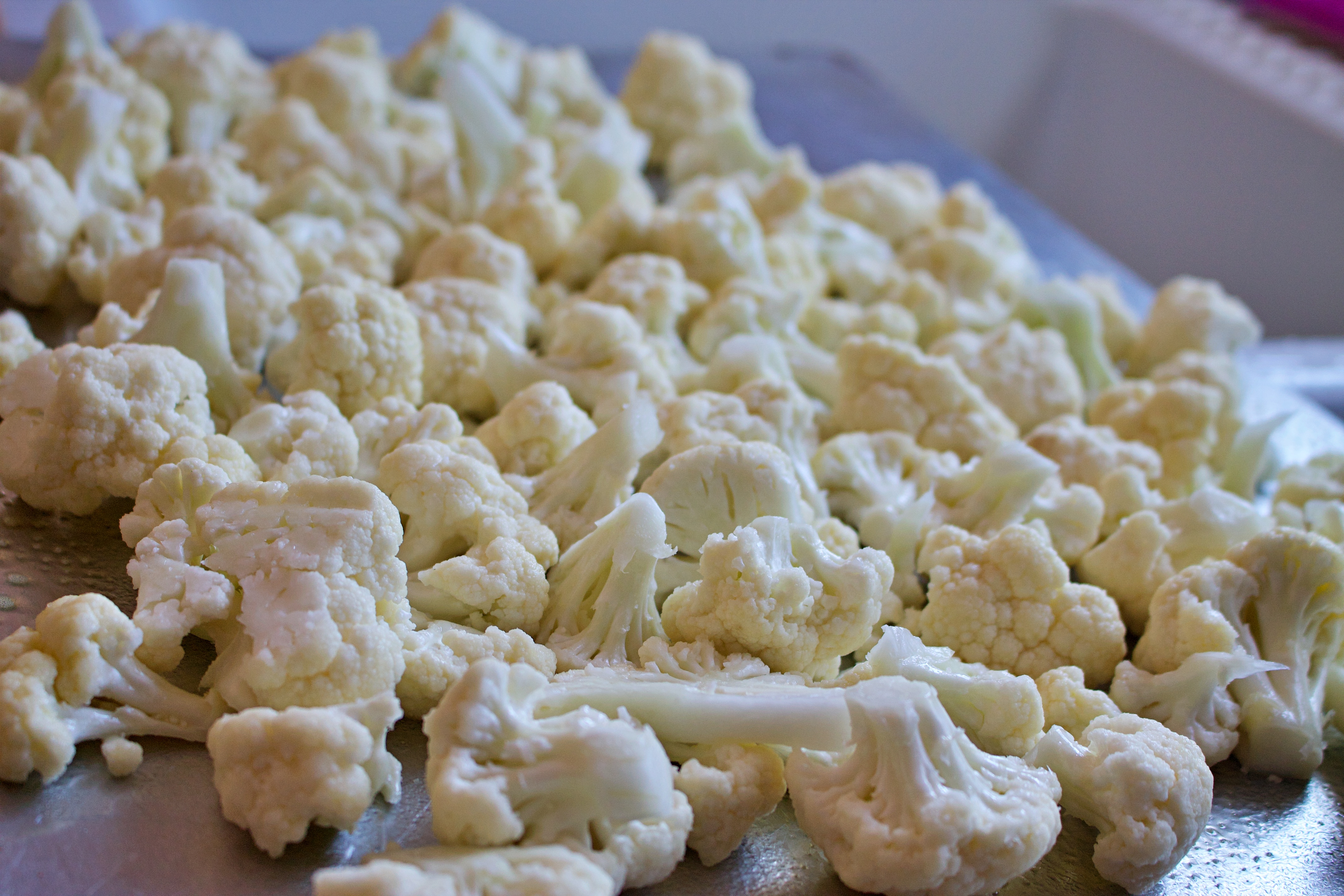 오븐에 콜리플라워를 구워야 해요. 미리 오븐의 온도를 조정하는 것을 잊지 마시고요. 350 화씨로 맞춰 주시면 됩니다. 한국이면 176도로 맞추시면 되겠네요.