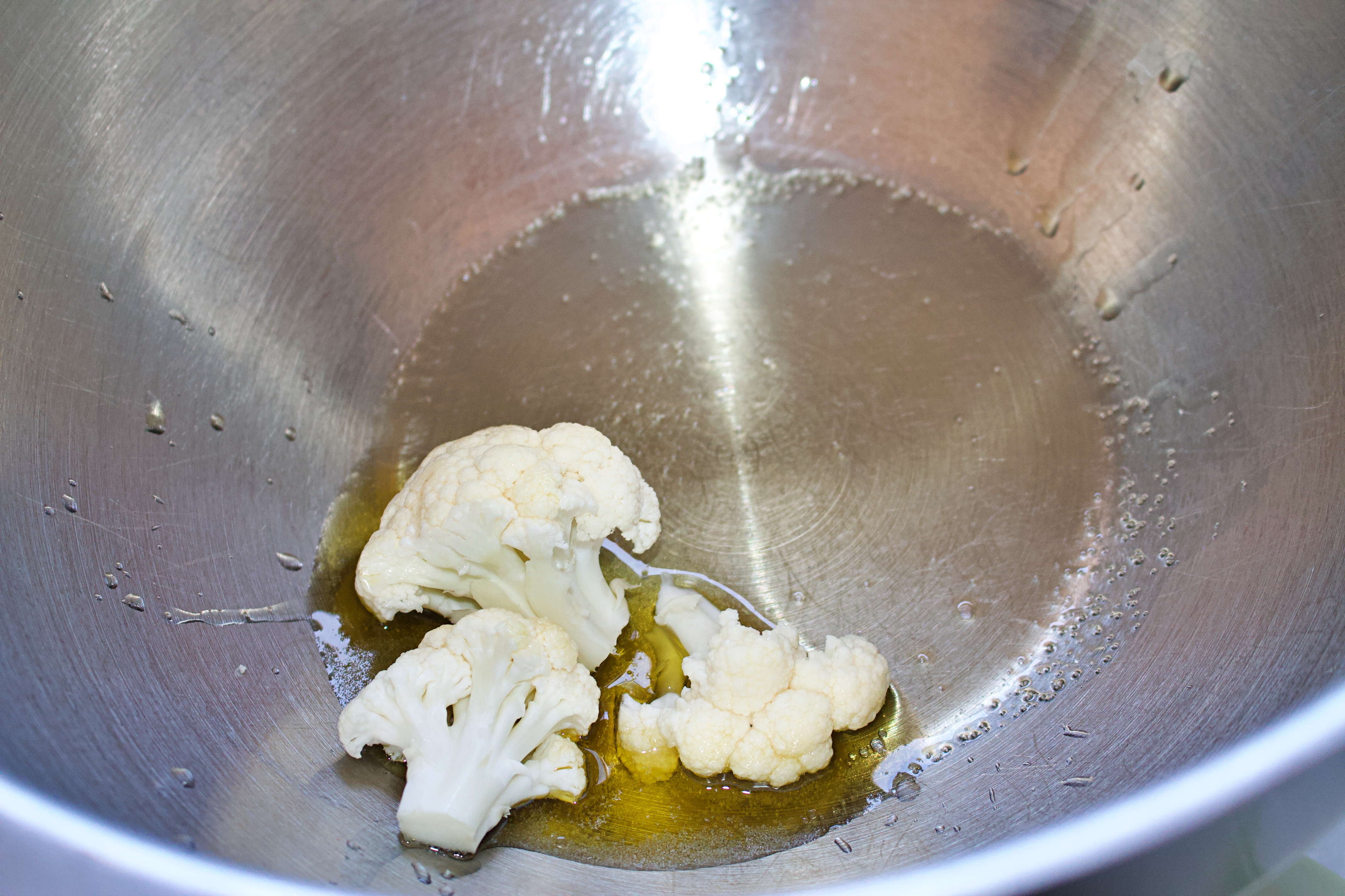올리브 오일과 소금으로 콜리플라워를 코팅을 해줍니다. 각 2 테이블 스푼을 넣으면 됩니다.