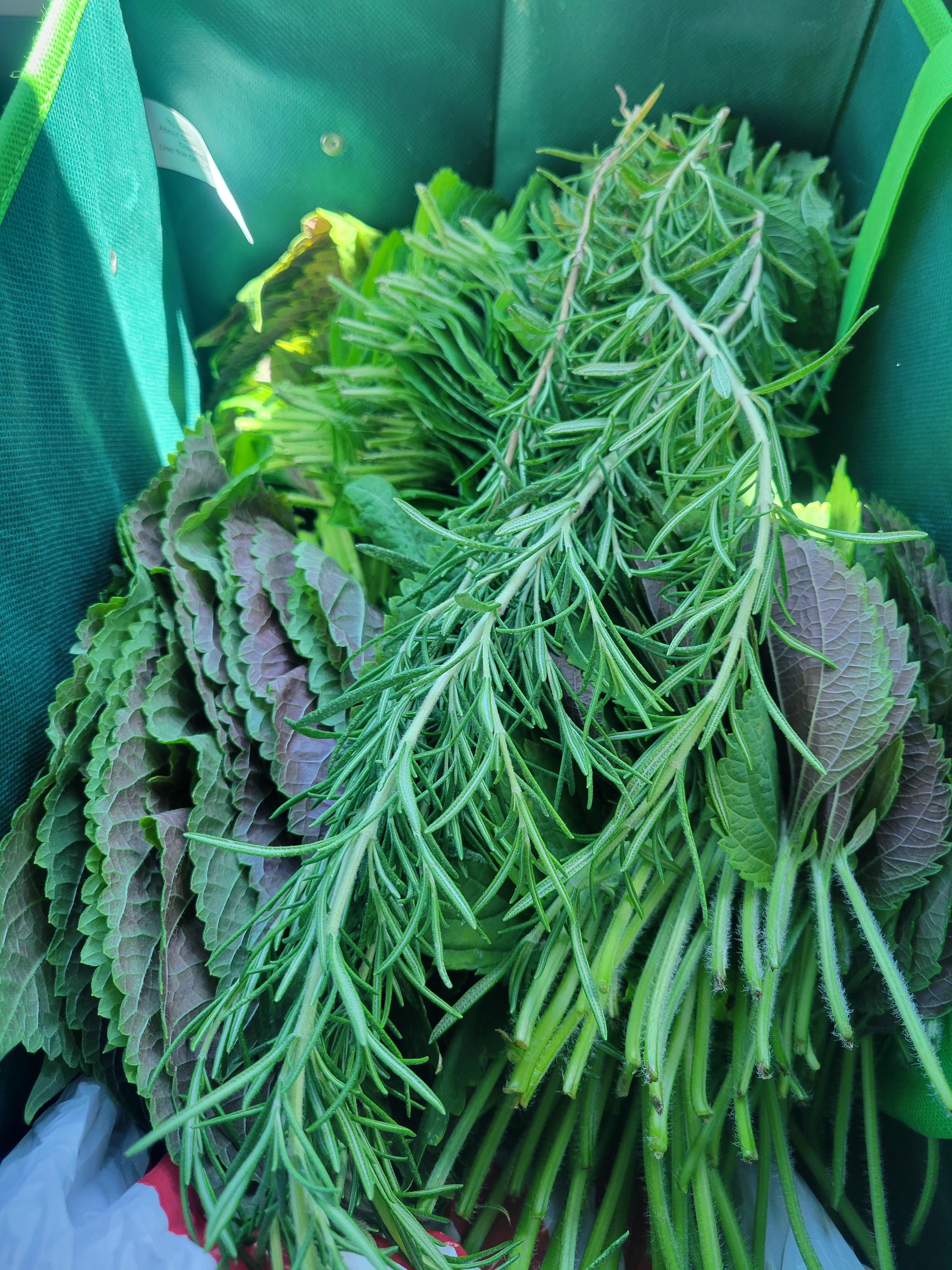 로즈메리라고 향이 참 좋더라고요. 고기를 구울 때 같이 로즈메리를 넣으면 좋다고 하시네요. 이렇게 많은 깻잎을 따서 친하게 지내는 한국 동생에게 좀 나누어 주고 왔습니다.